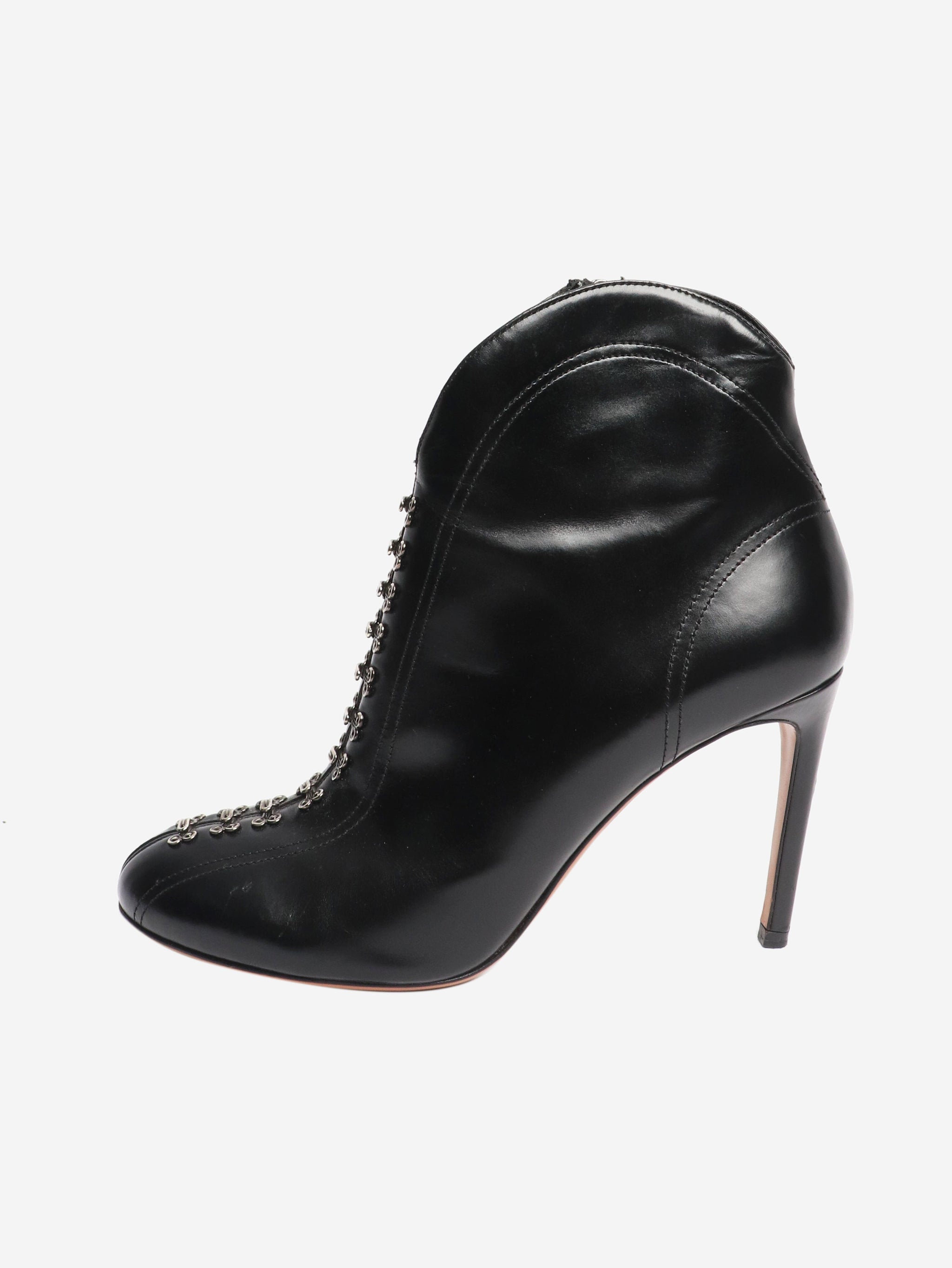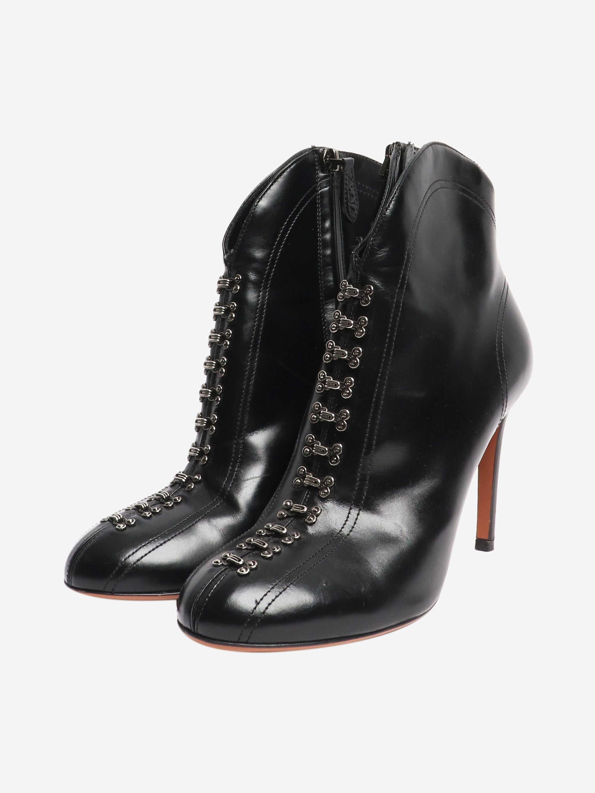 60 embellished black leather ankle boots - size EU 39