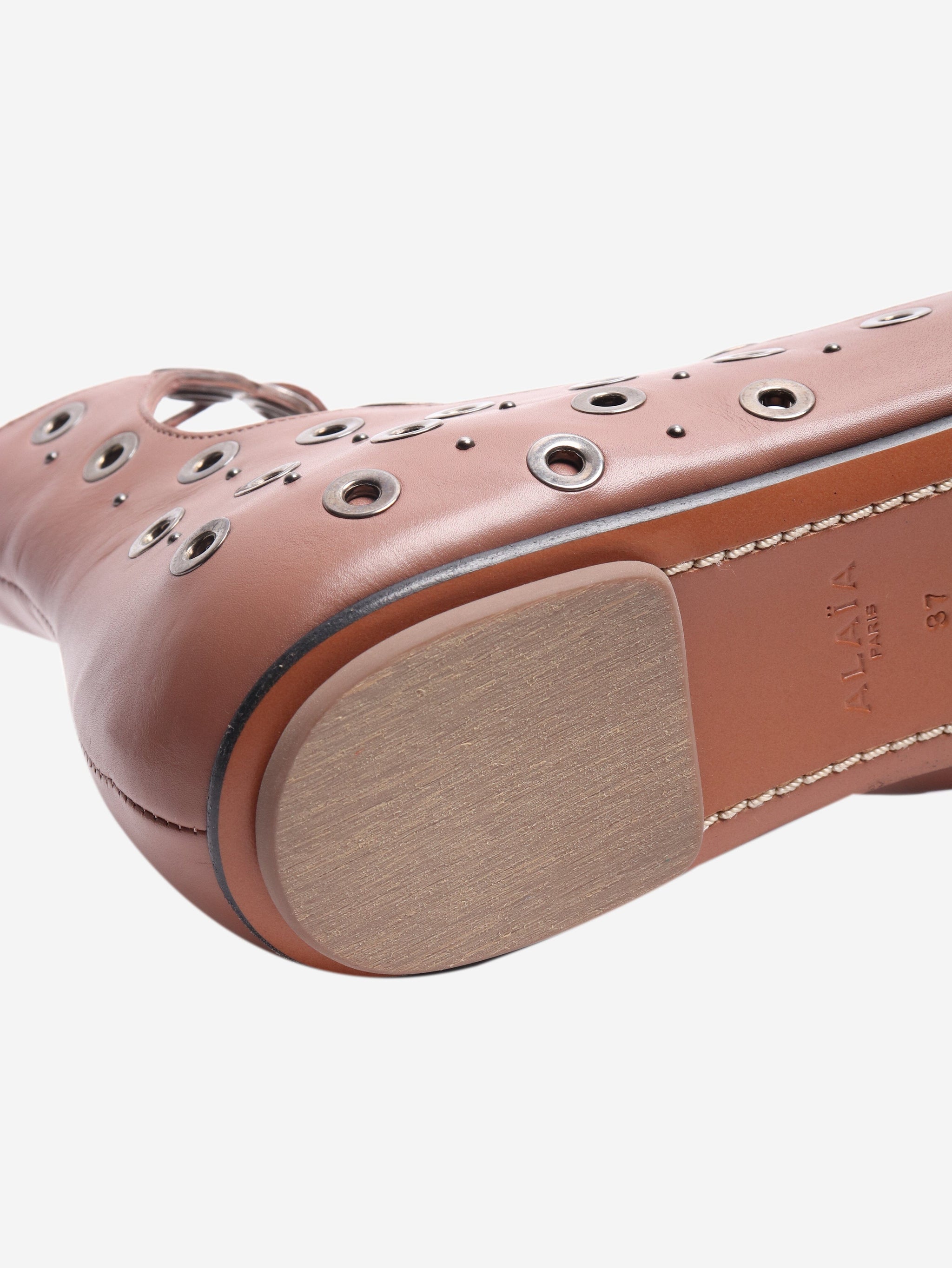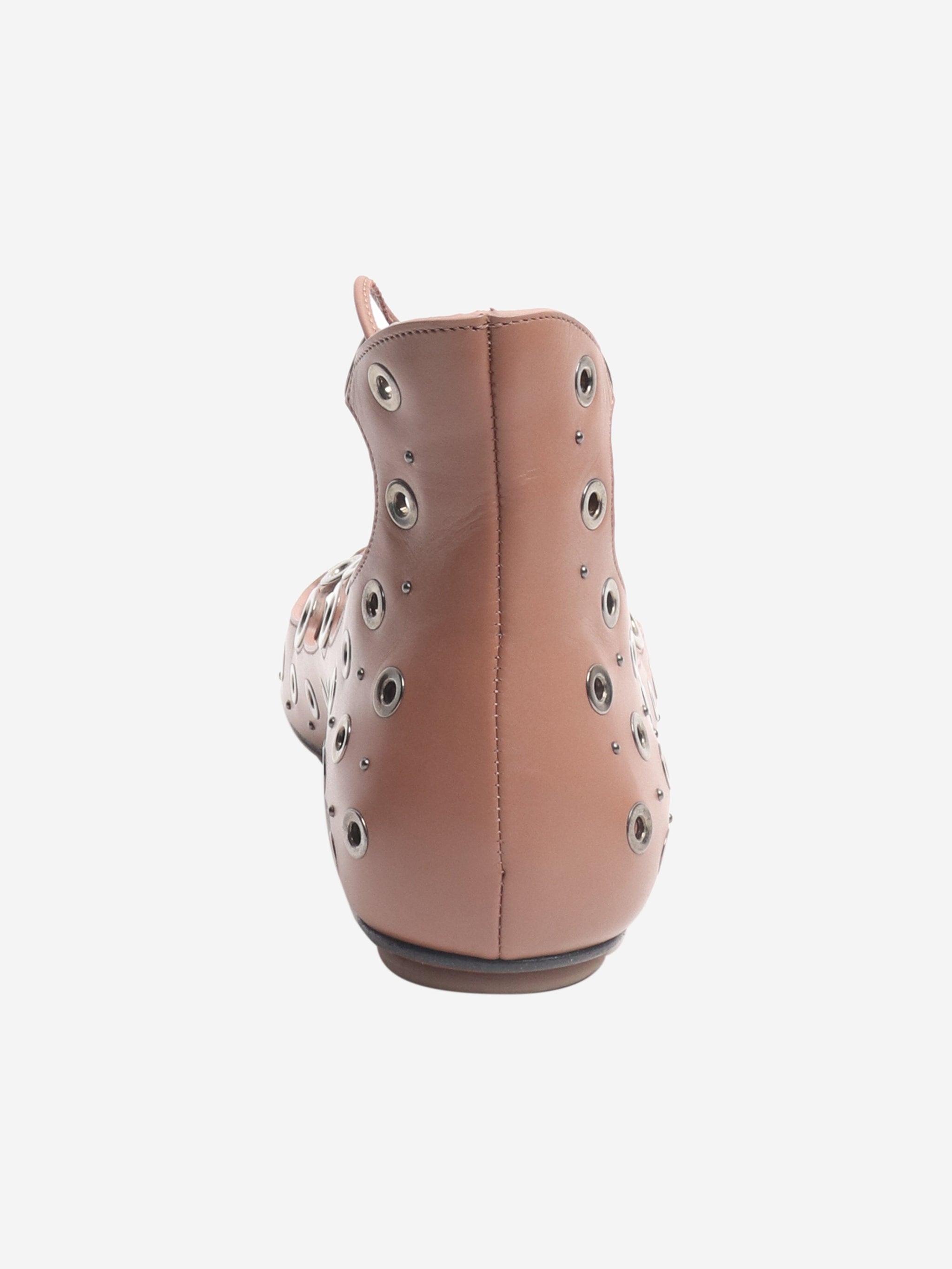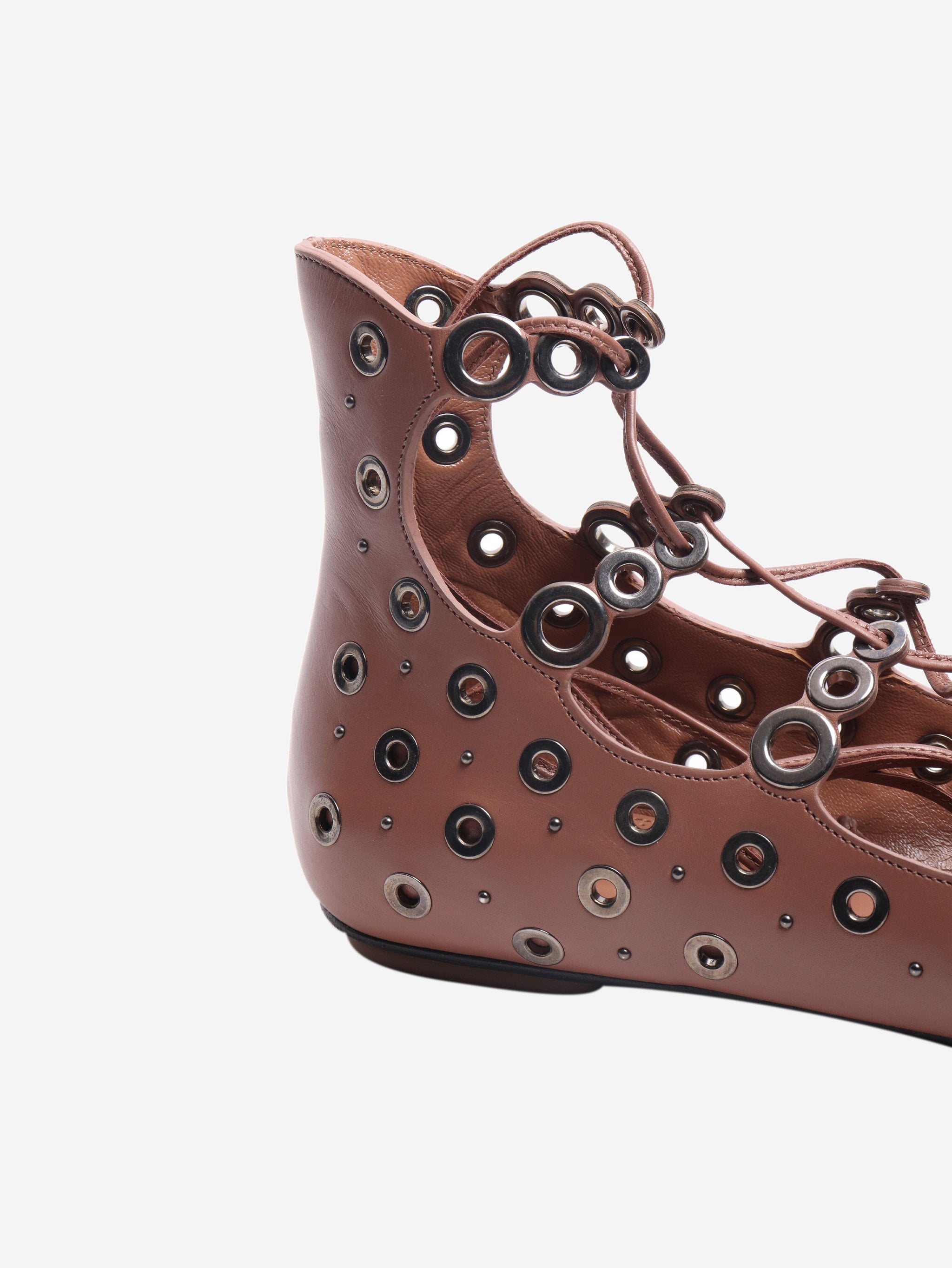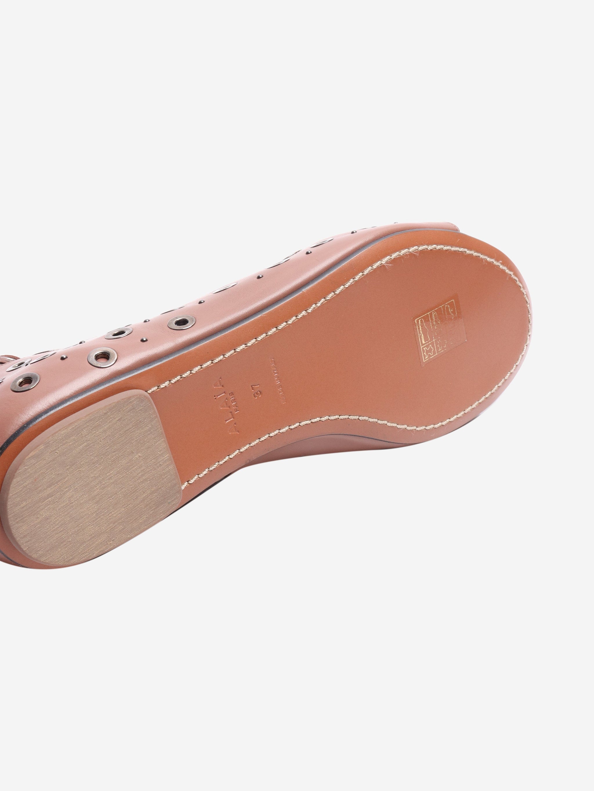 Brown leather eyelet open-toe flats - size EU 37