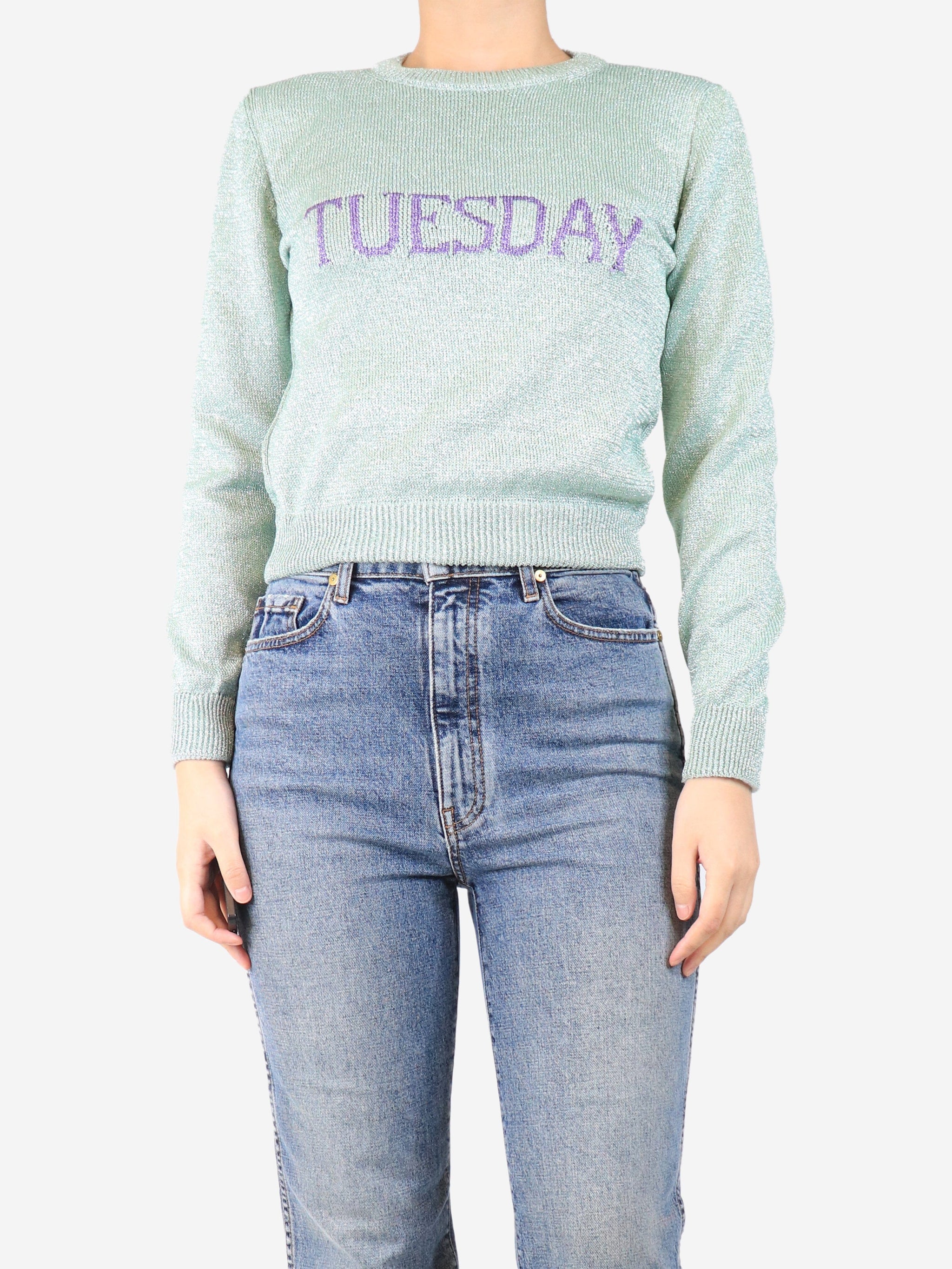 Green lurex Tuesday jumper - size UK 10
