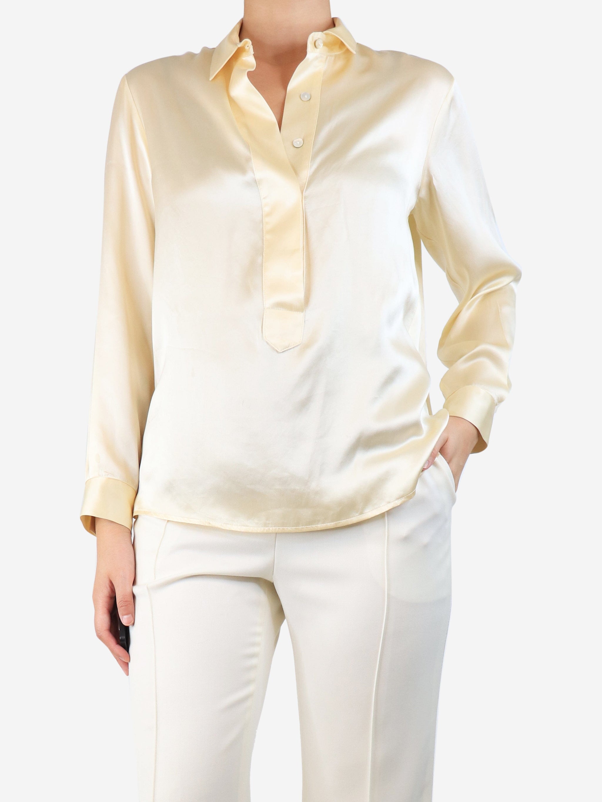 Cream silk satin blouse - size UK 8