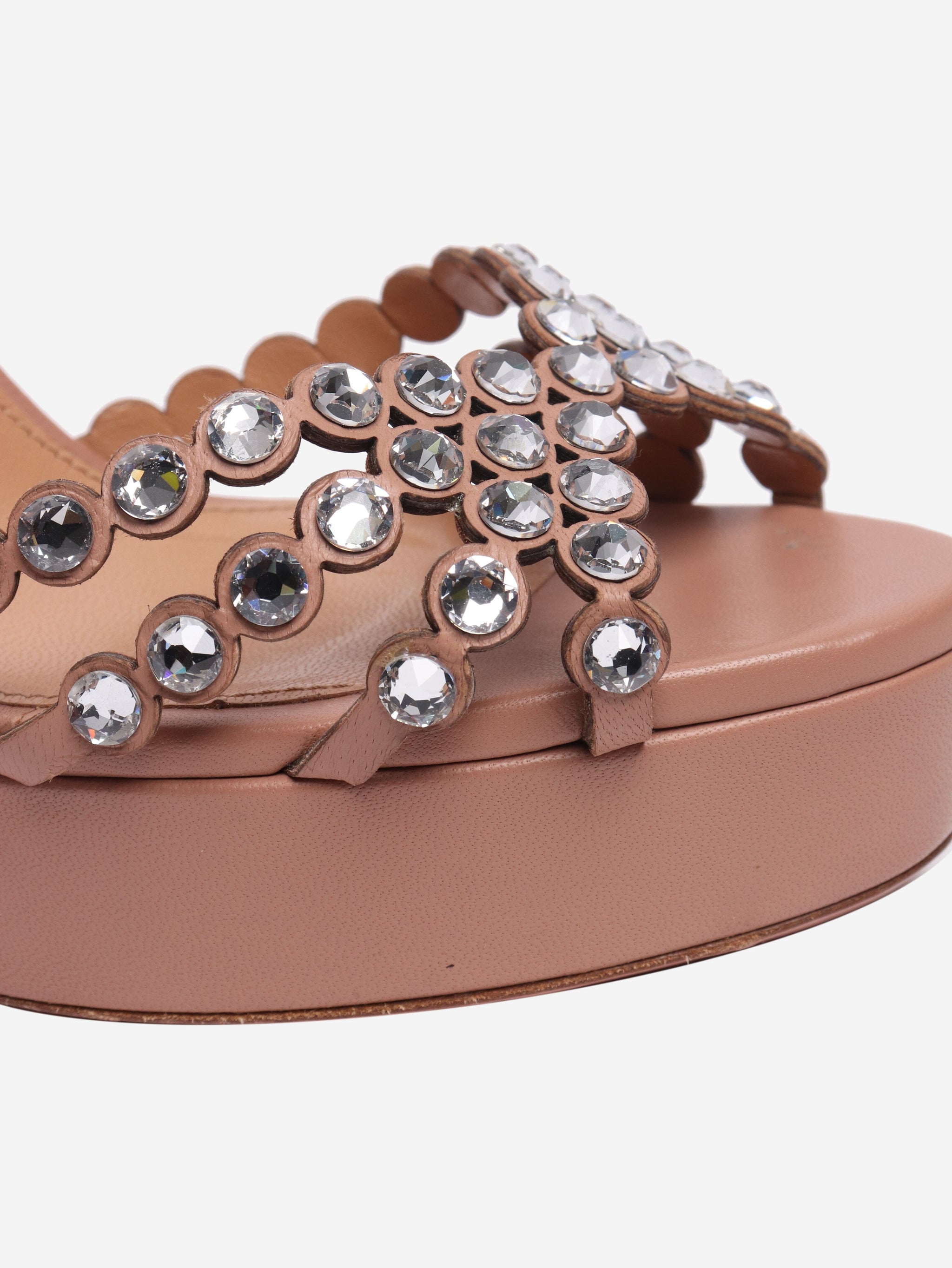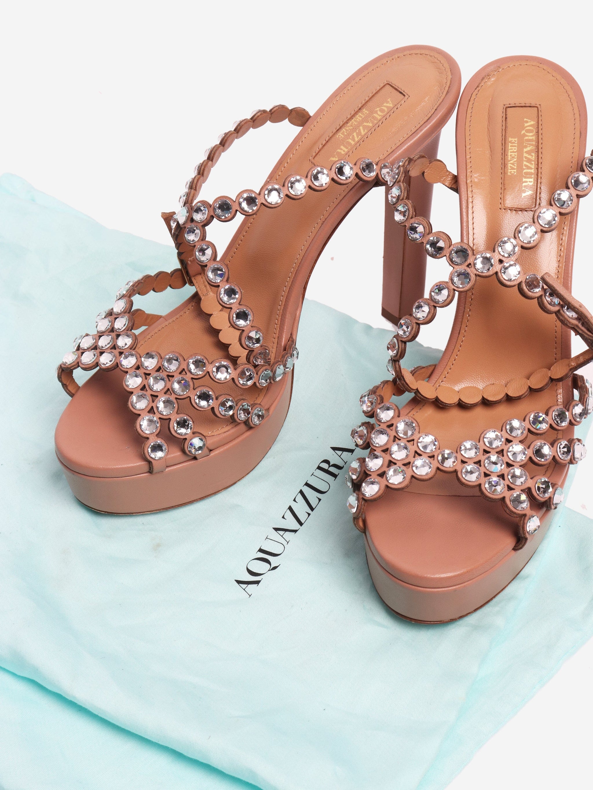 Beige diamante heeled sandals - size EU 38 (UK 5)