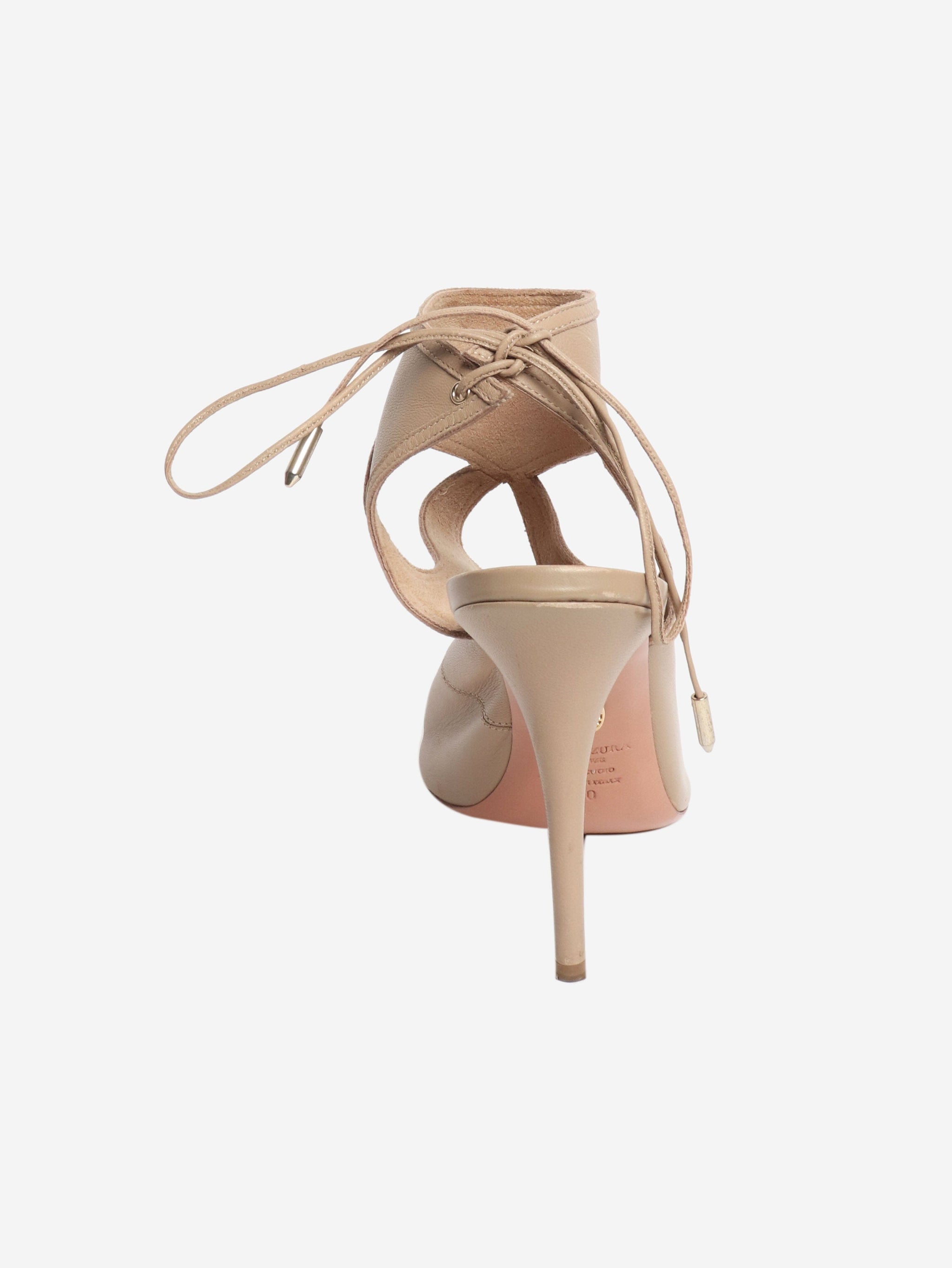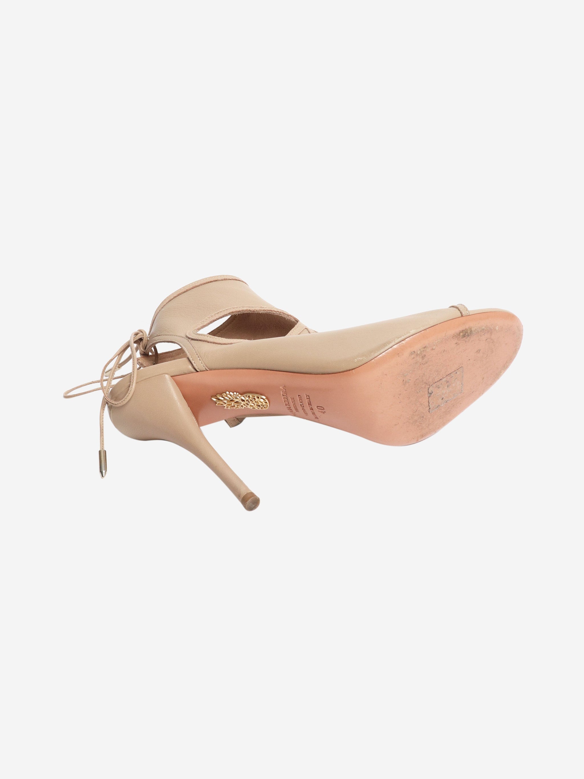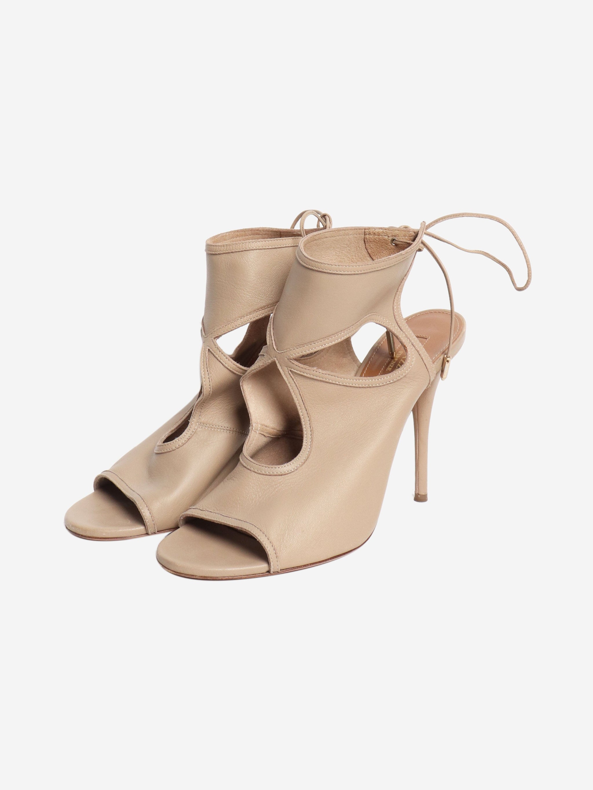 Beige leather cutout sandal heels - size EU 40