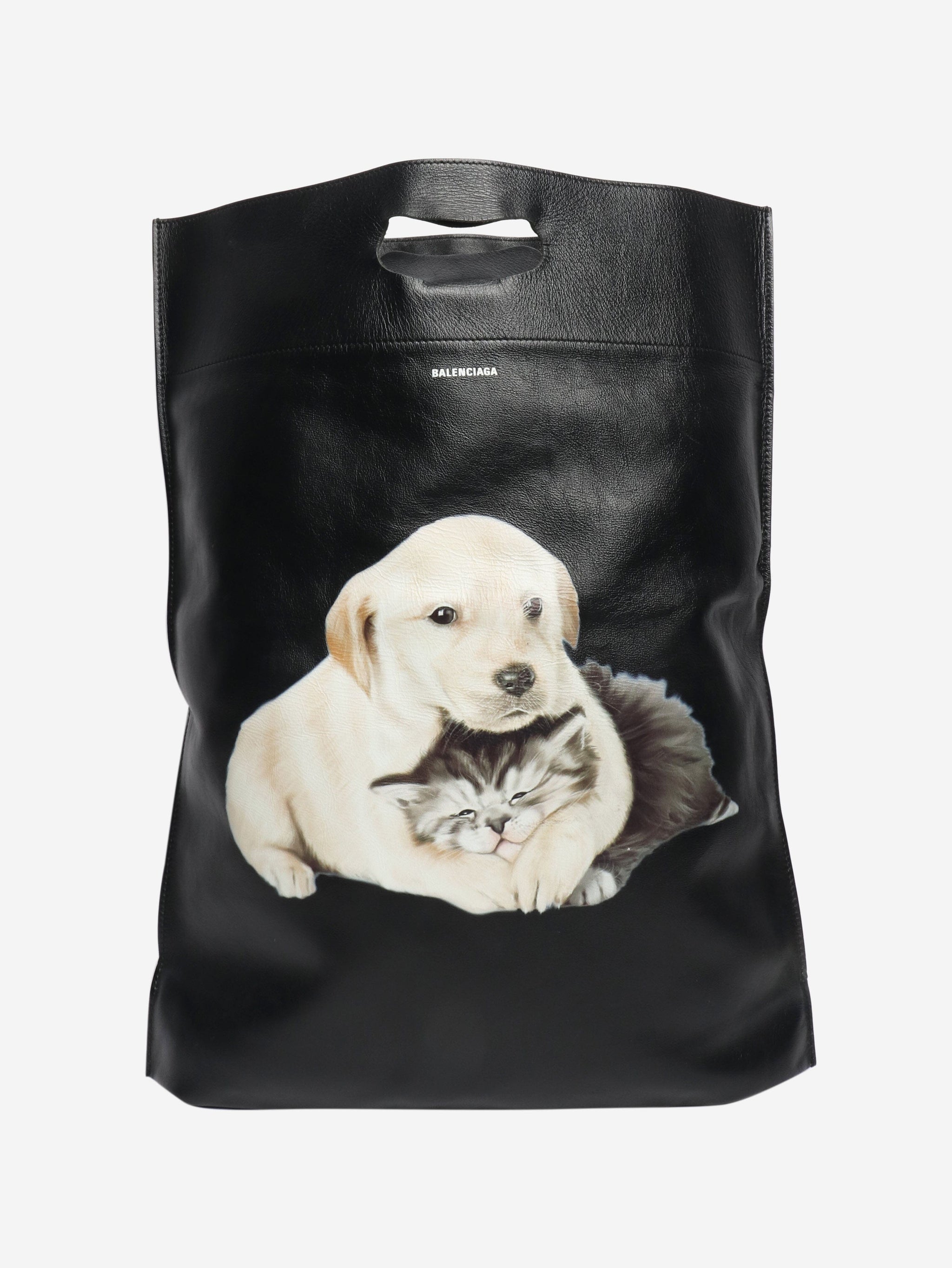 Black puppy and kitten tote bag