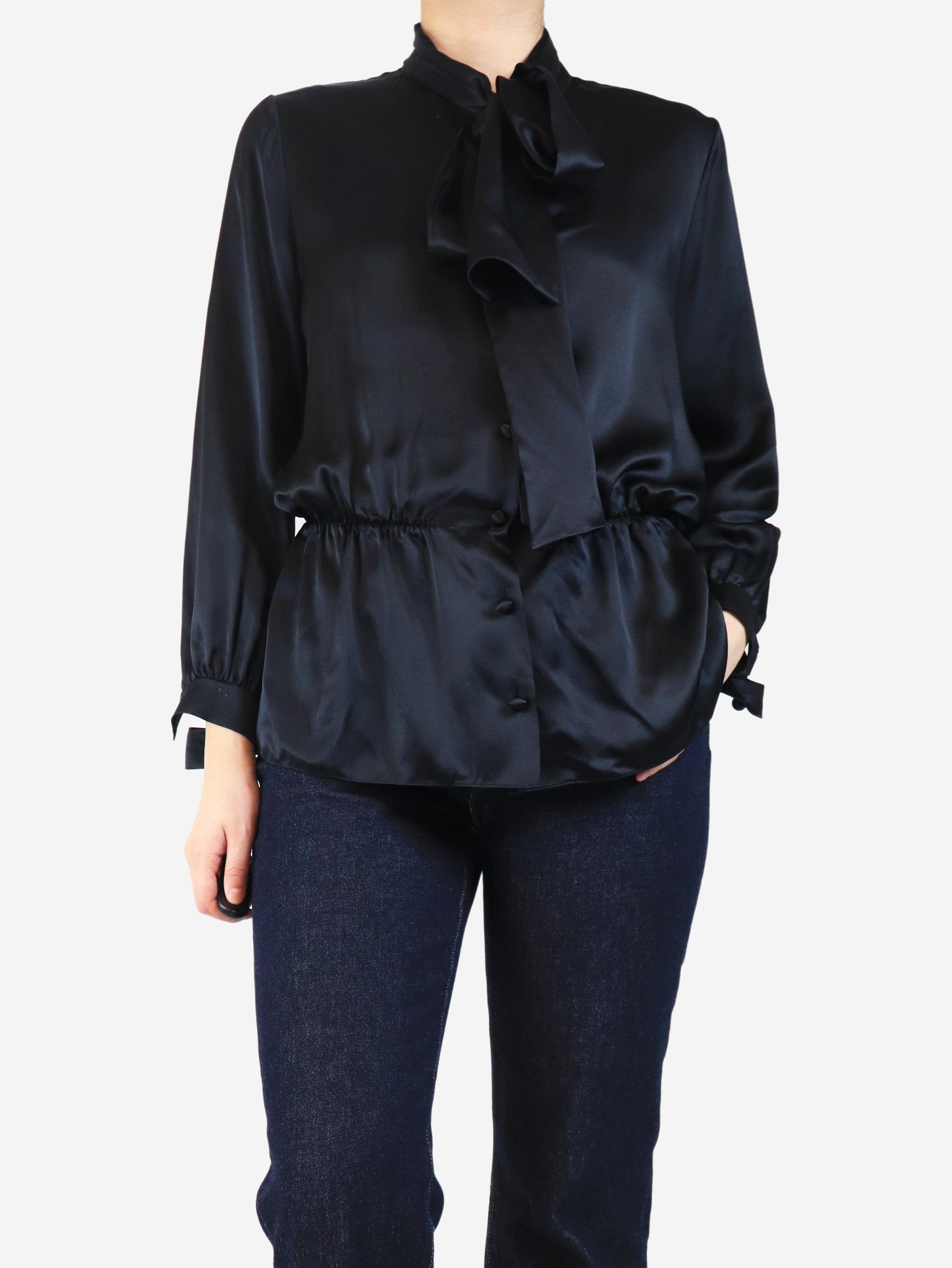 Black silk blouse - size UK 12