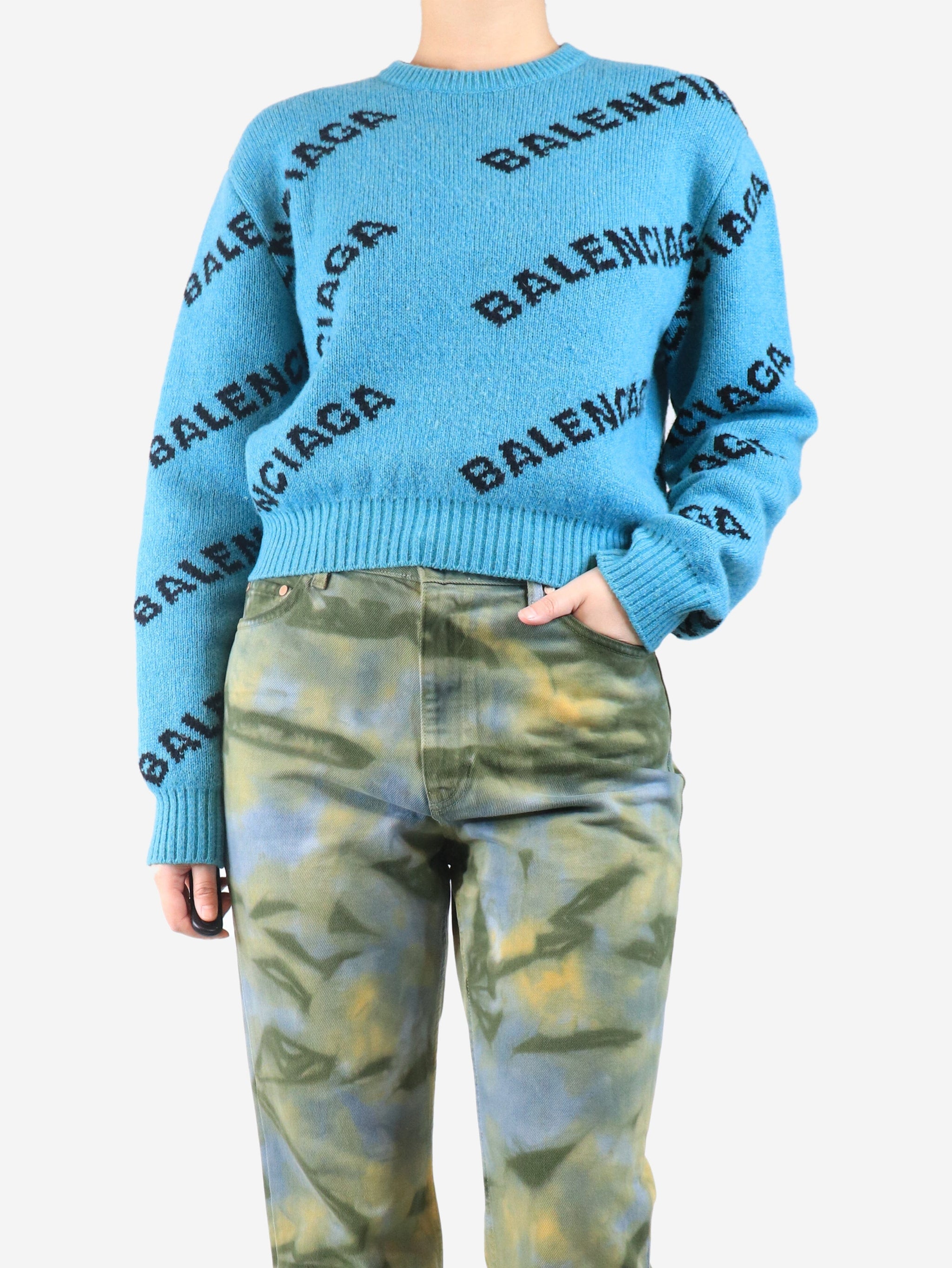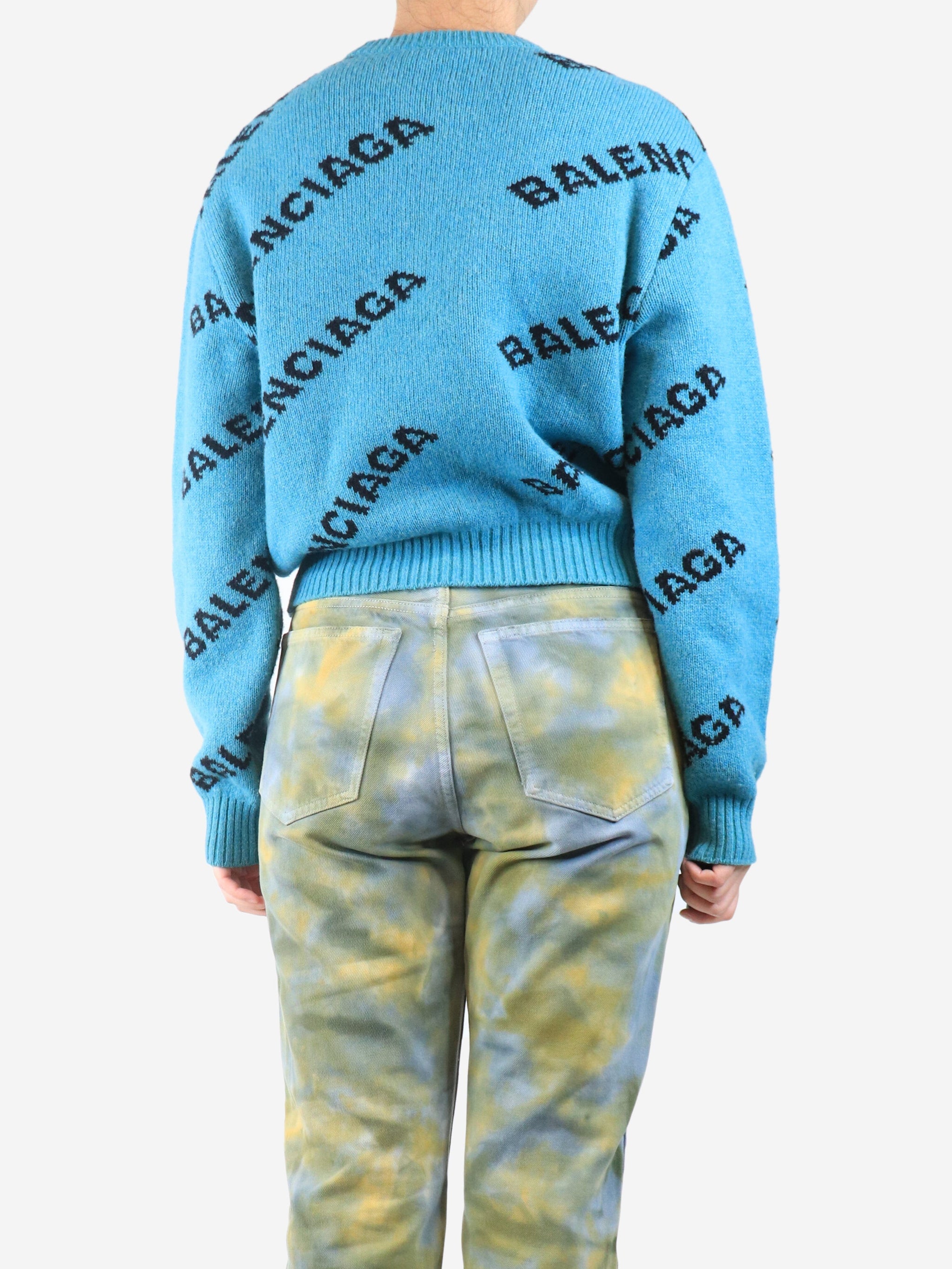 Blue all-over logo jumper - size UK 10