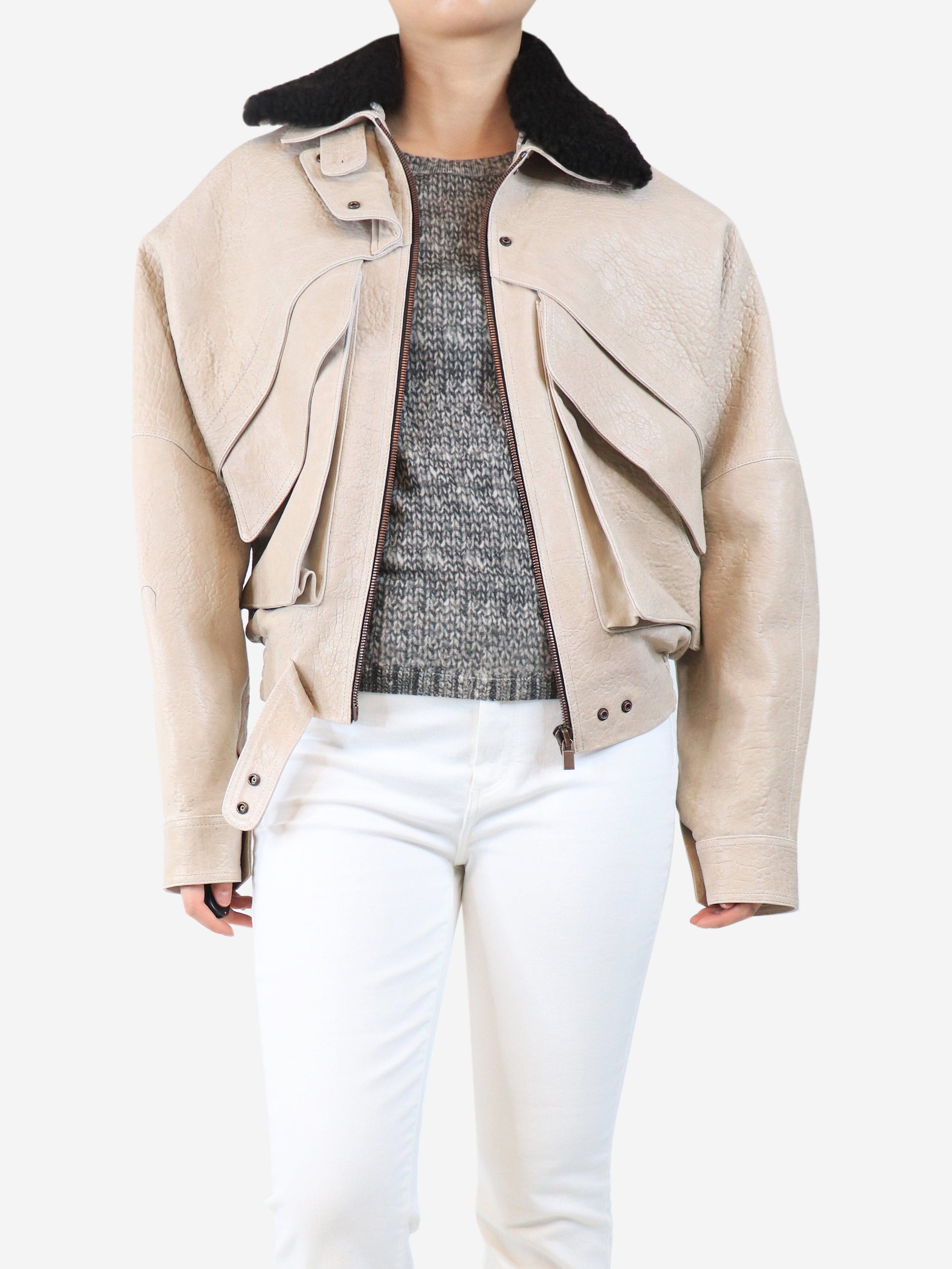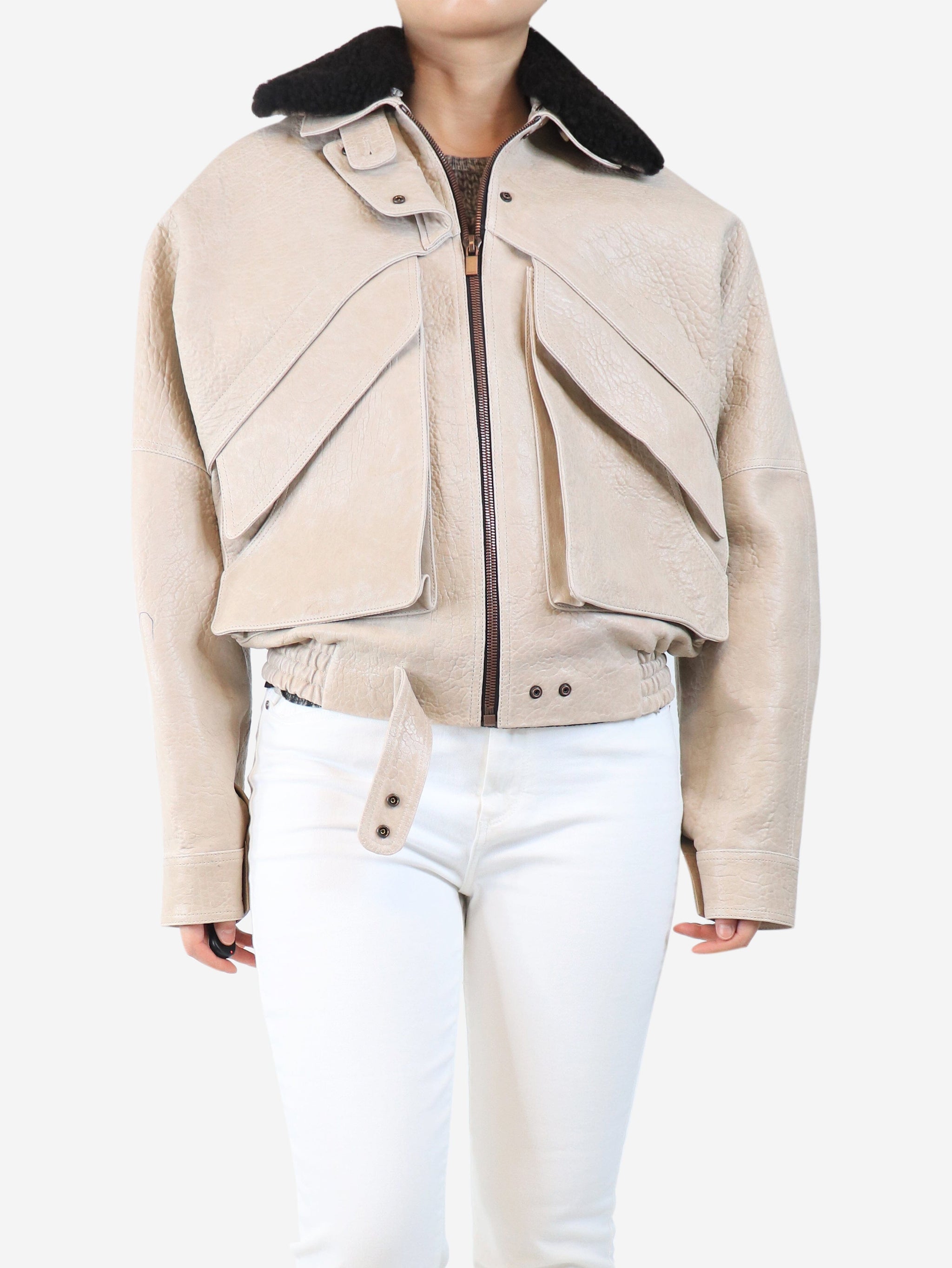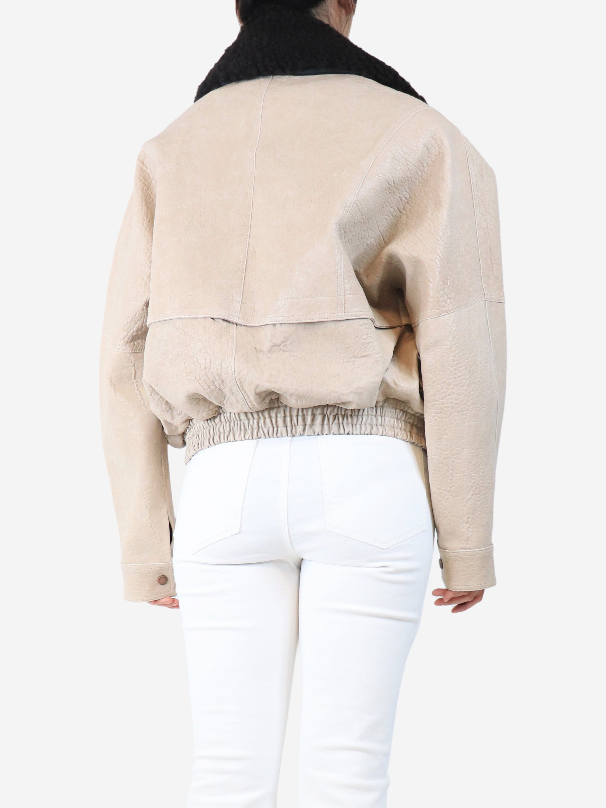 Beige leather flight jacket - size UK 8