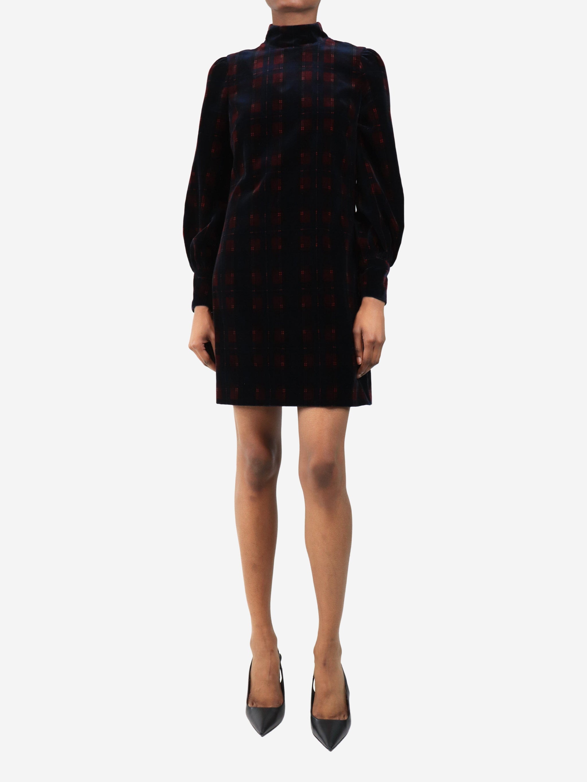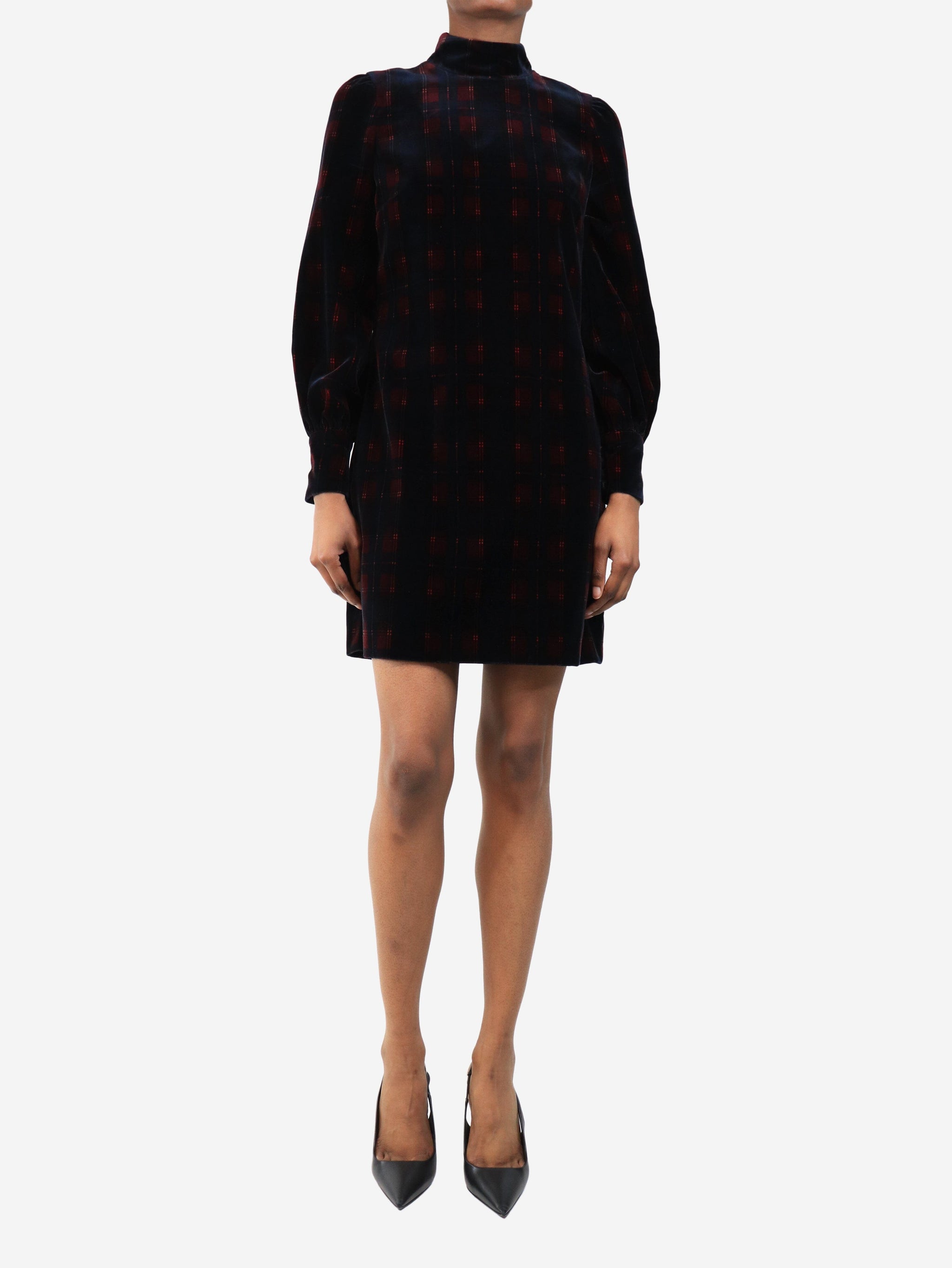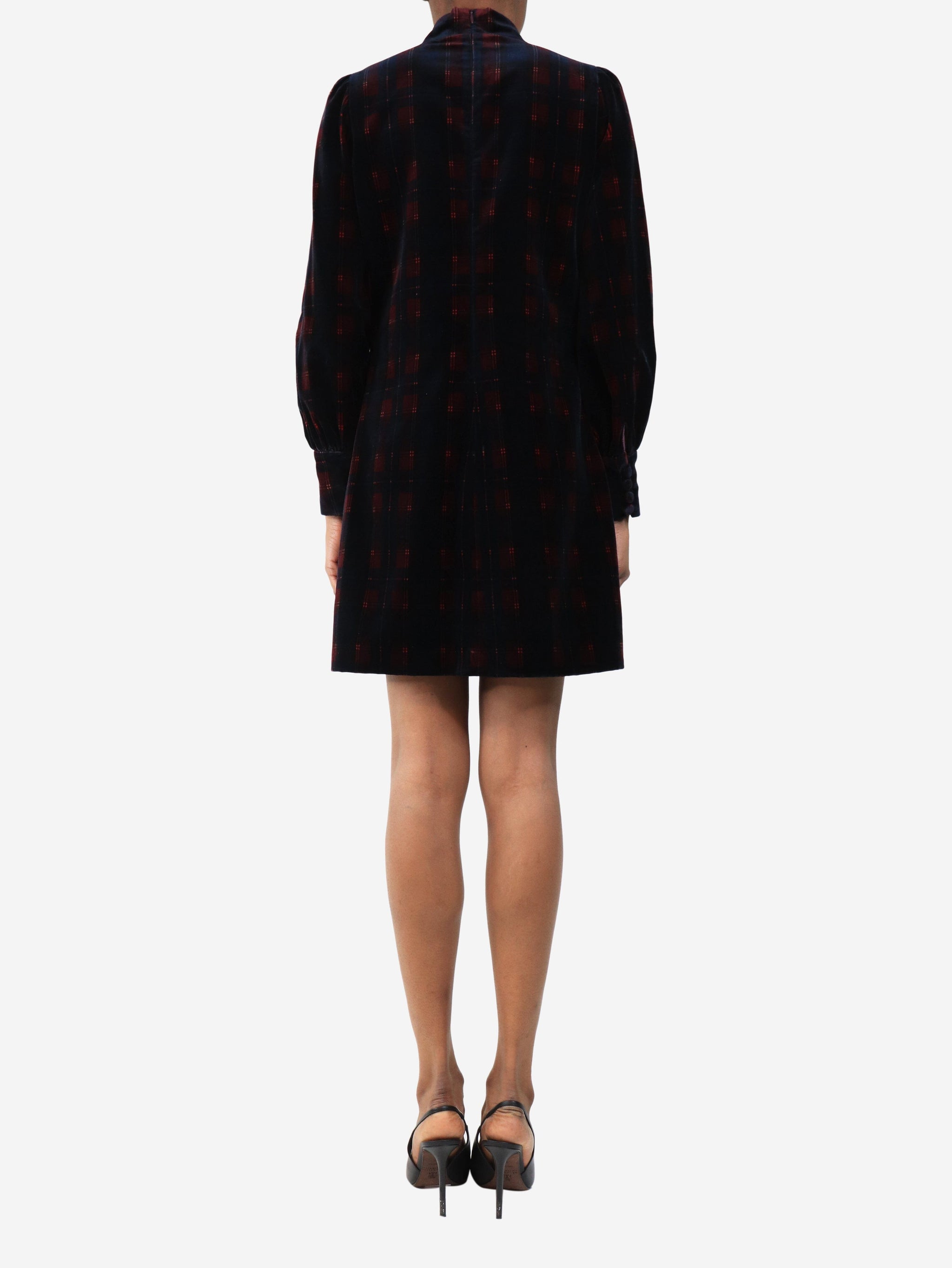 Navy plaid velour mini dress - size UK 8