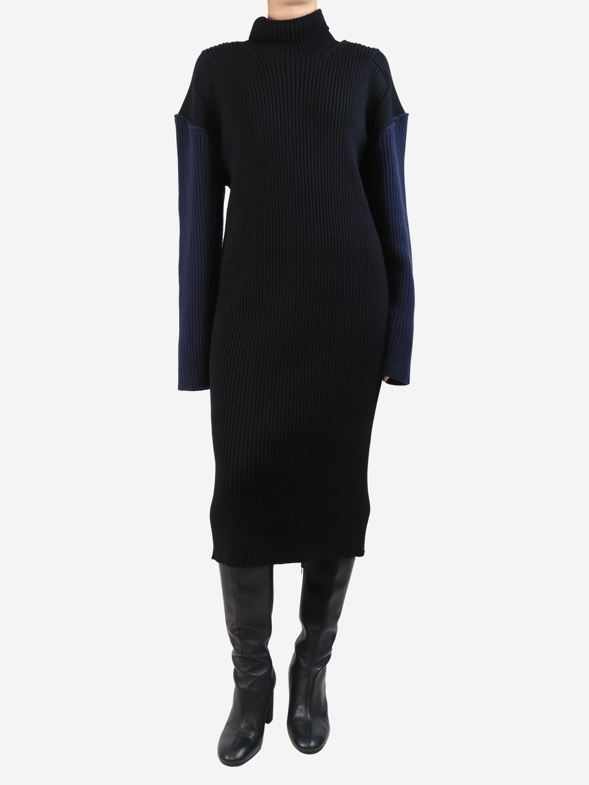 Black and navy ribbed knit dress - size S