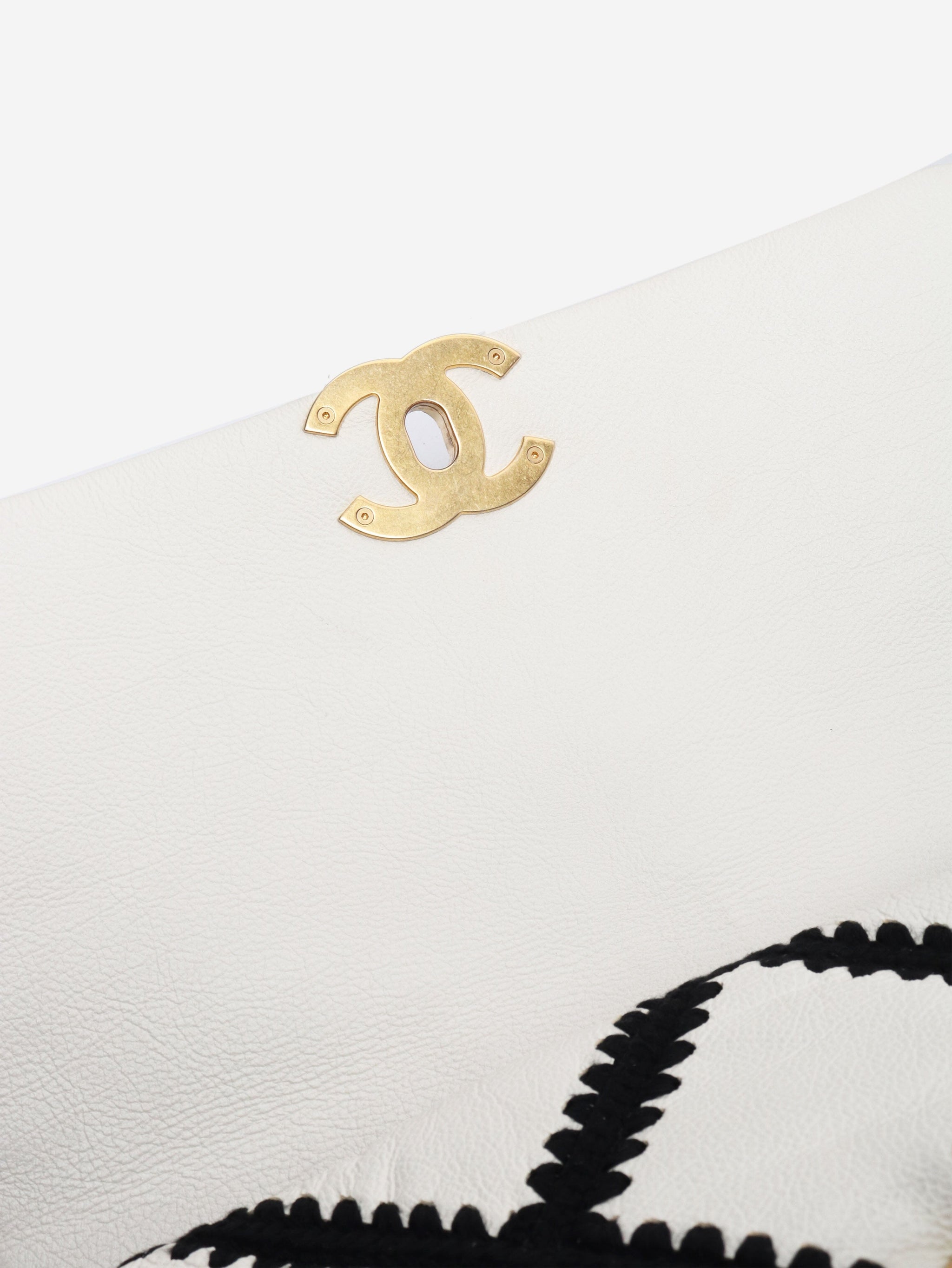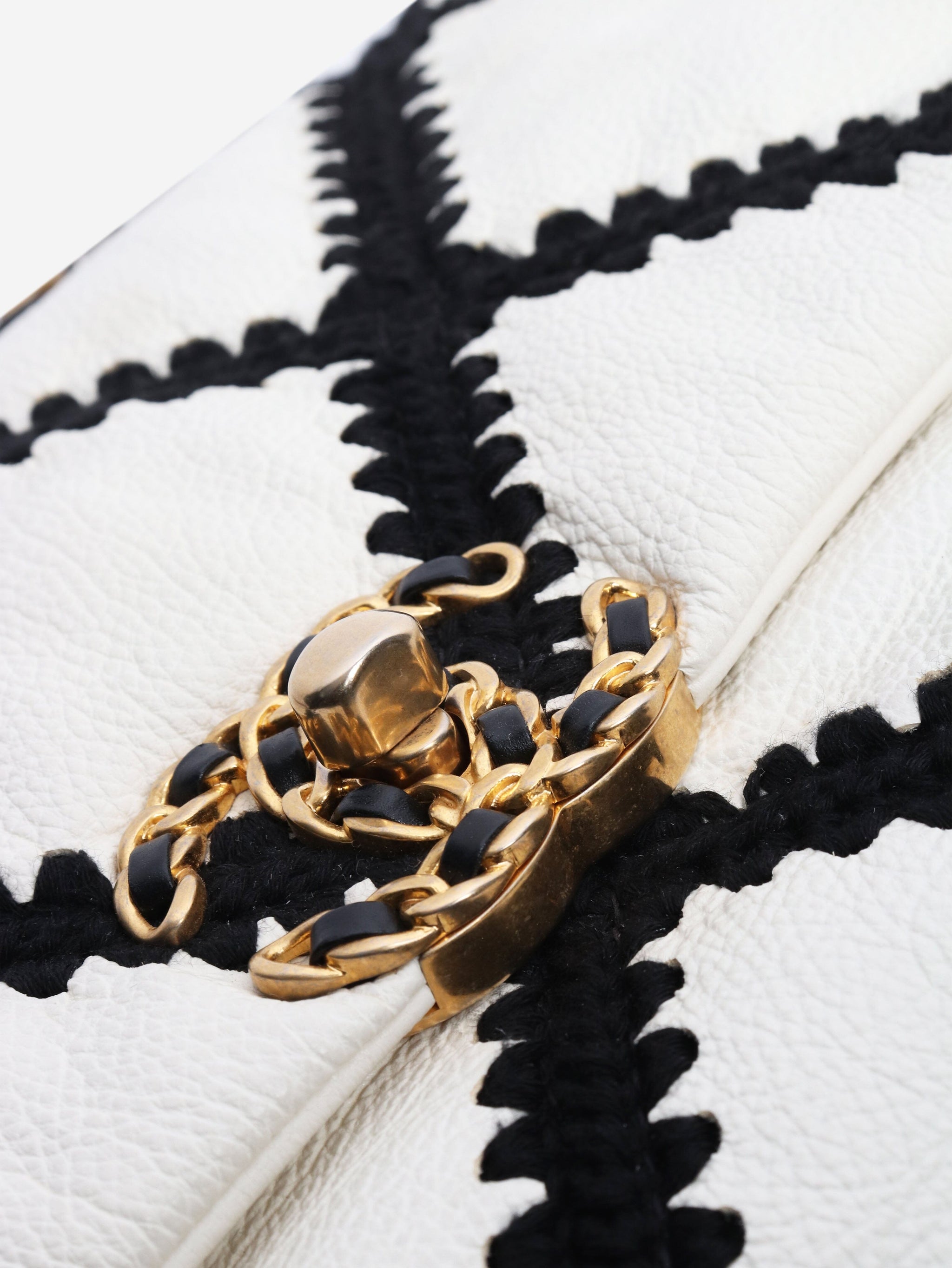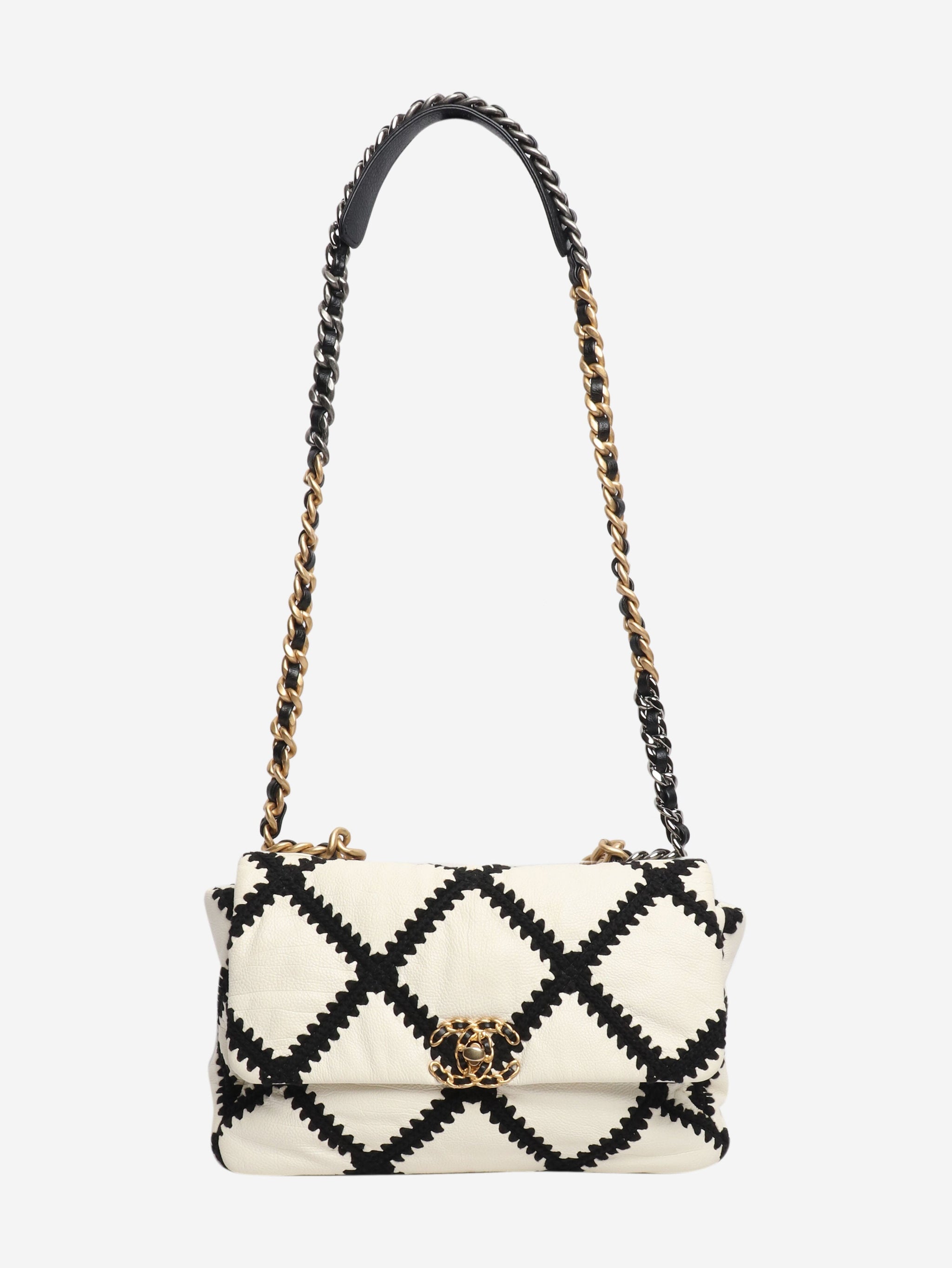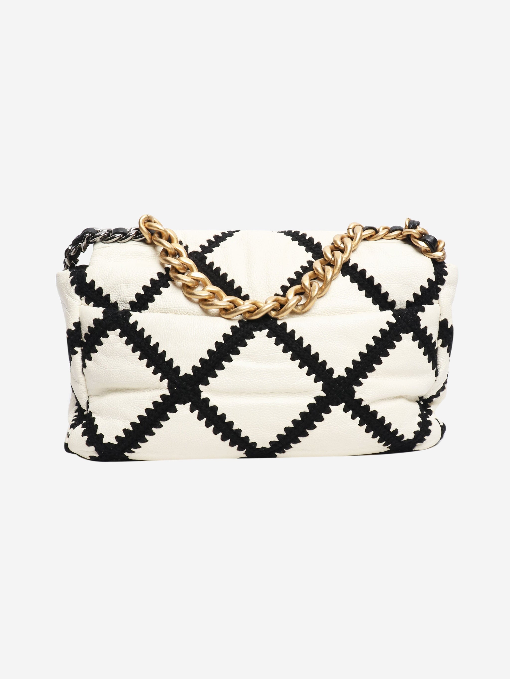 Black and white 2020 crochet quilted lambskin 19 flap shoulder bag