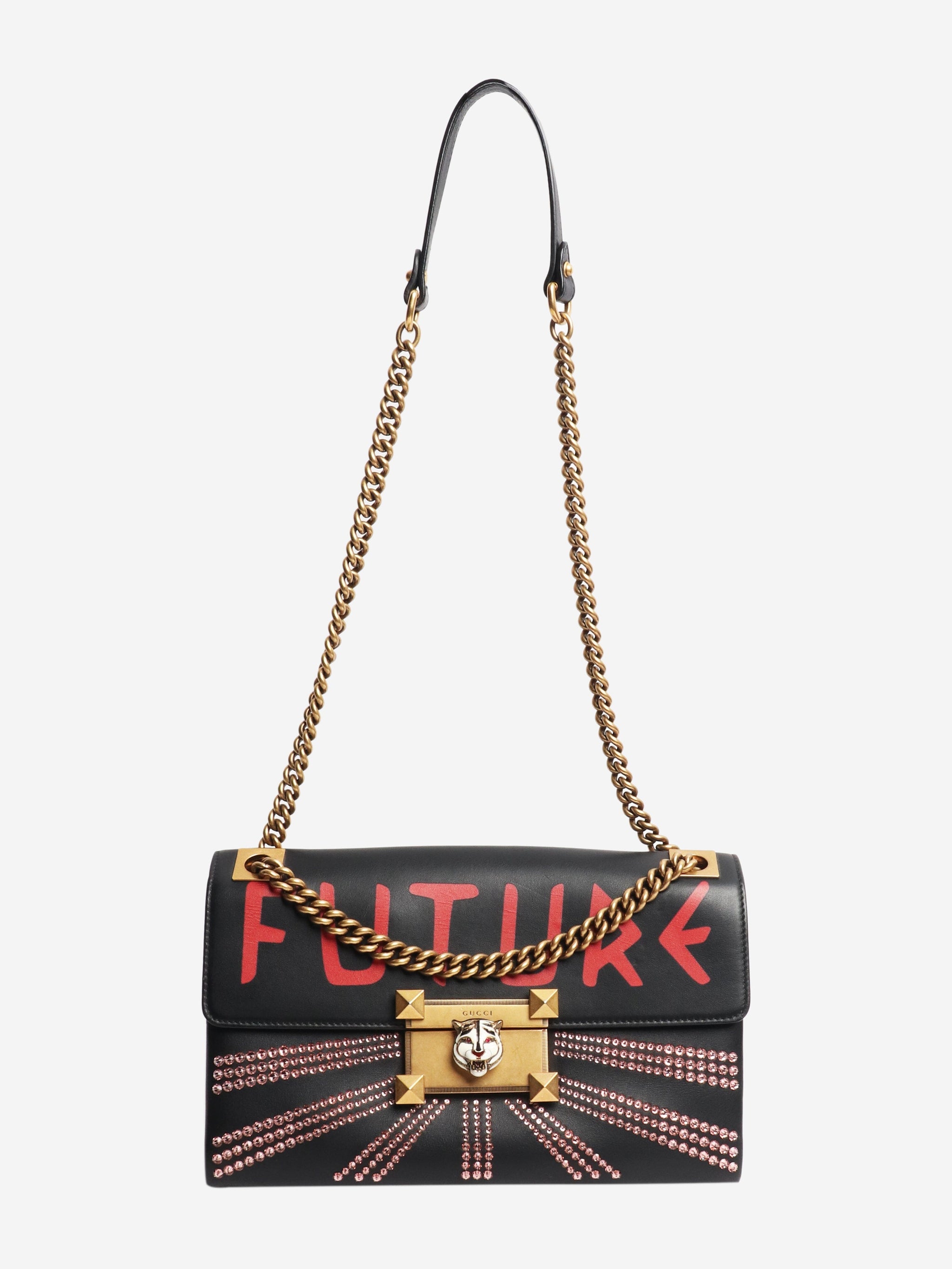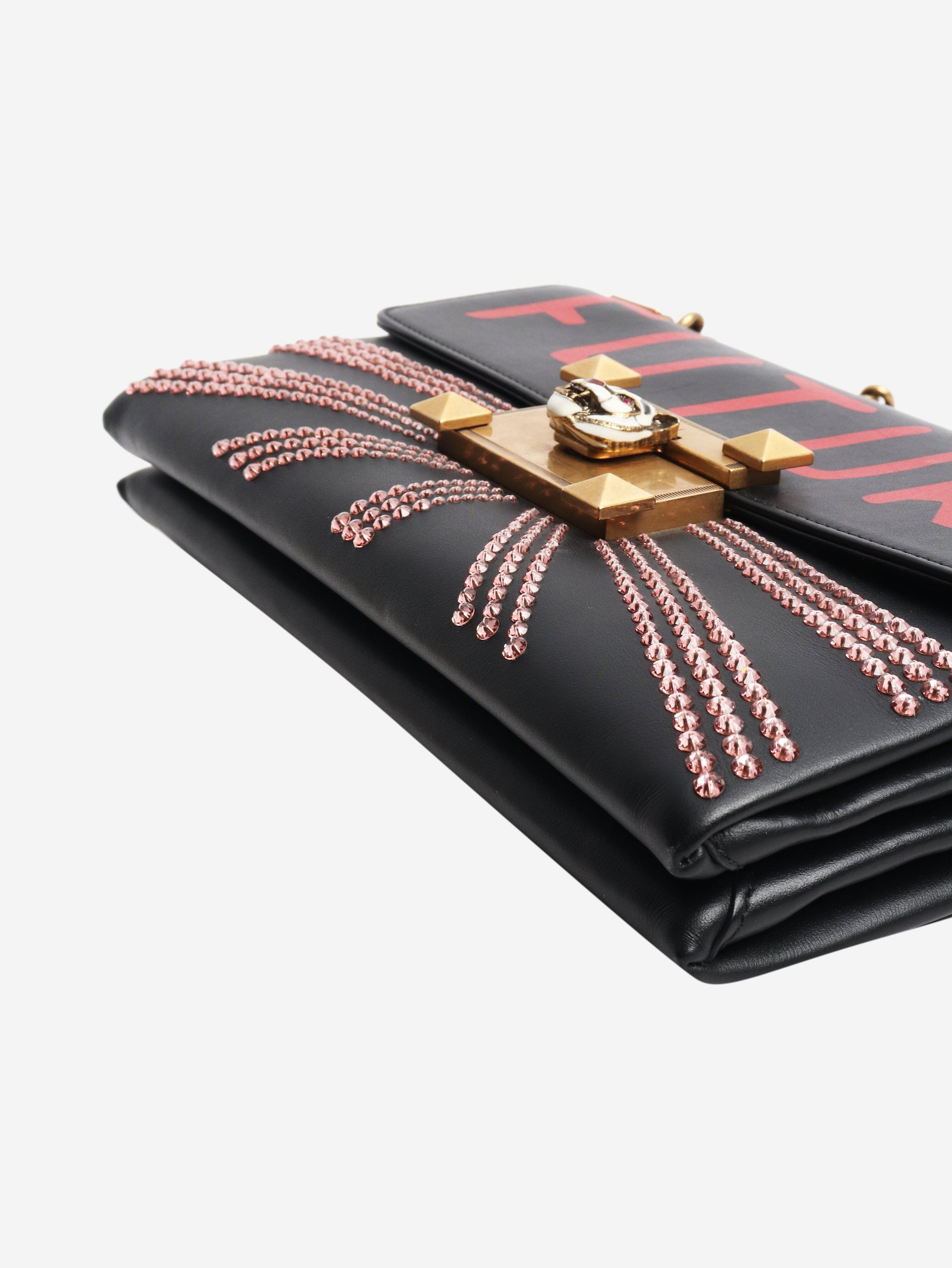 Black bejewelled Future leather chain shoulder bag