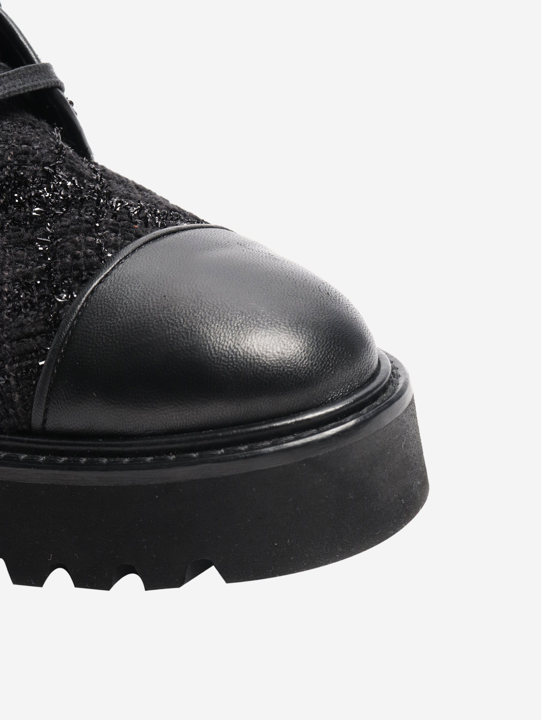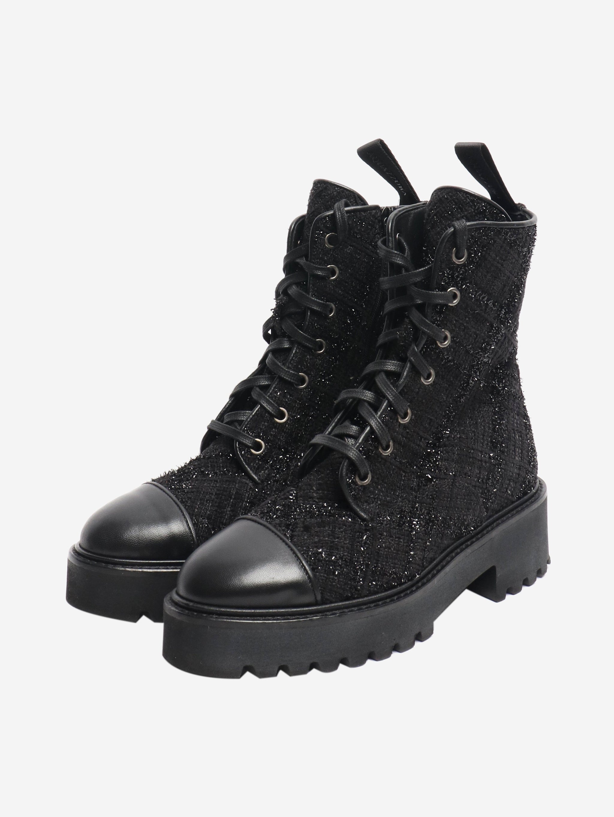 Black boucle lace-up ankle boots - size EU 37.5