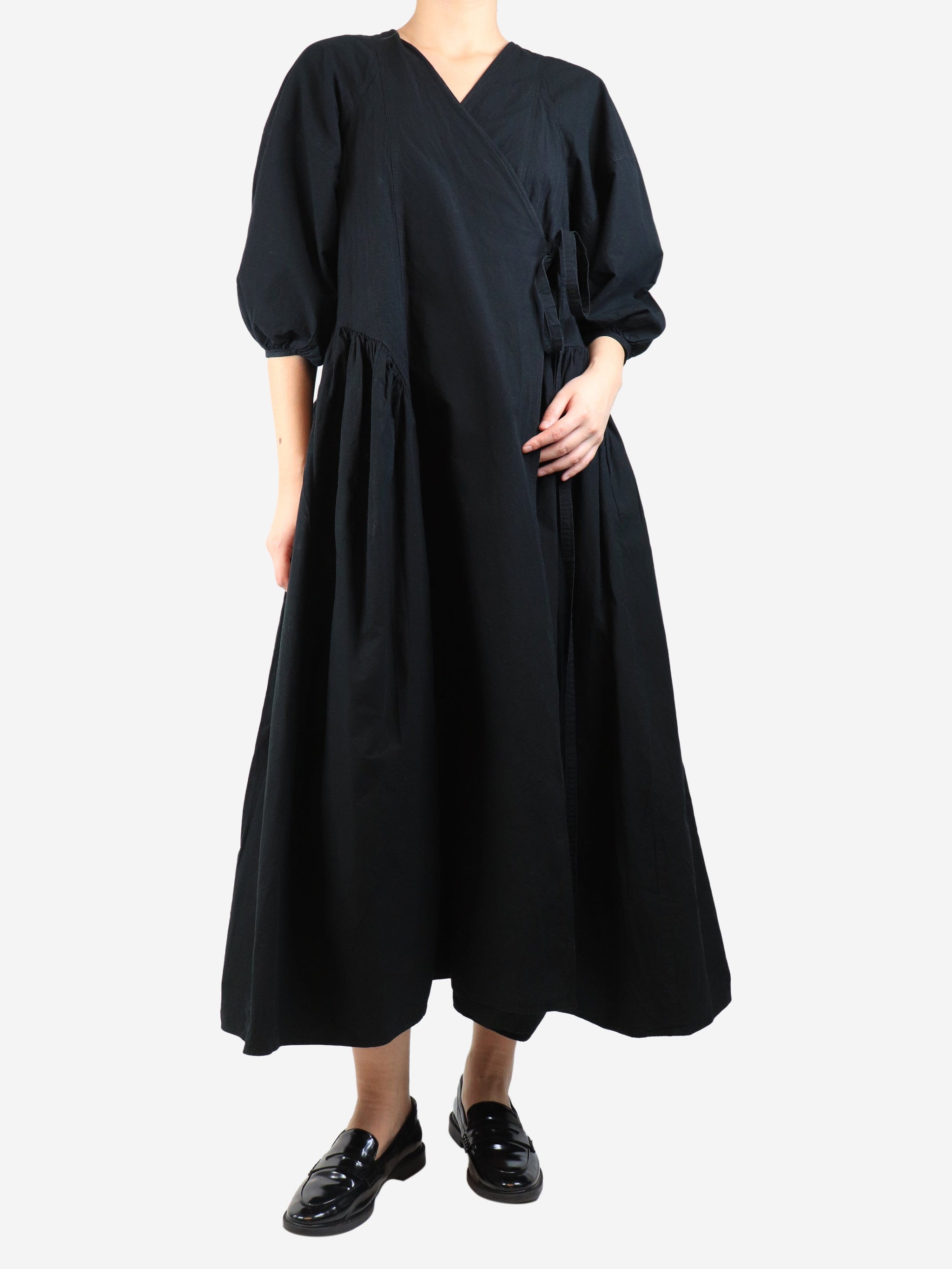 Black cotton wrap dress - size UK 12