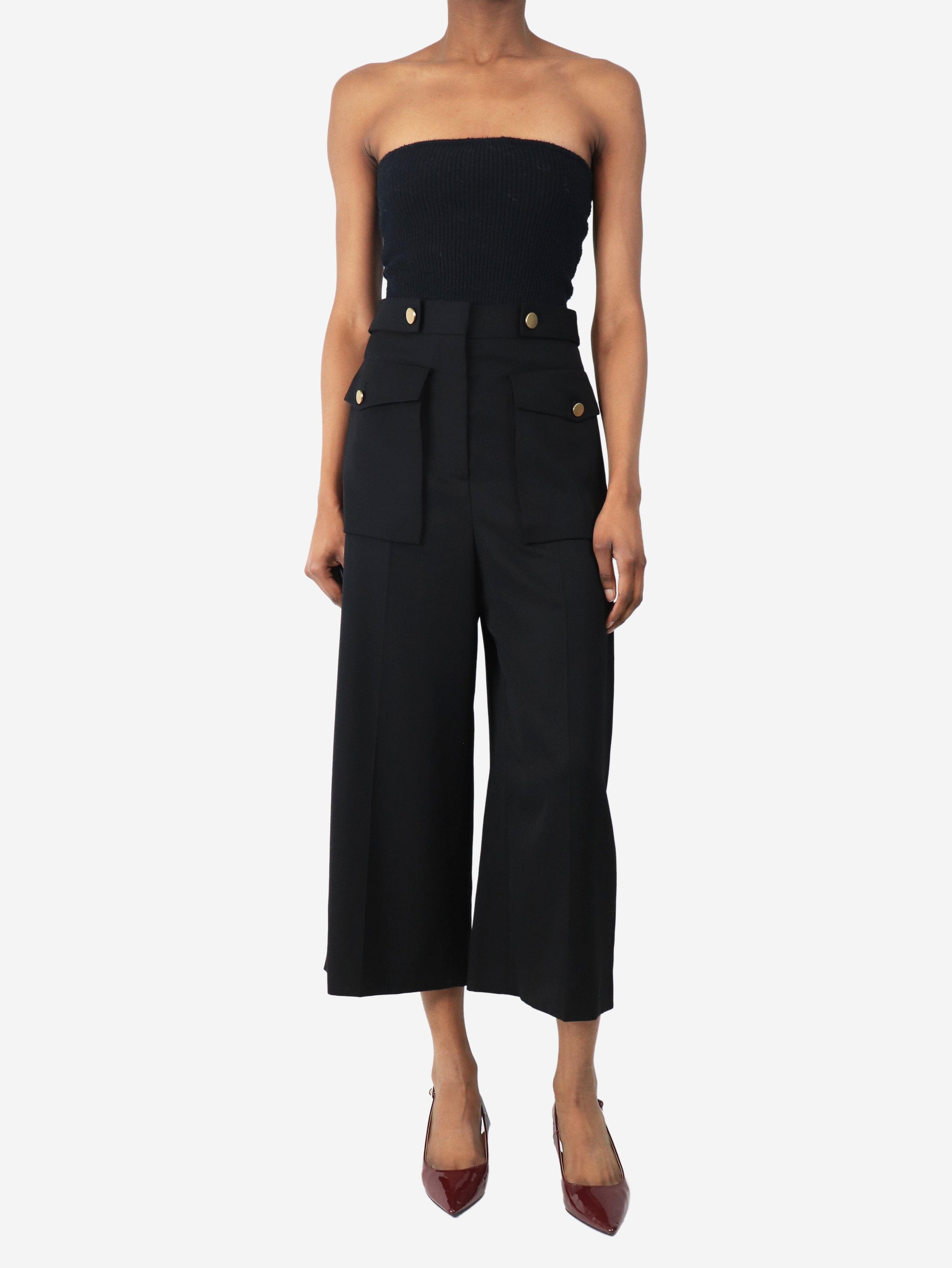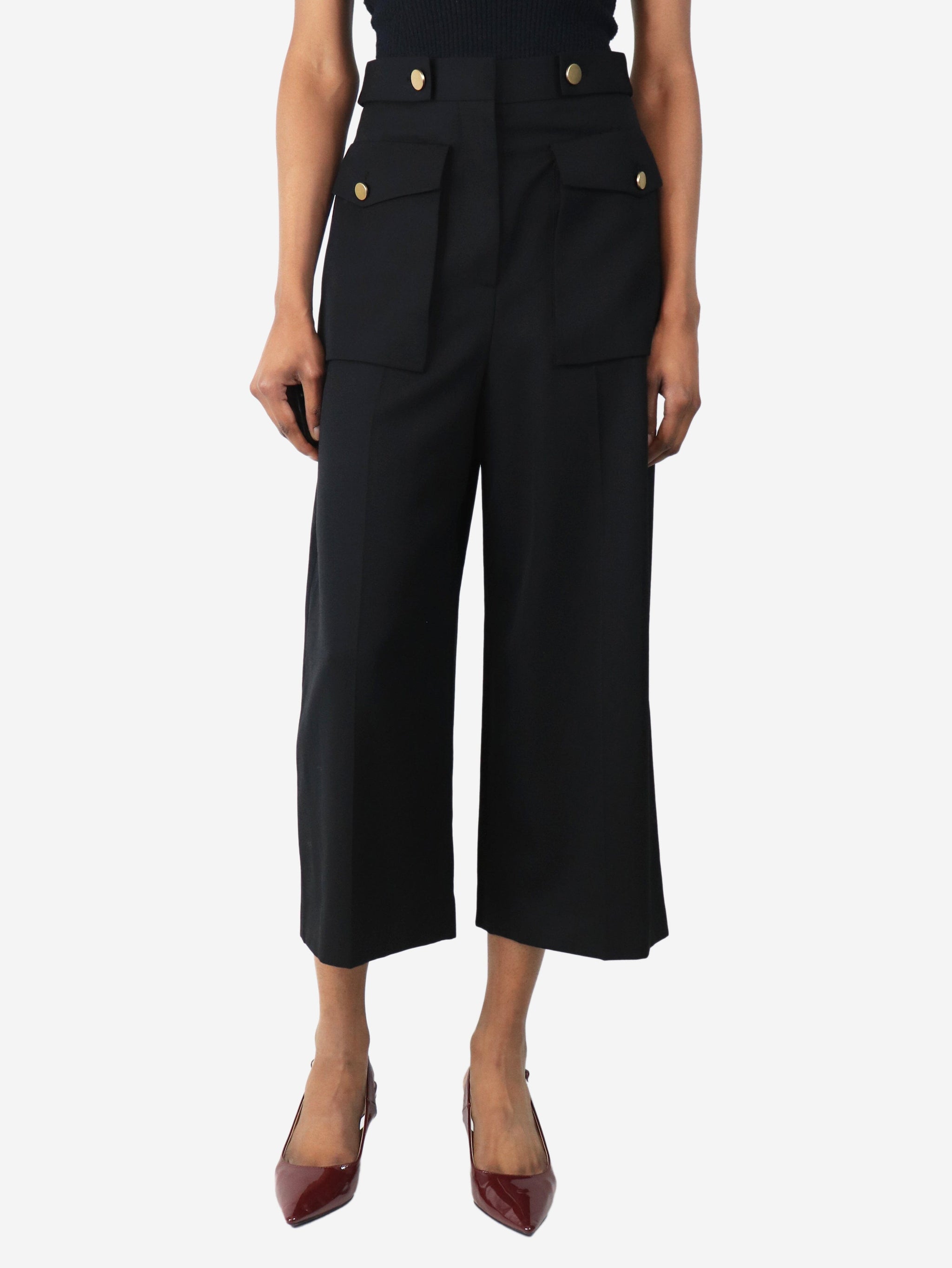 Black cropped wool trousers - size UK 8
