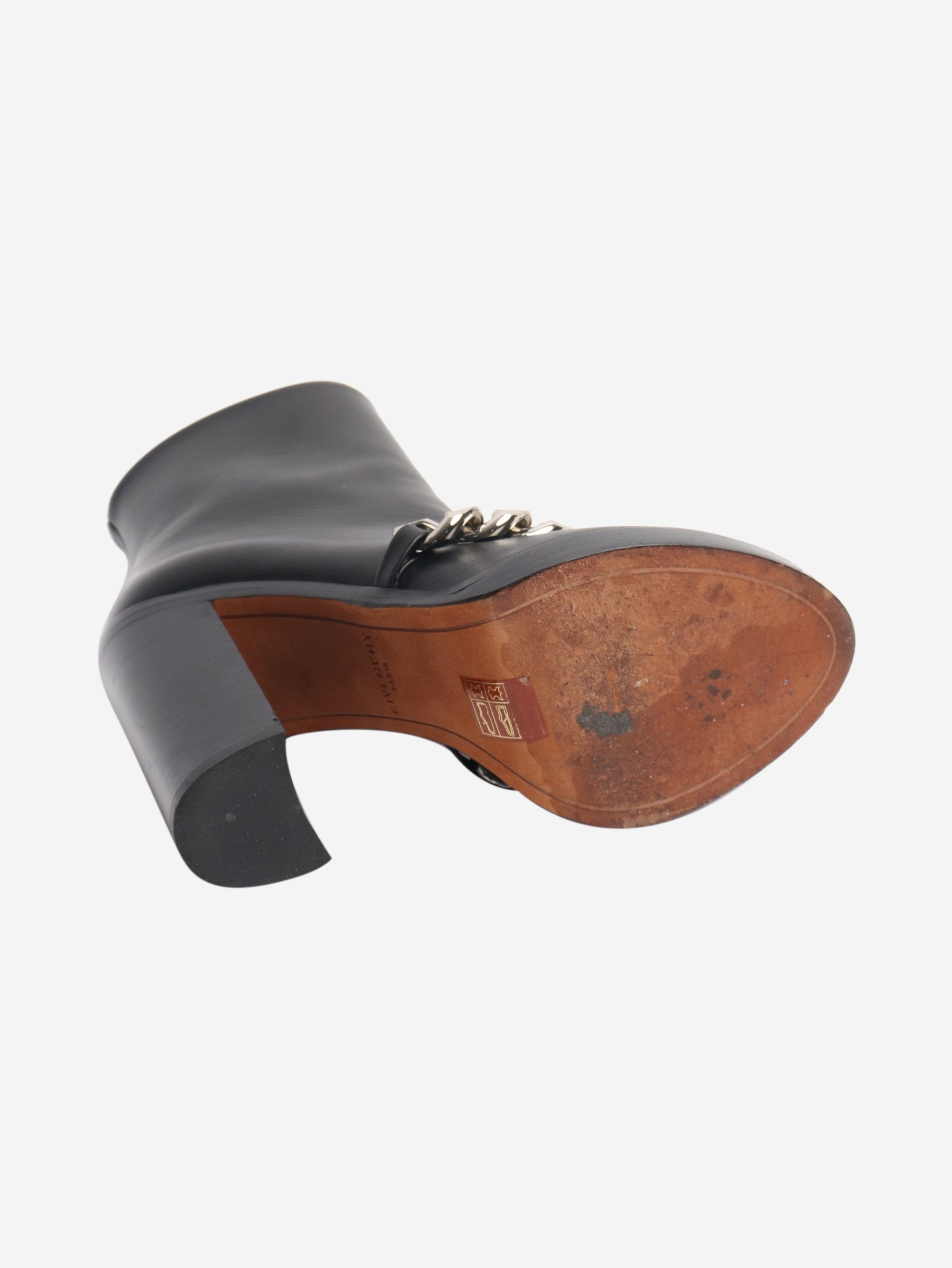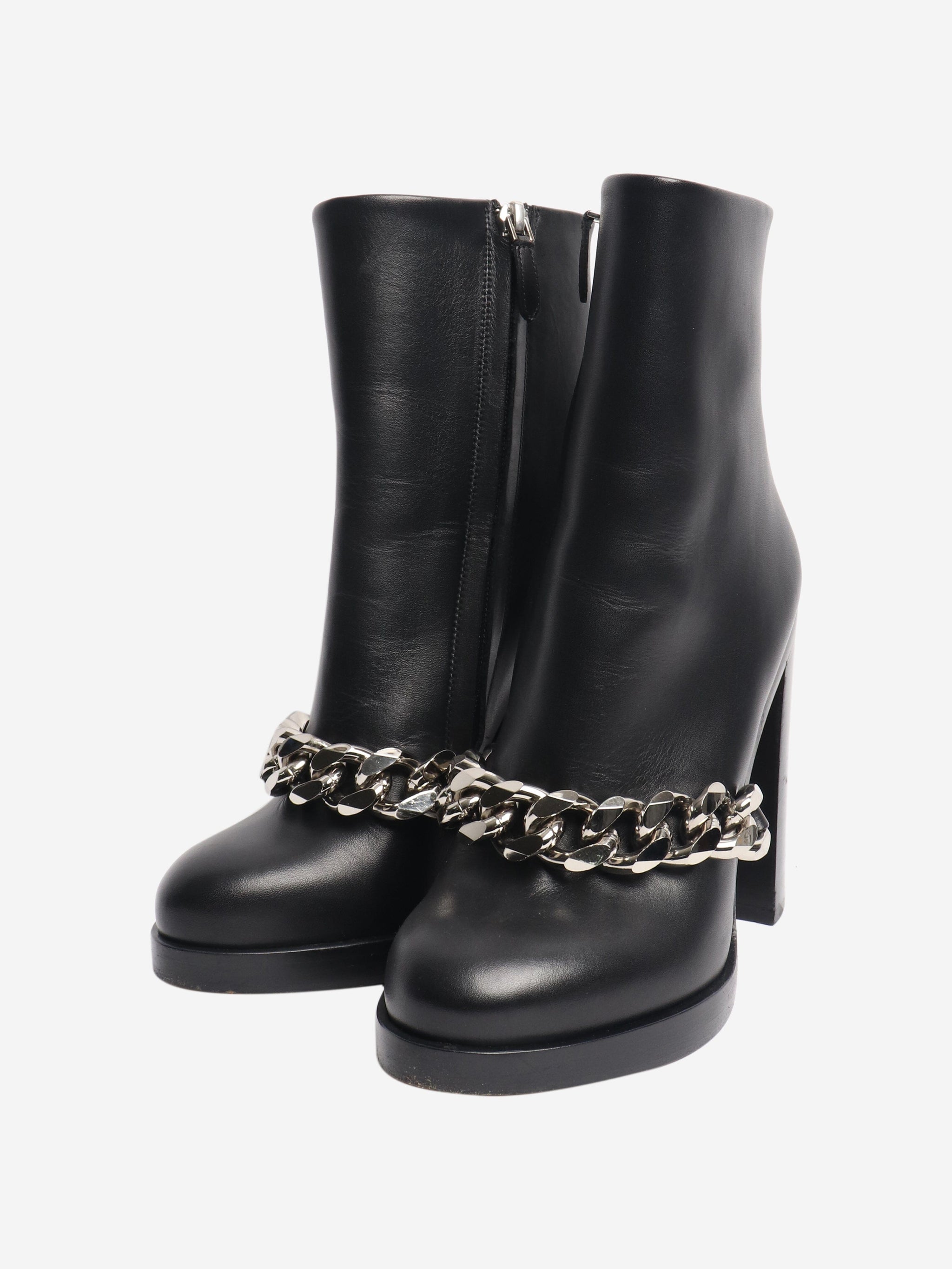 Black leather boots with chain front - size EU 36 (UK 3)