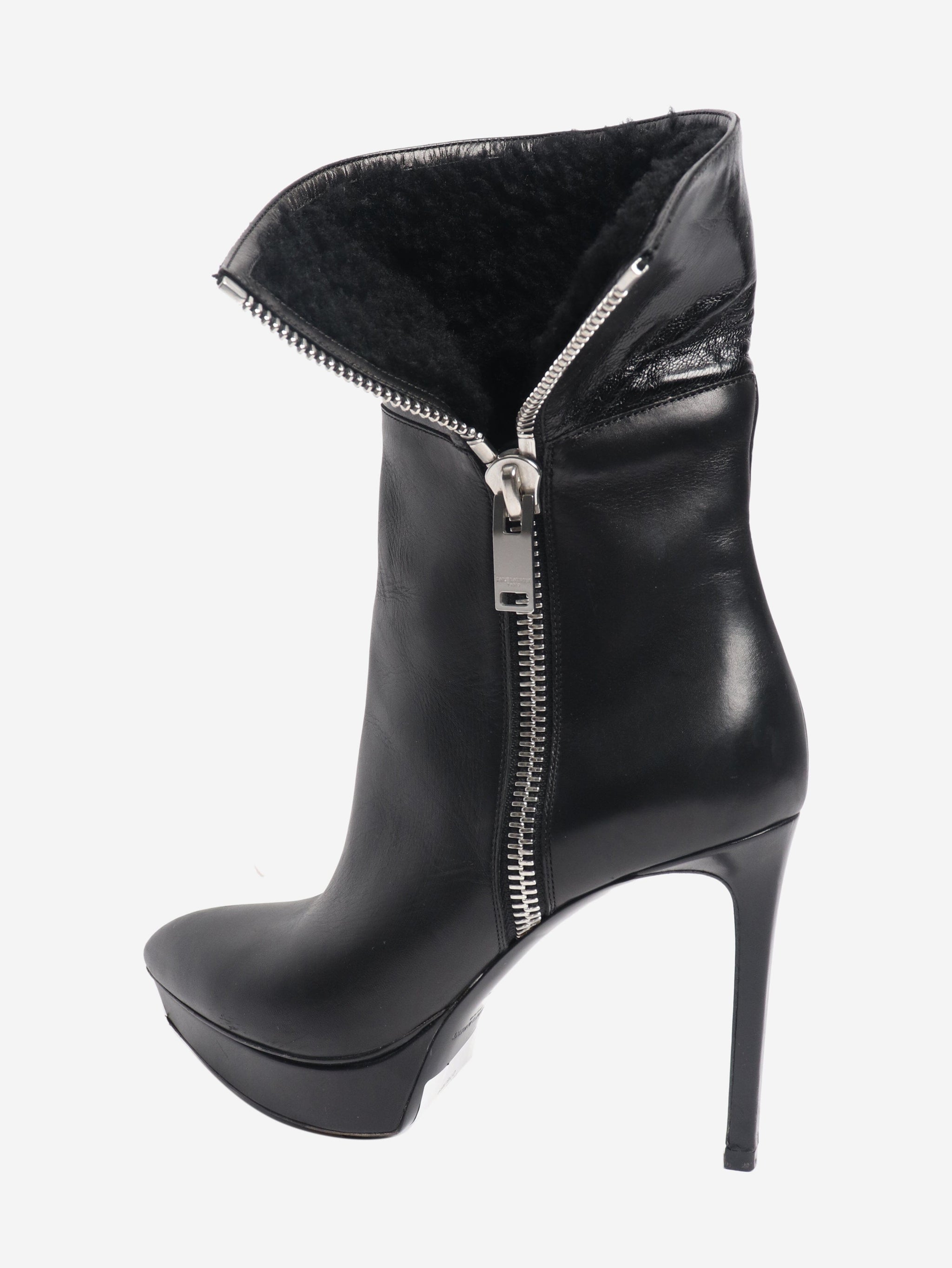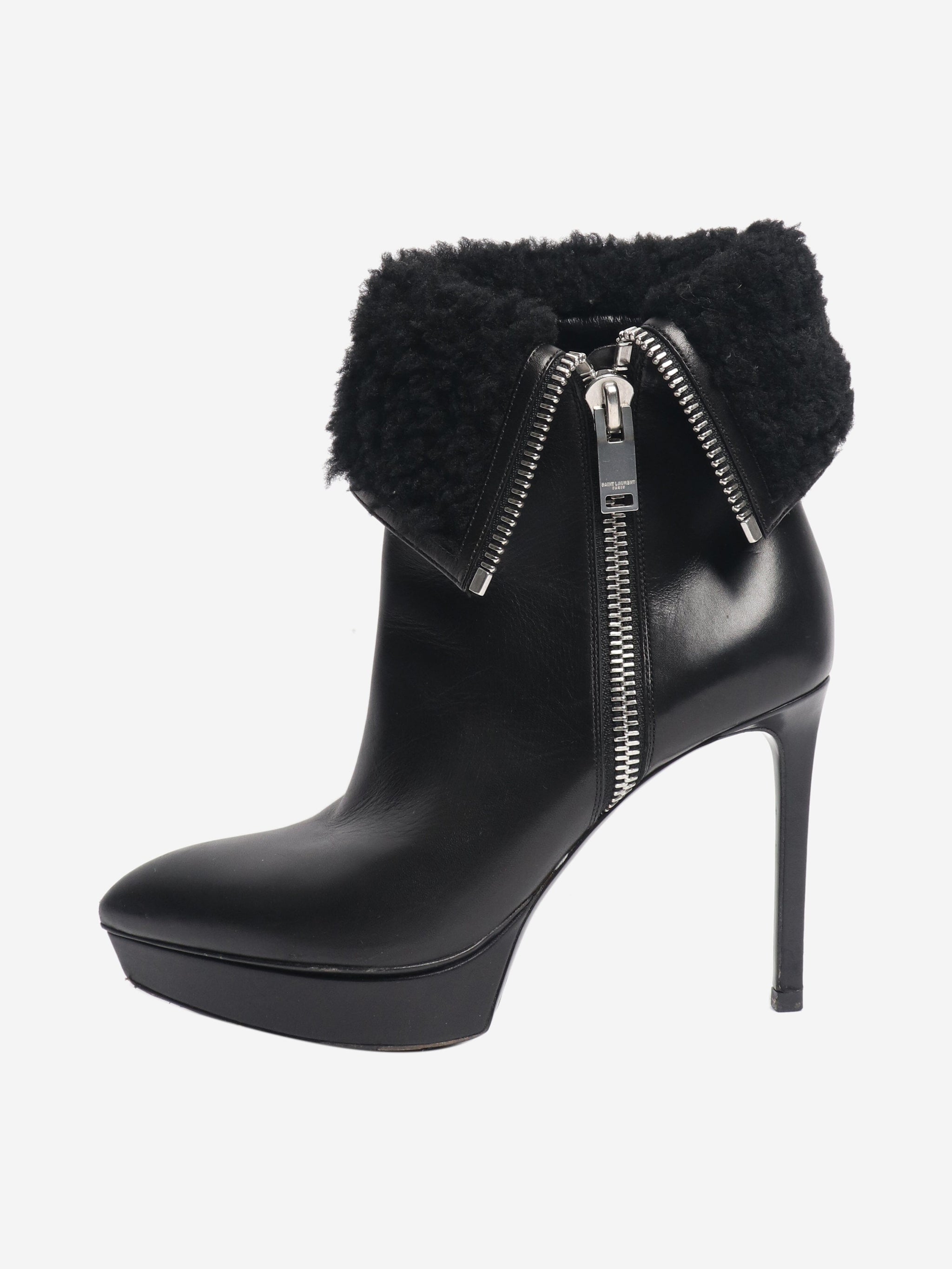 Black leather shearling ankle boots - size EU 36 (UK 3)