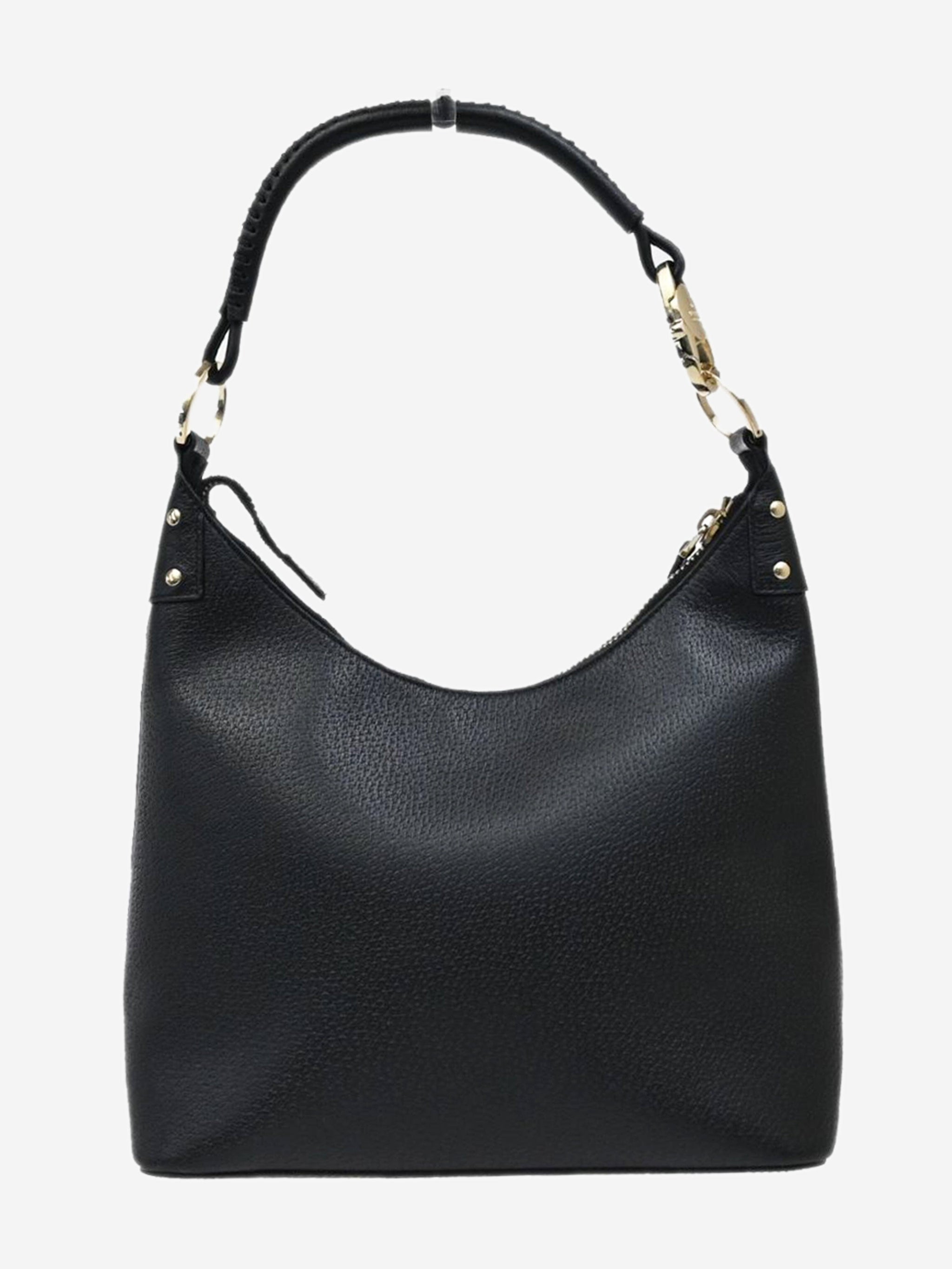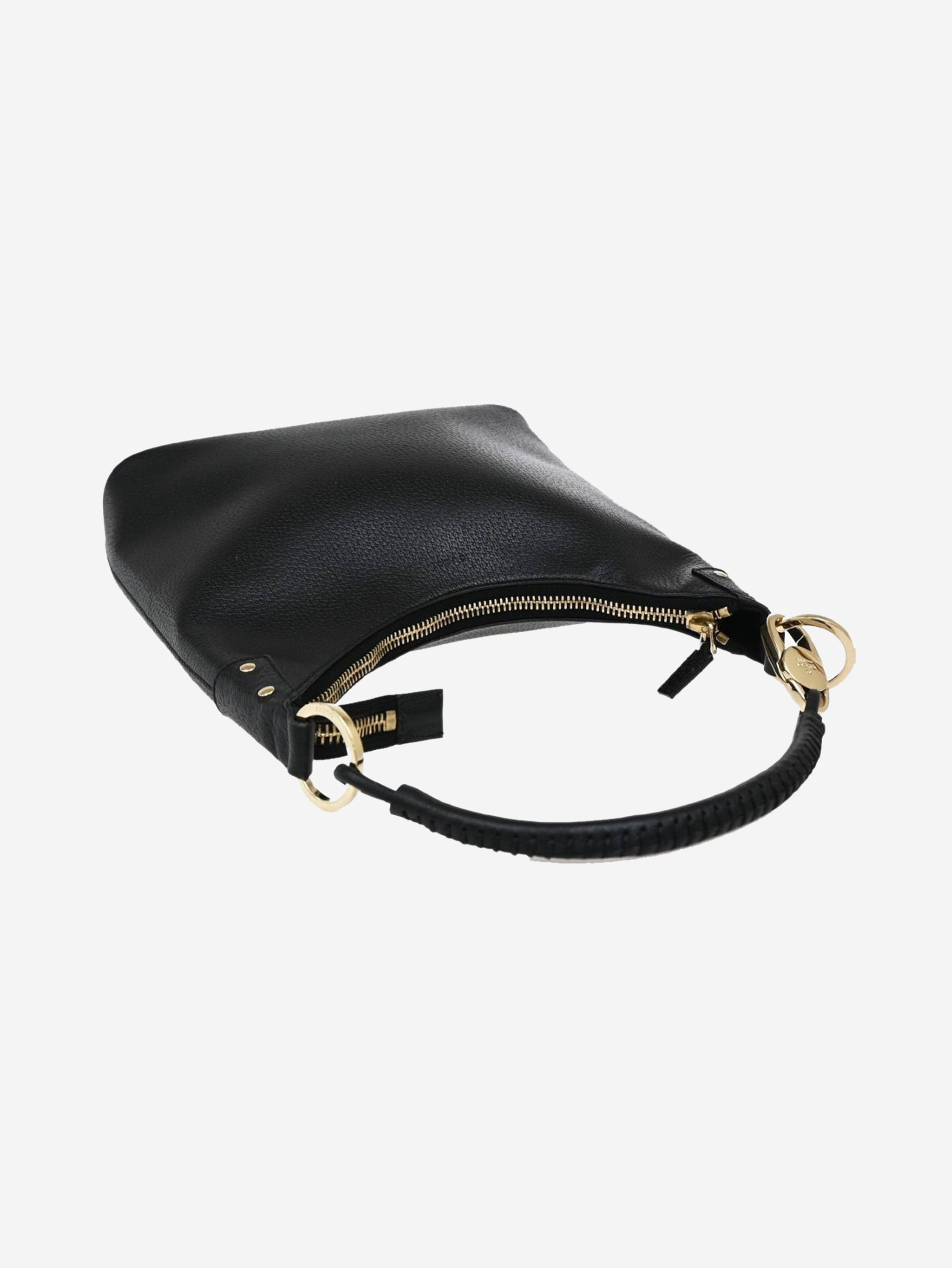 Black leather top handle bag