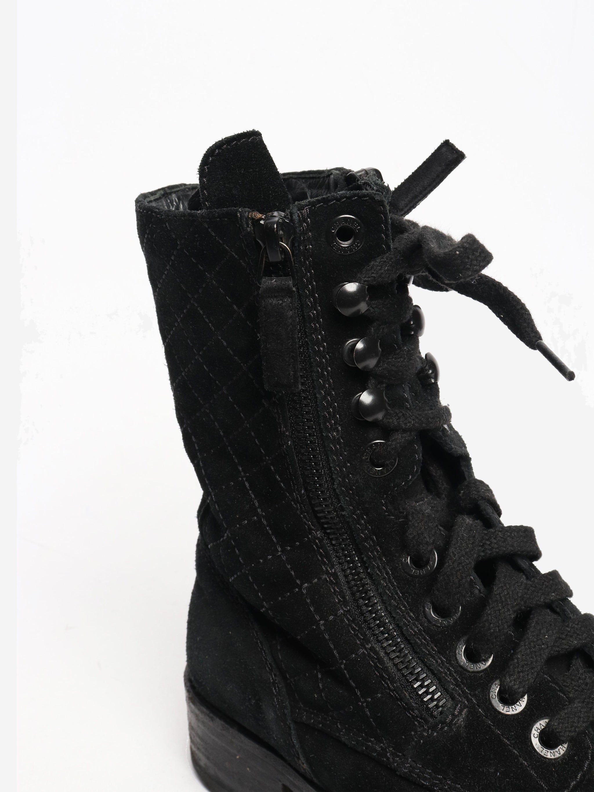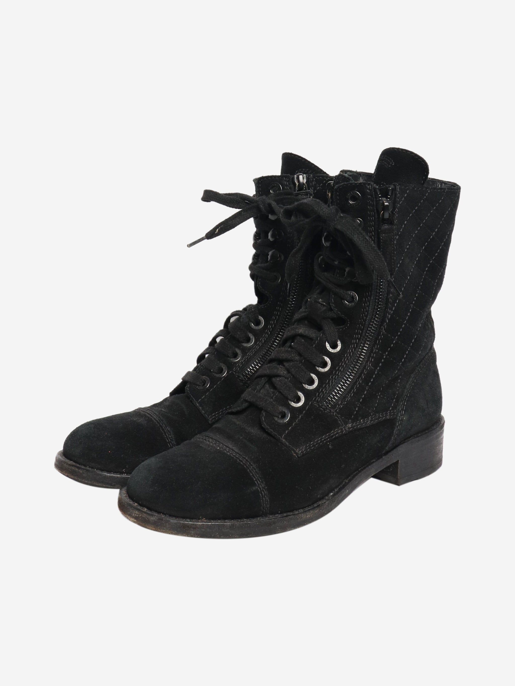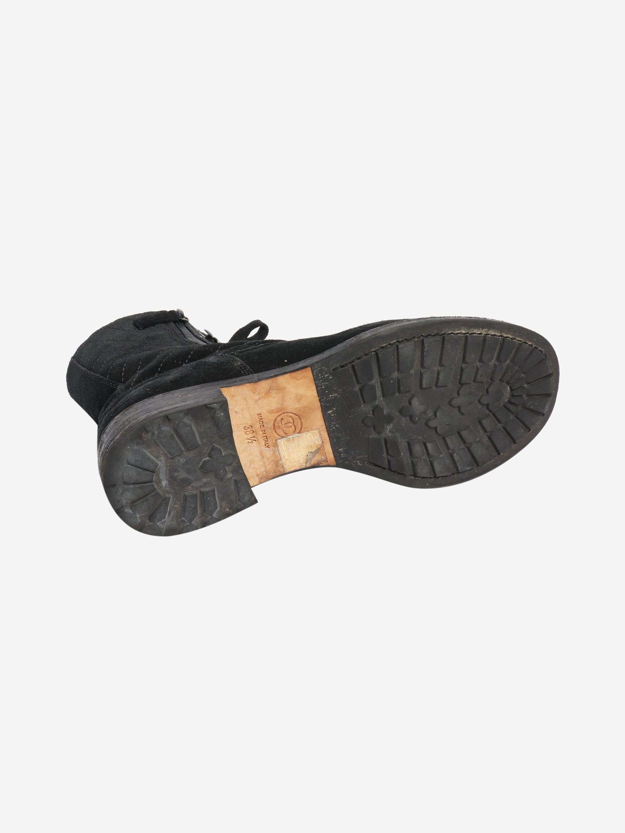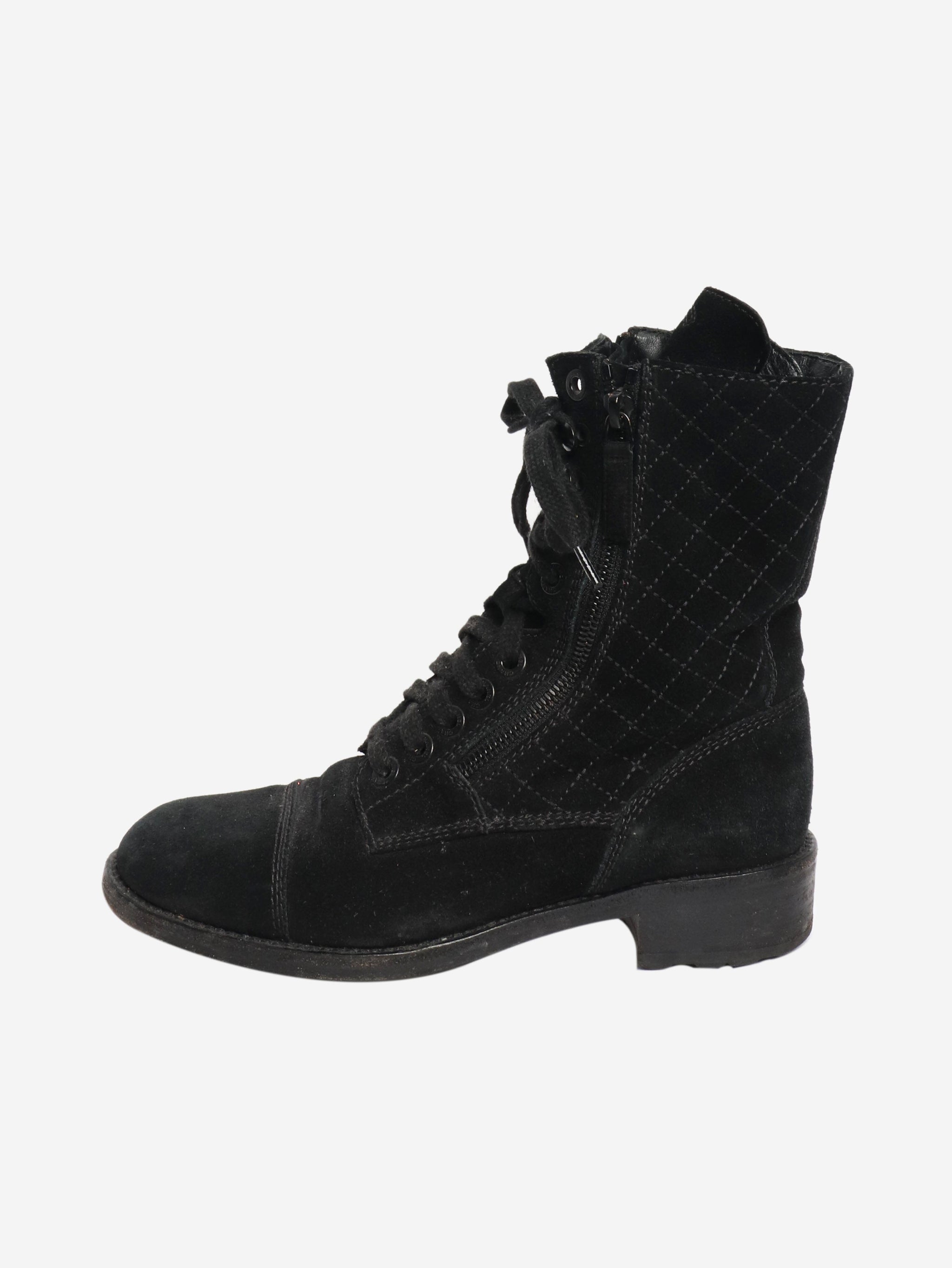 Black suede quilted combat boots - size EU 38.5 (UK 5.5)