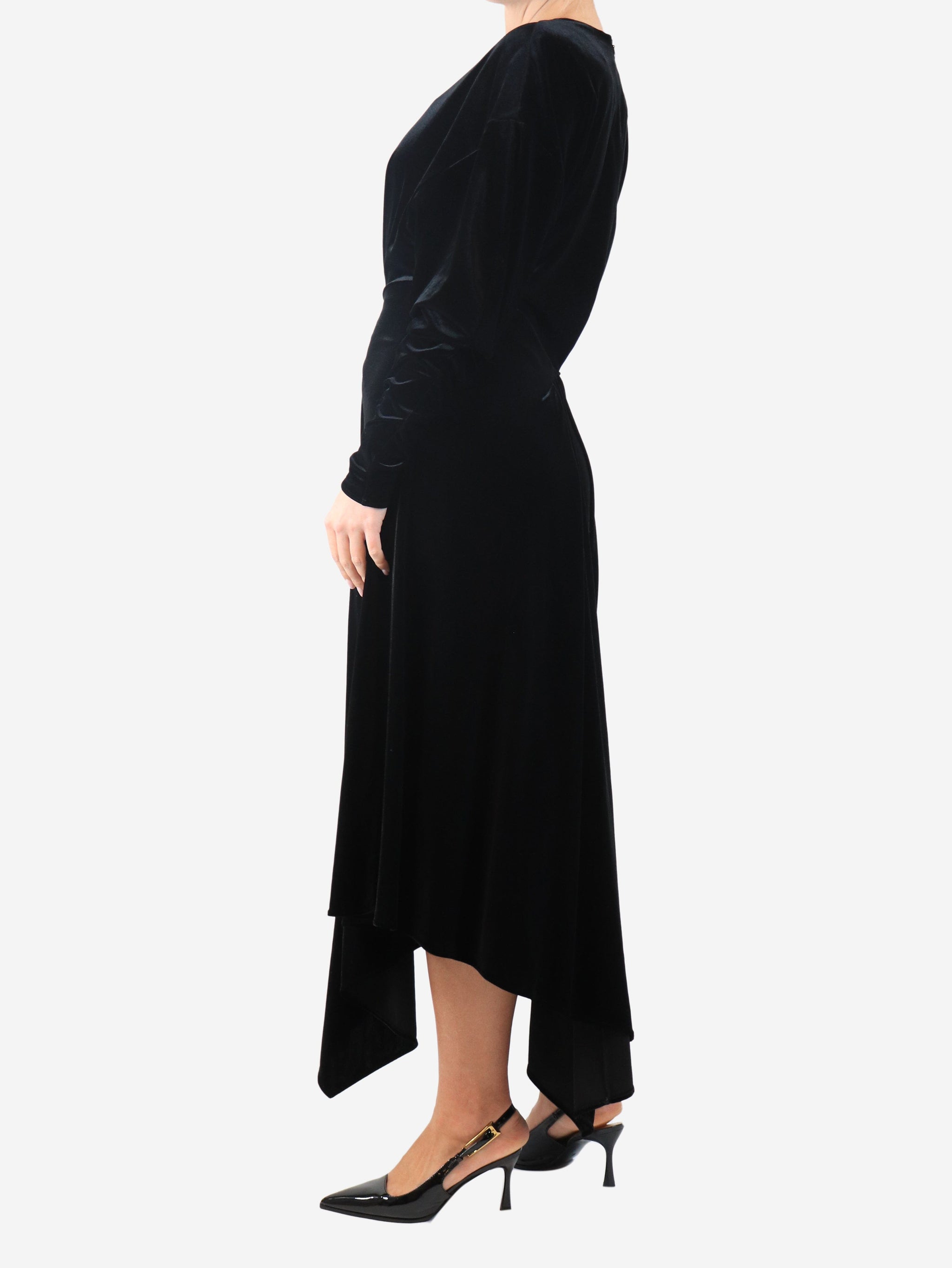 Black velvet long-sleeve maxi dress - size UK 10