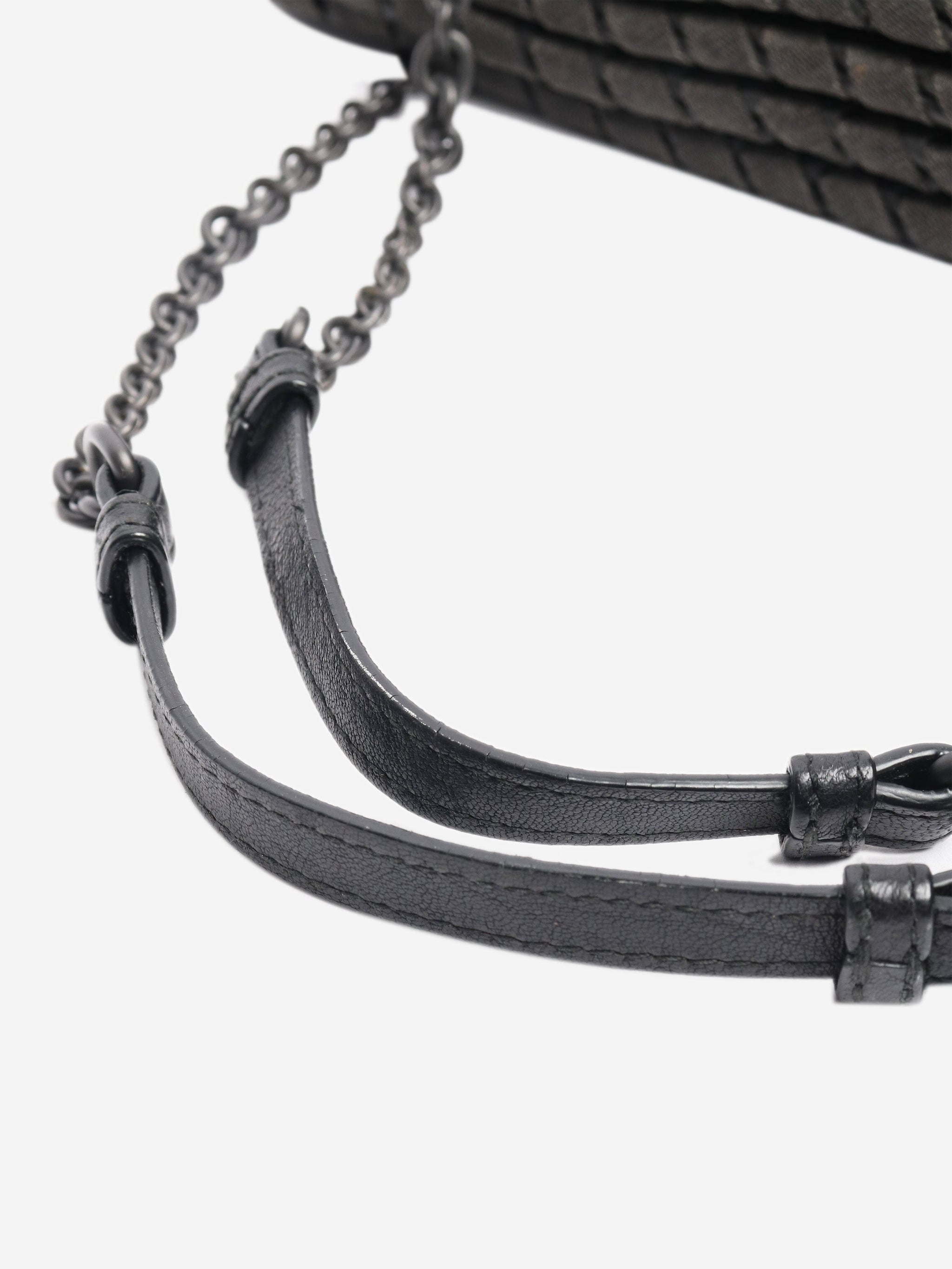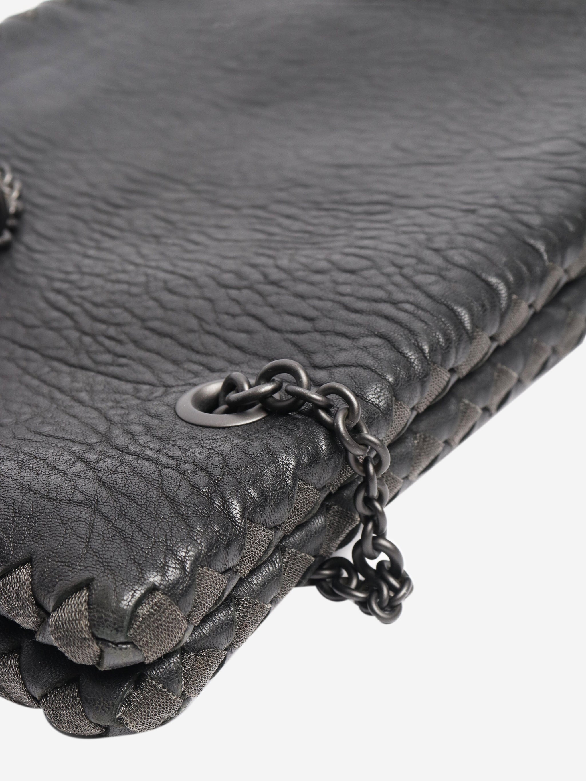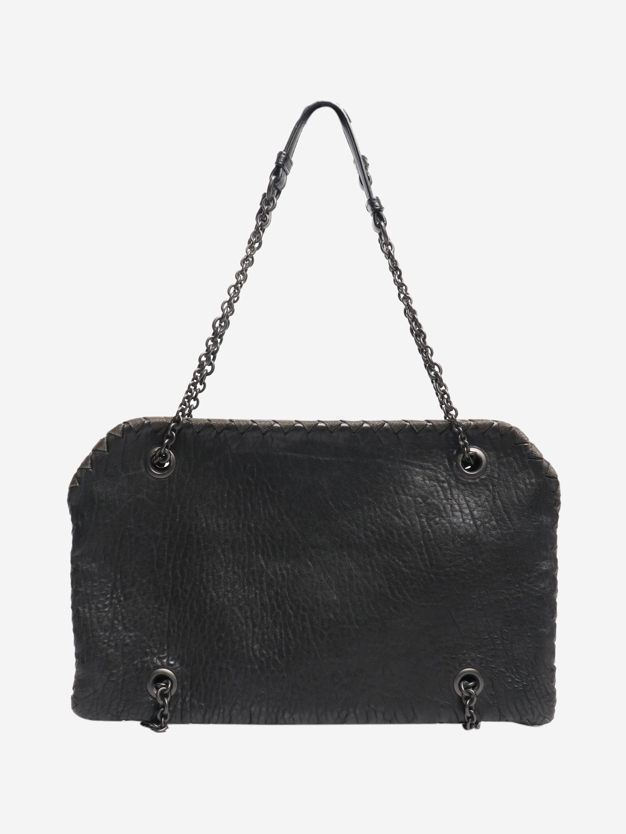 Black pebbled leather chain bag