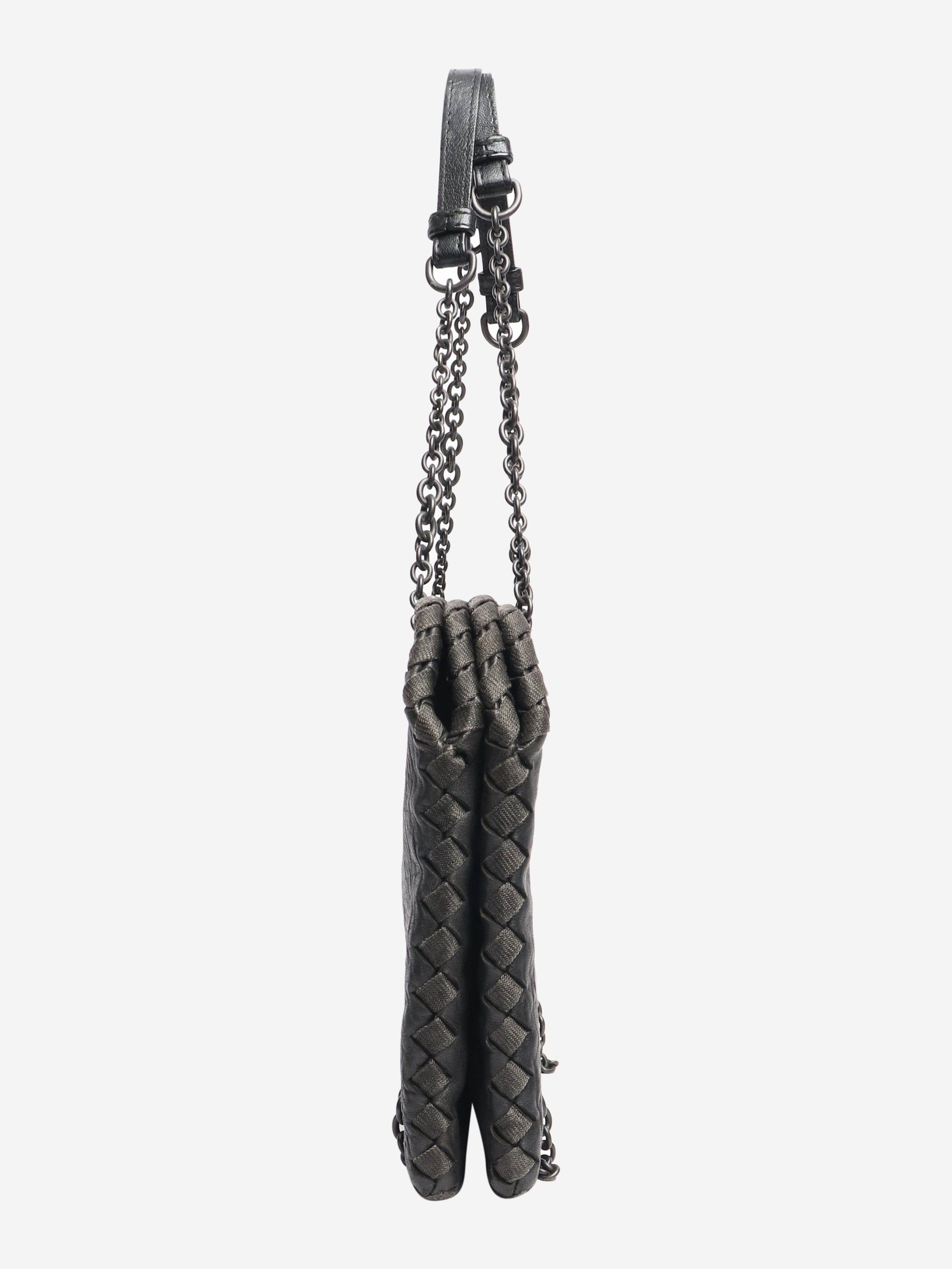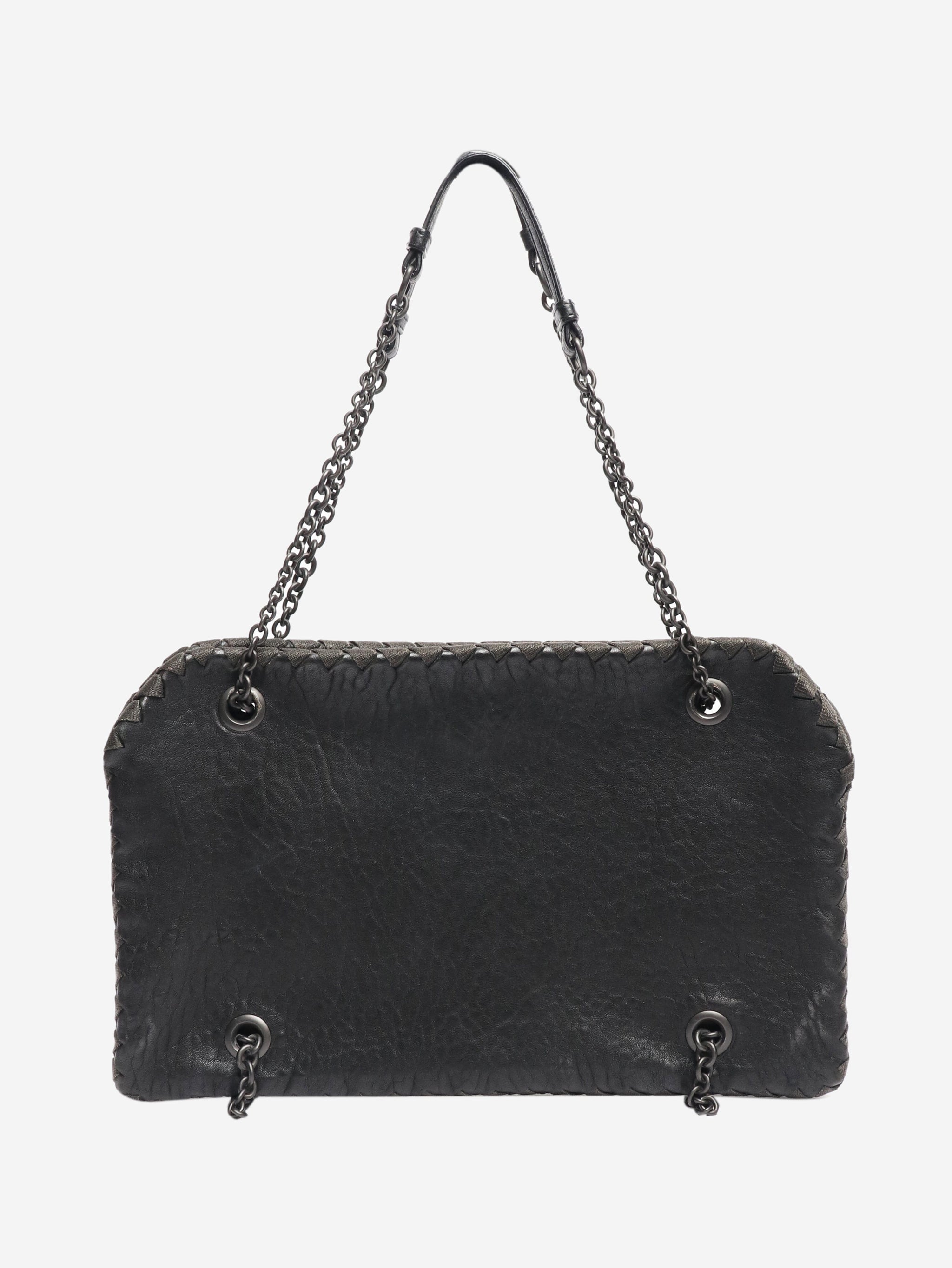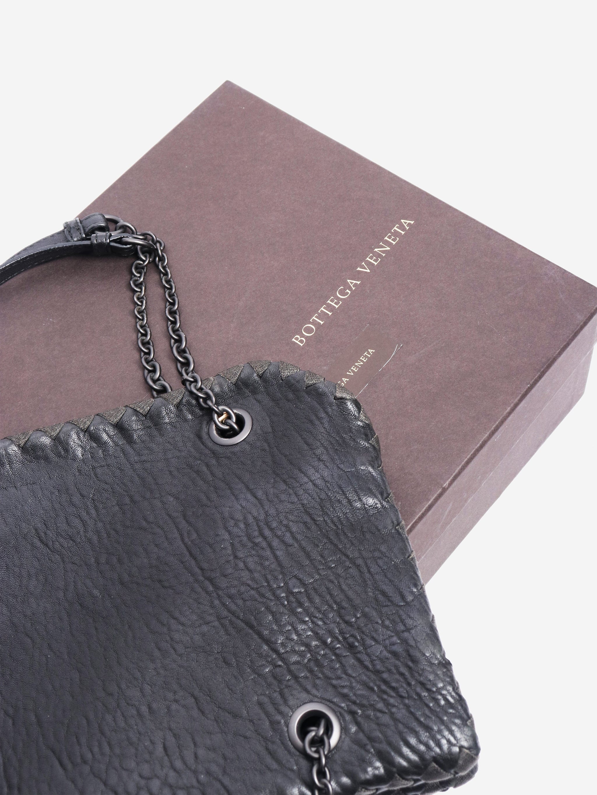 Black pebbled leather chain bag