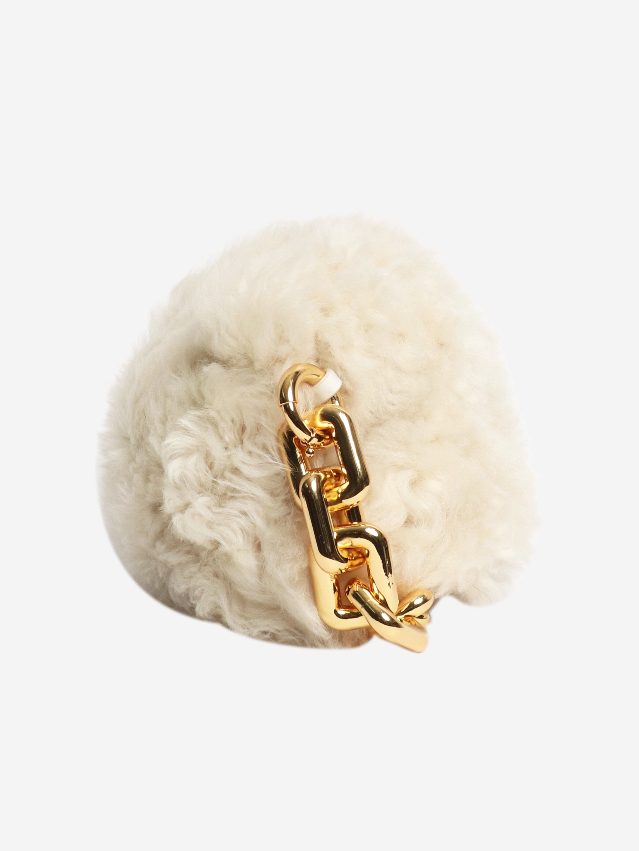 Cream shearling bag with gold chain