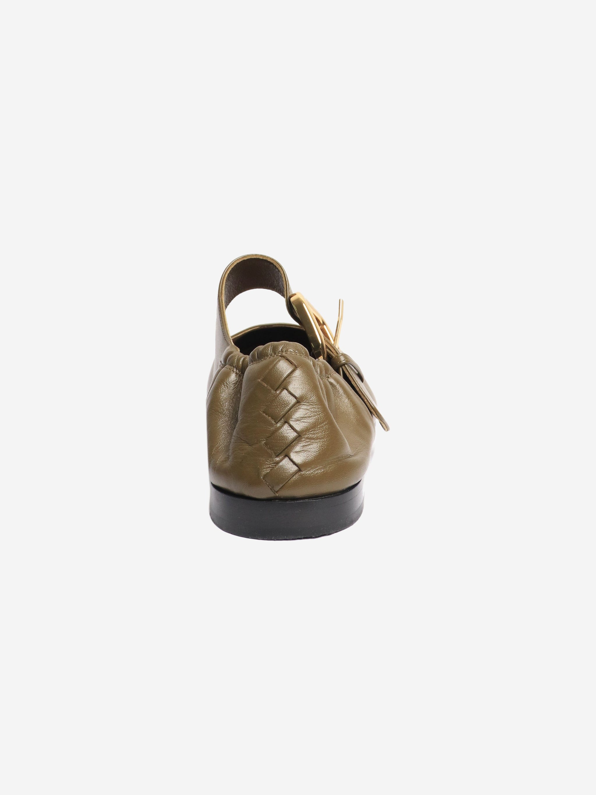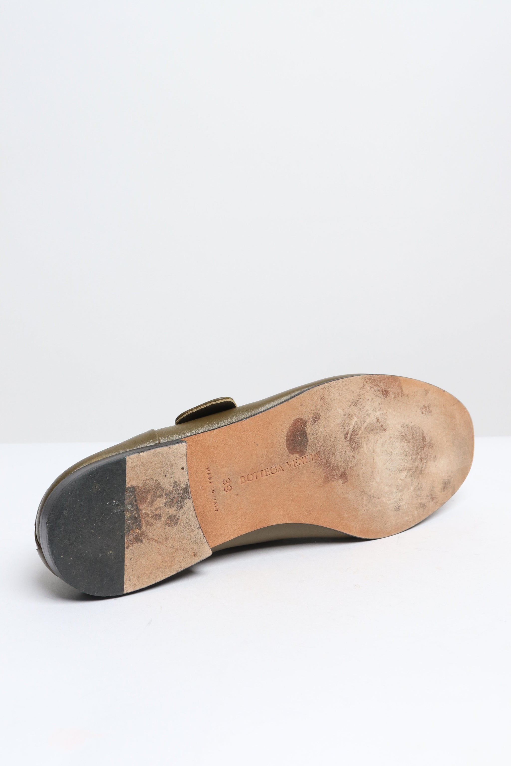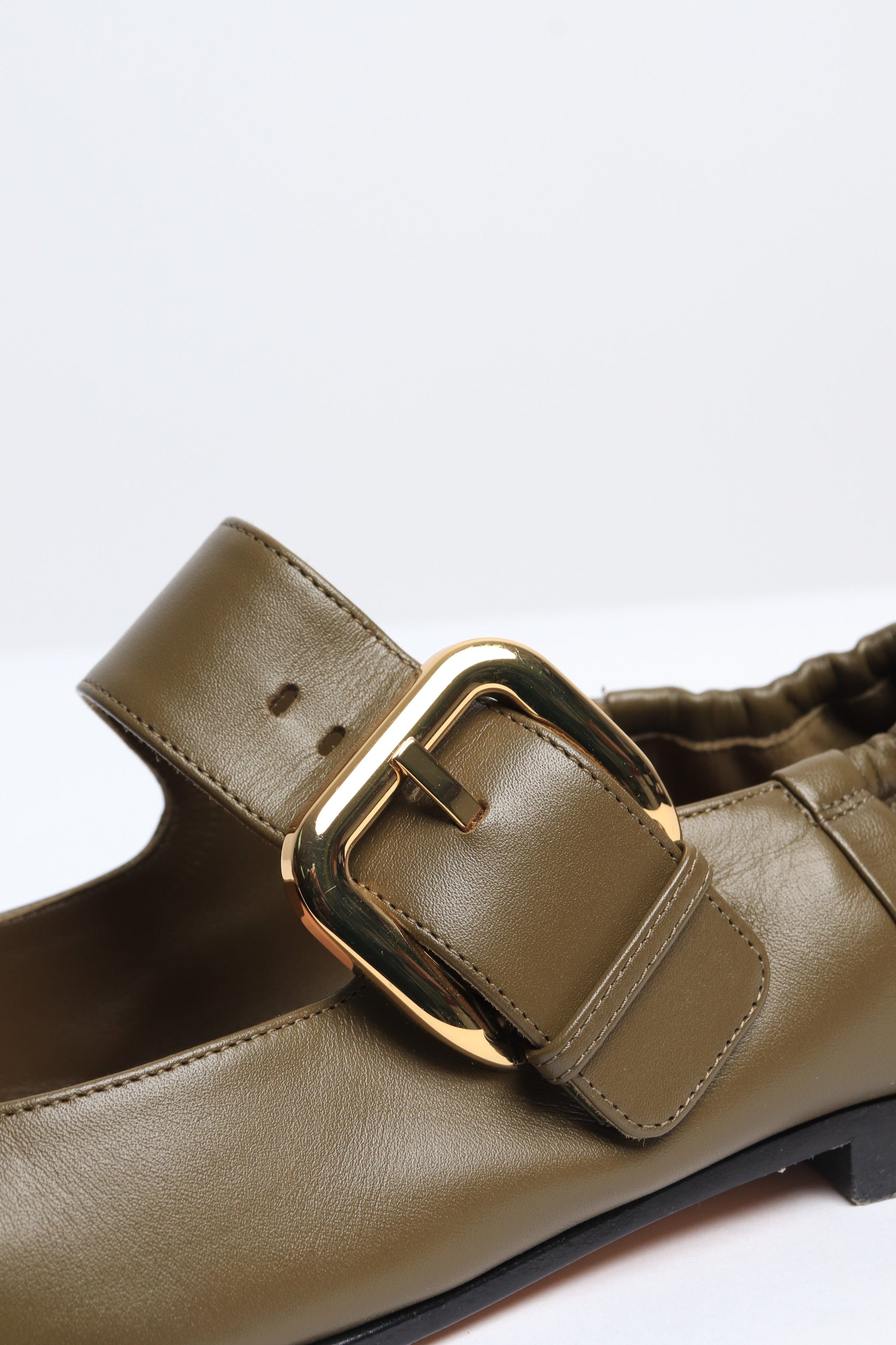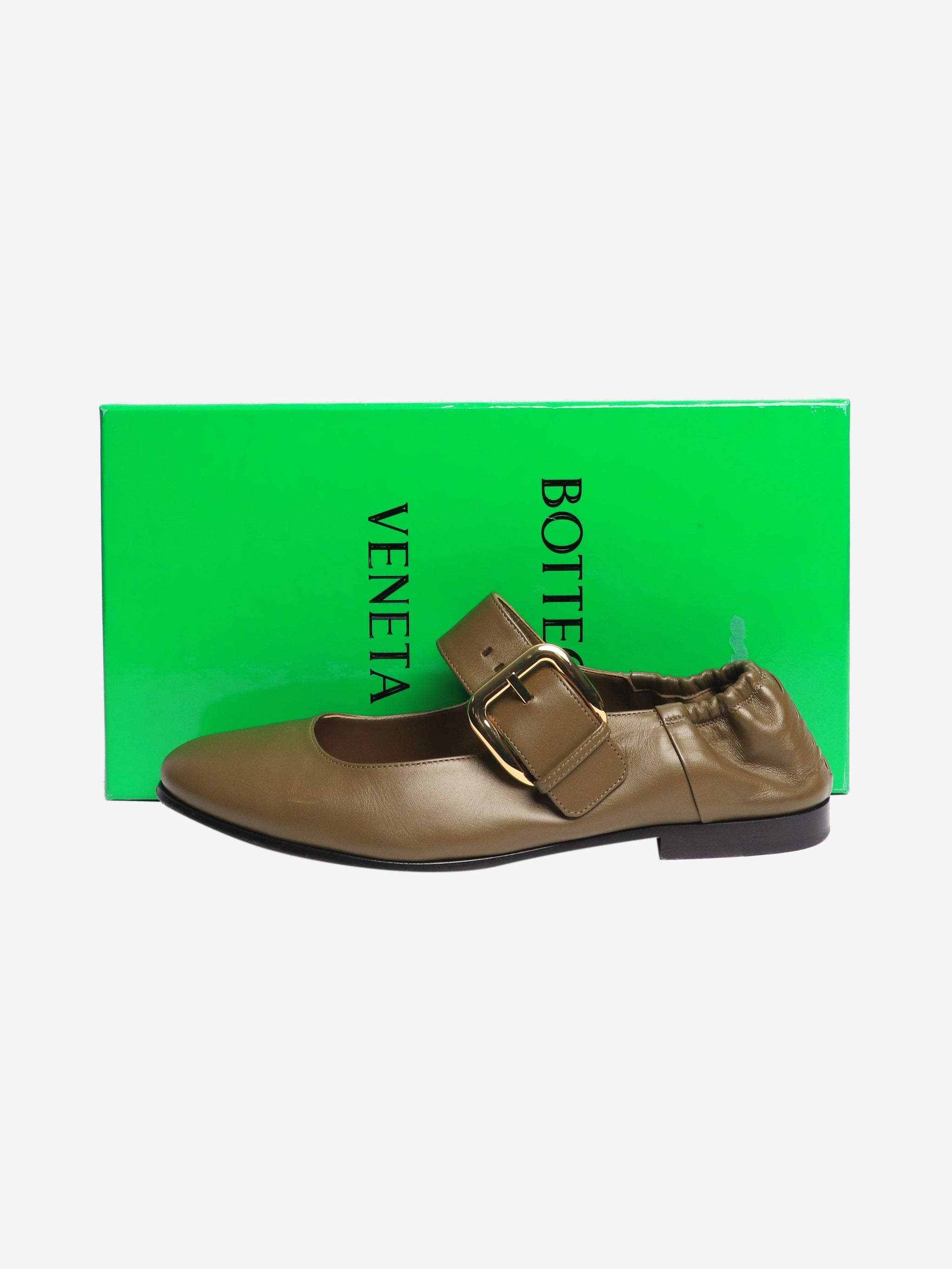 Khaki Astaire leather Mary Jane flats - size EU 39