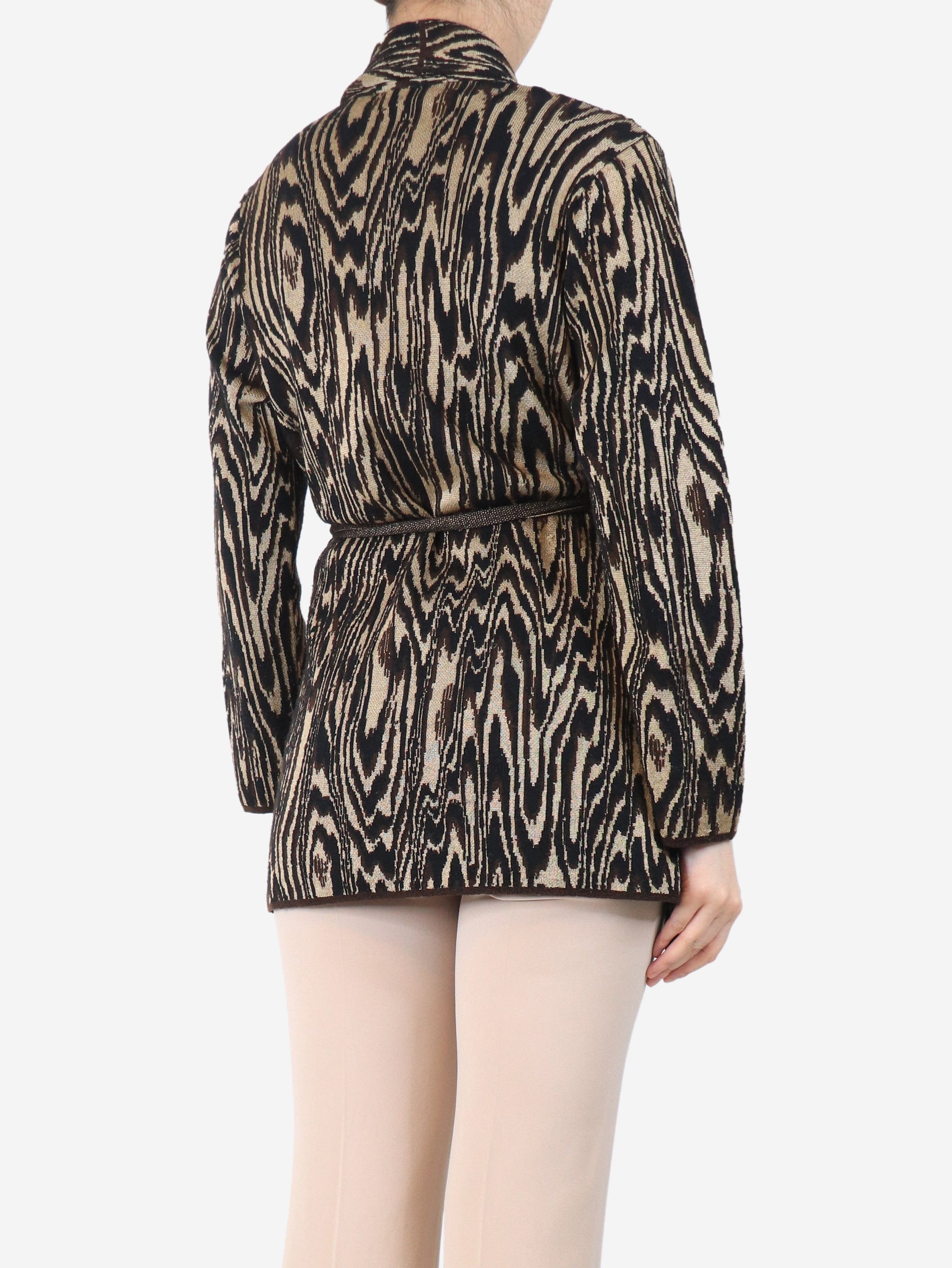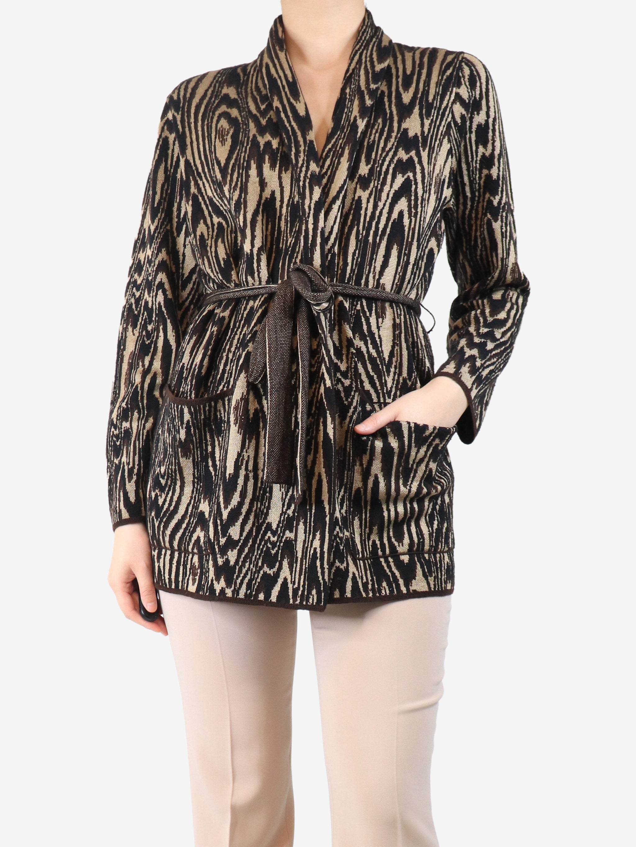 Brown belted knit cardigan - size UK 10