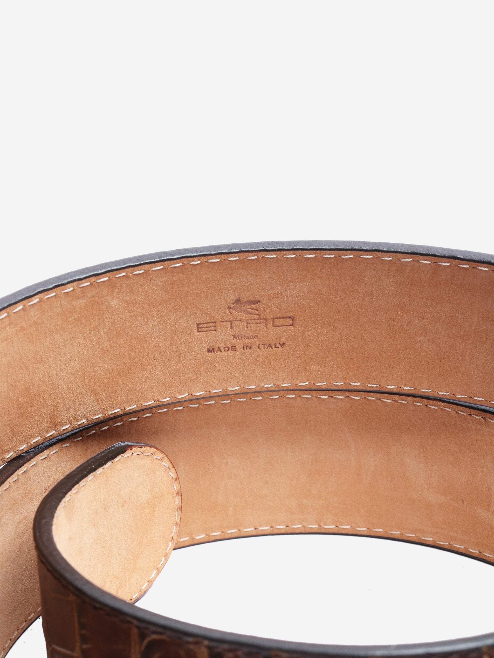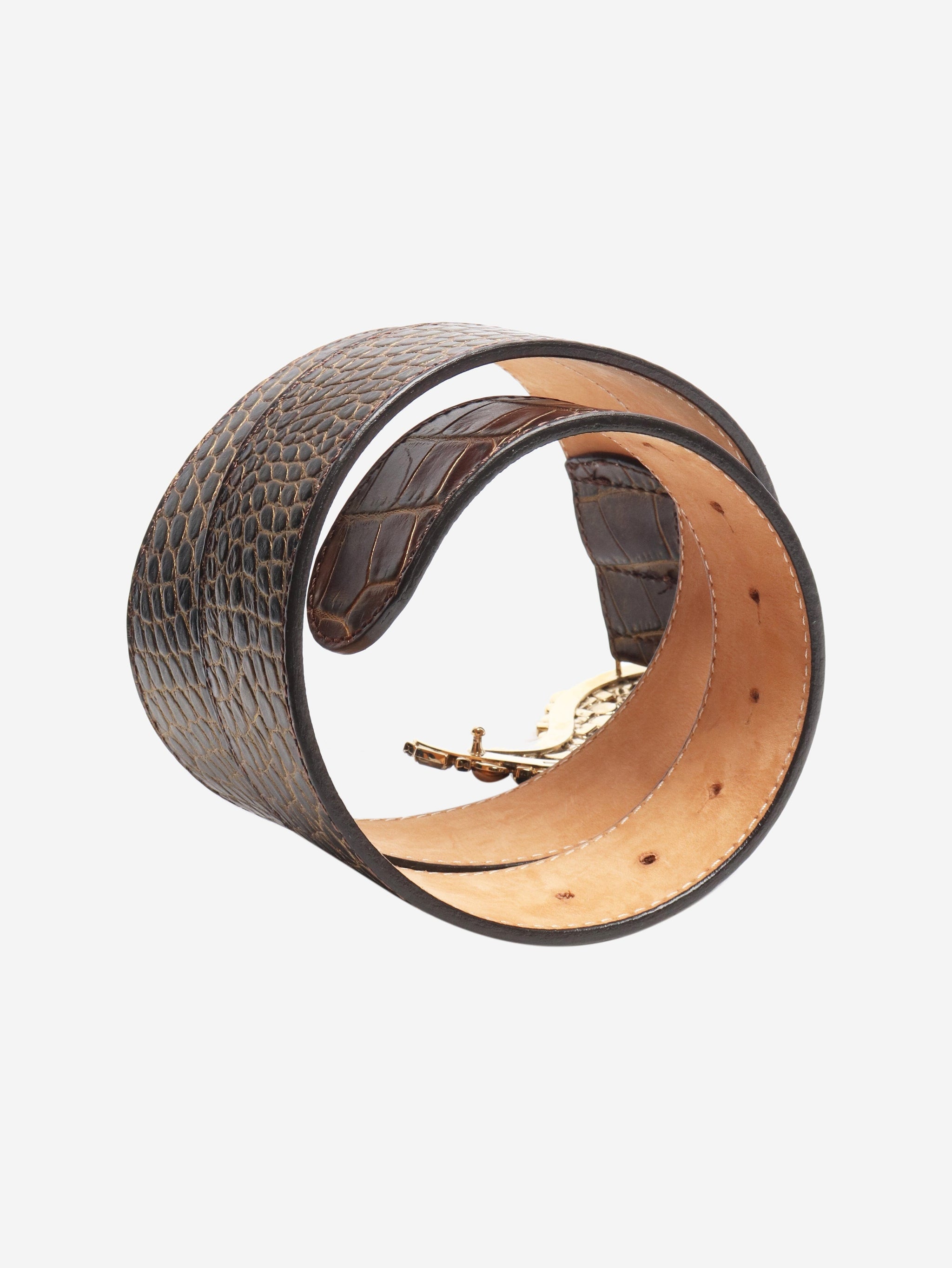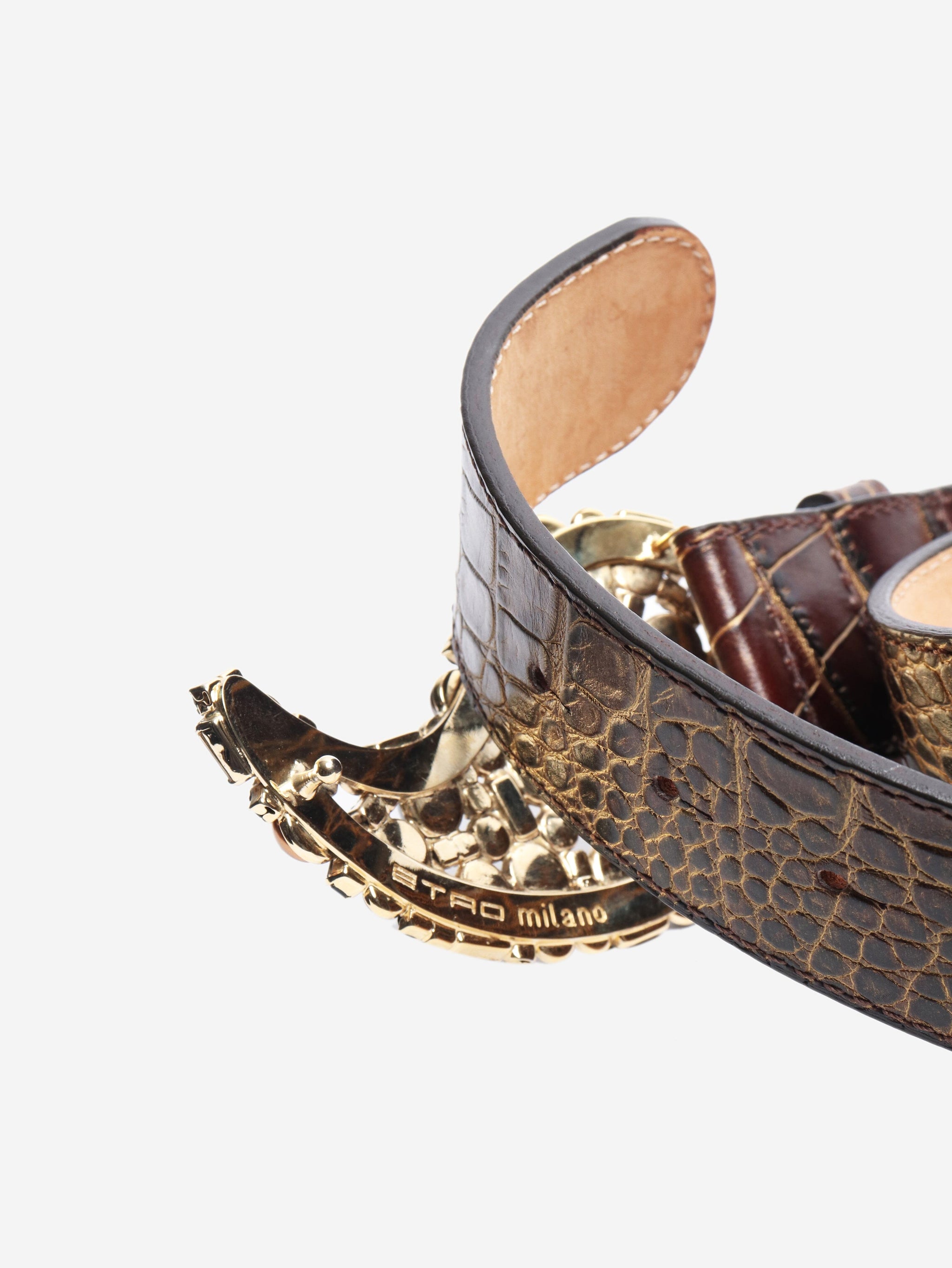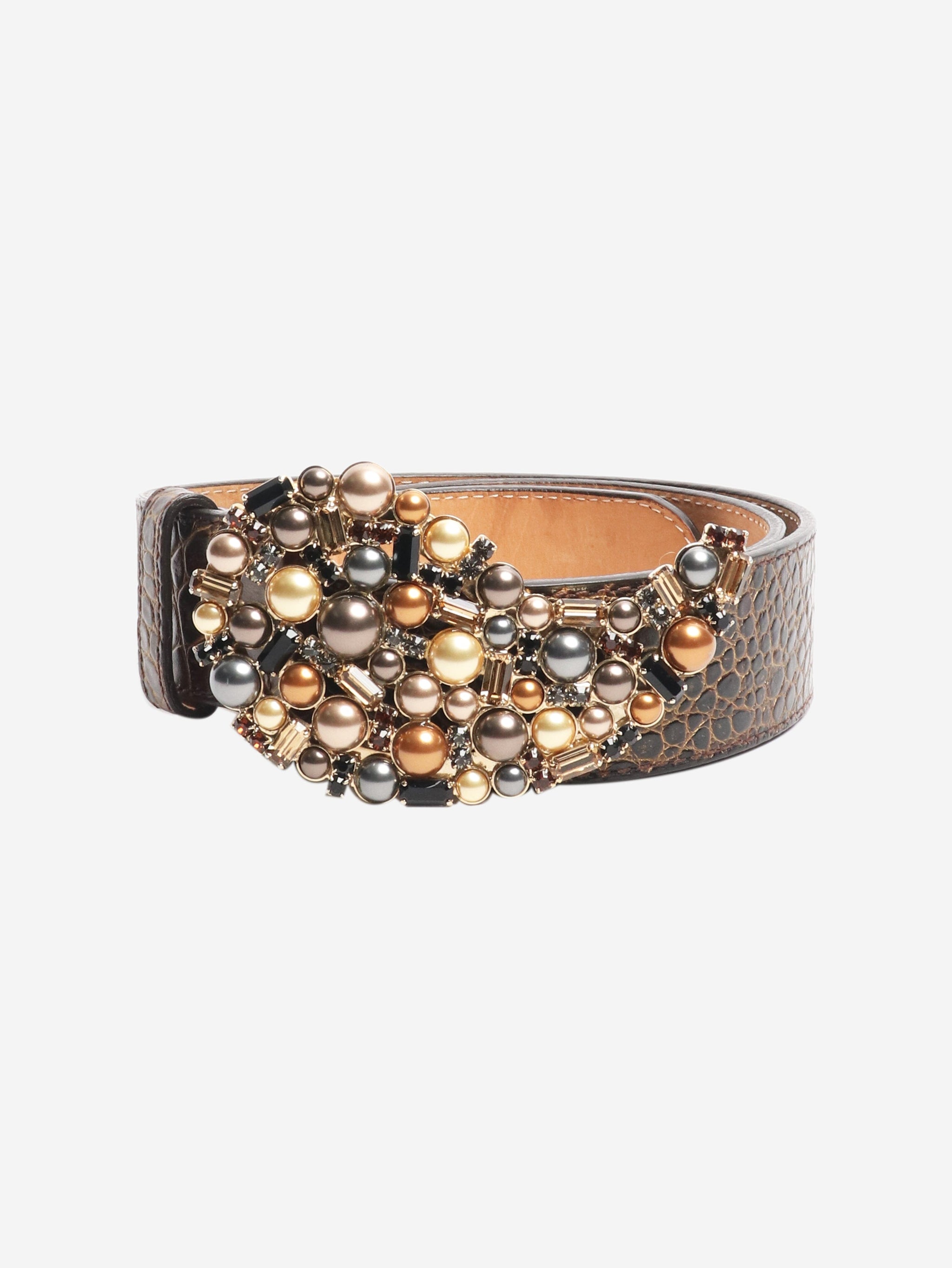 Brown Embellished croc effect belt