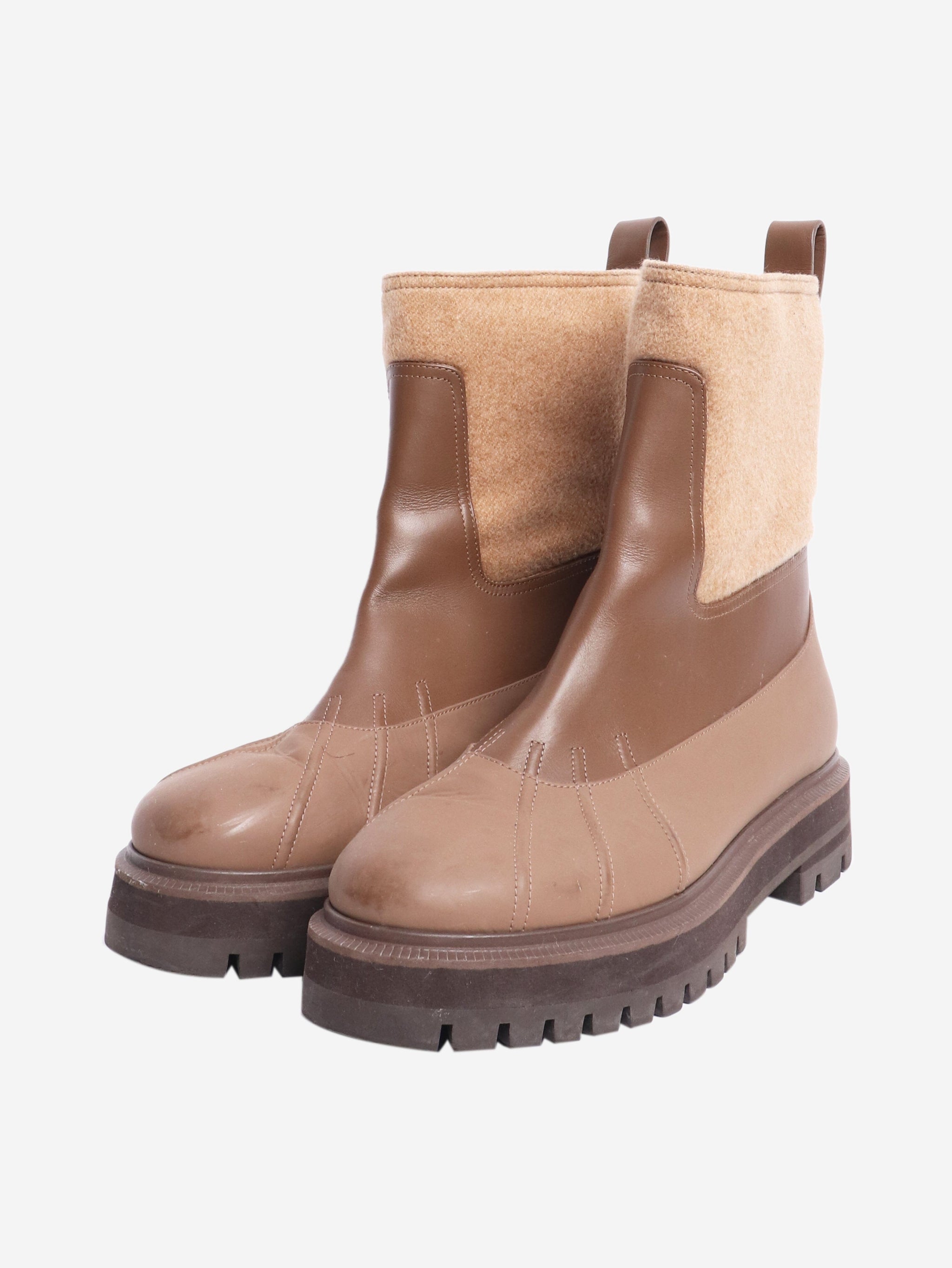 Brown leather and cashmere boots - size EU 38 (UK 5)