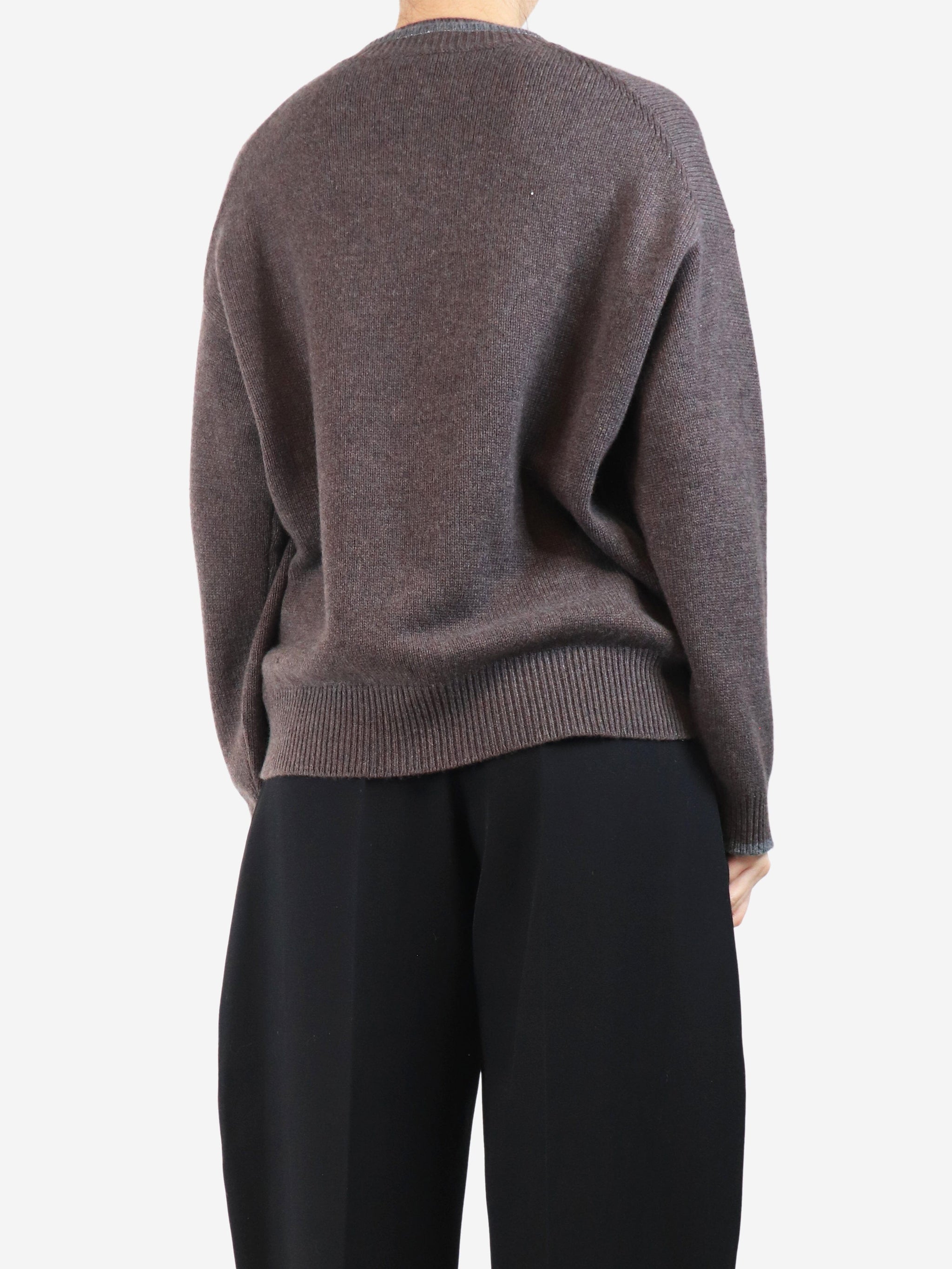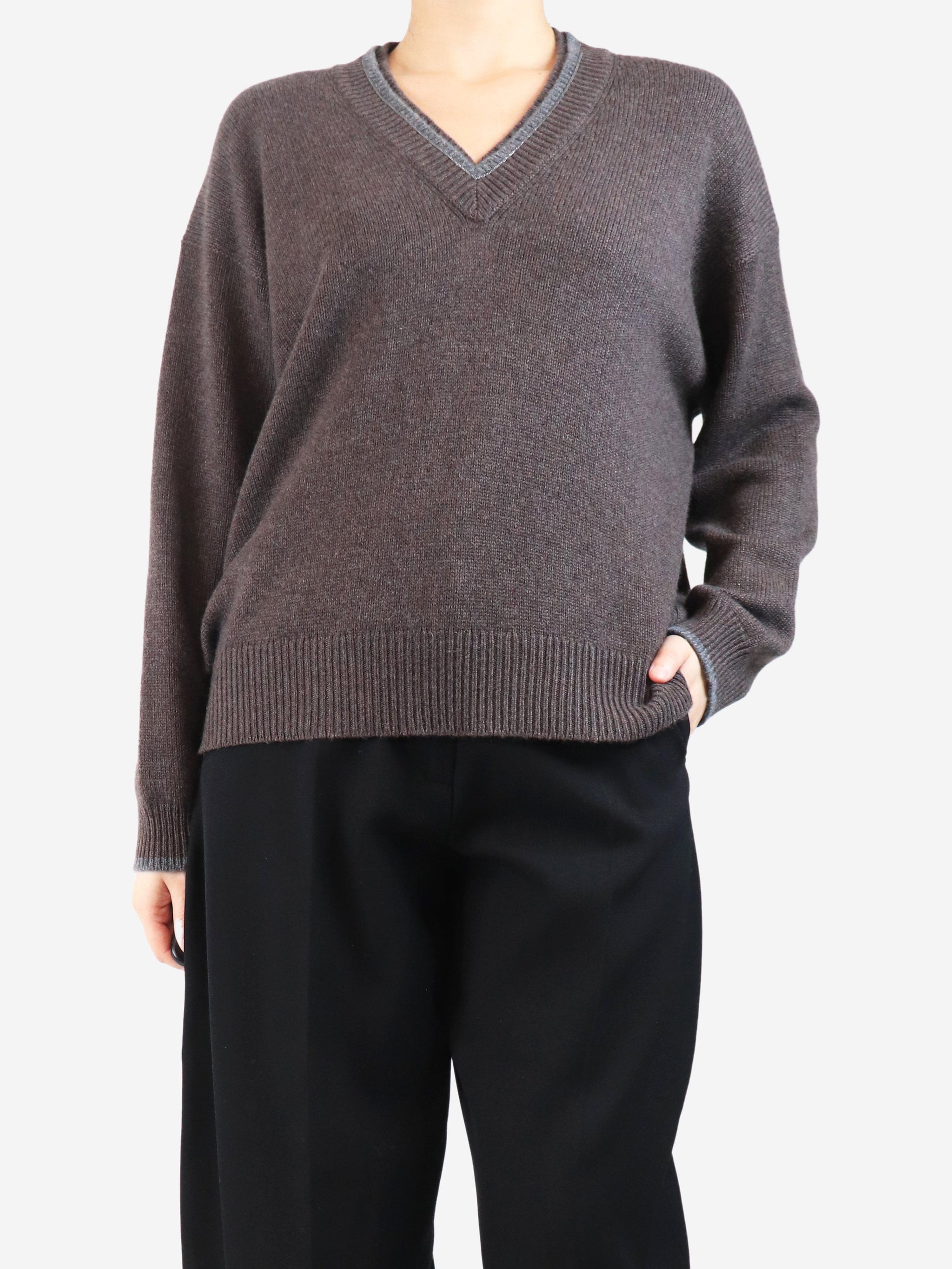 Brown double v-neck cashmere jumper - size M