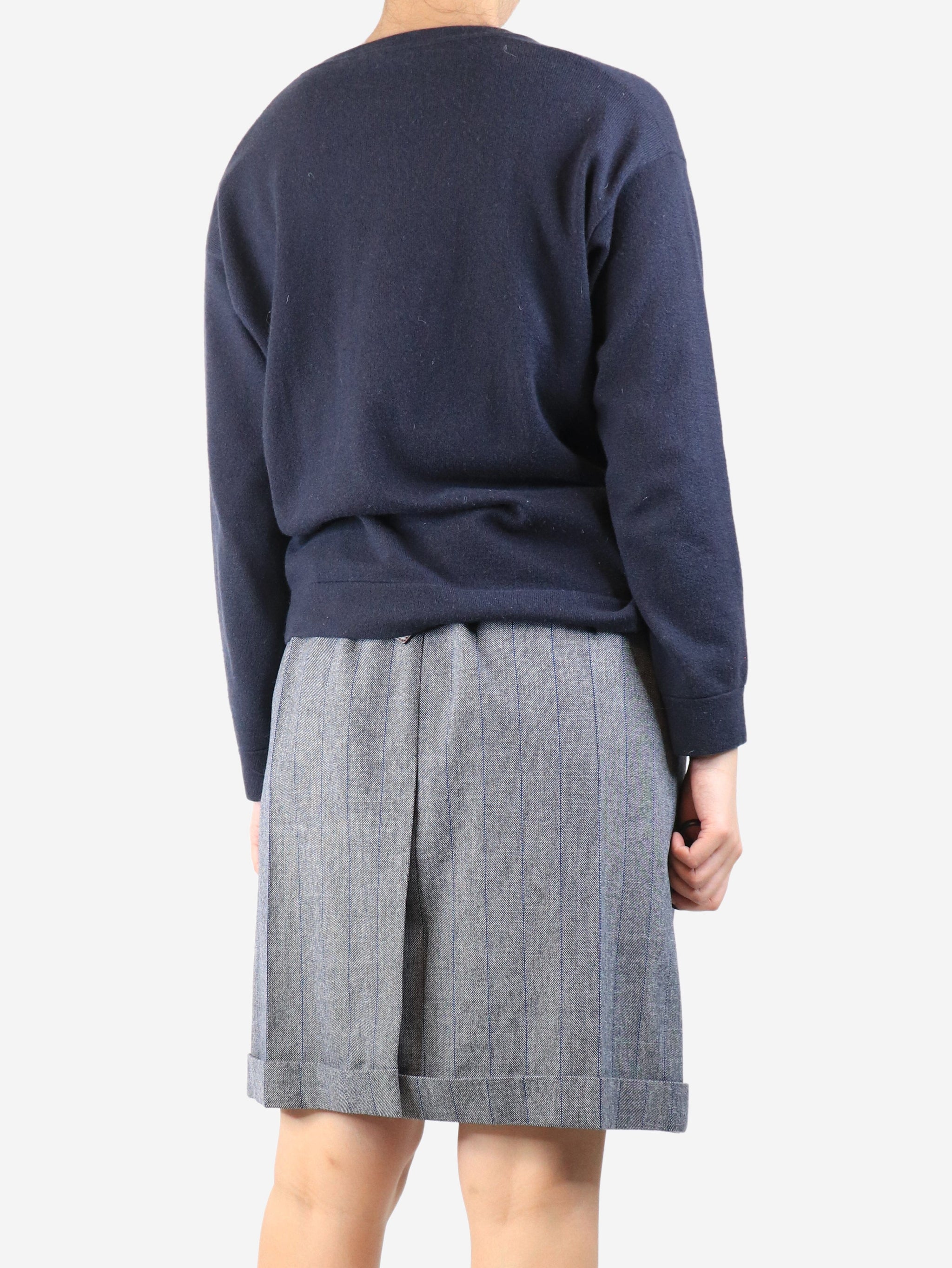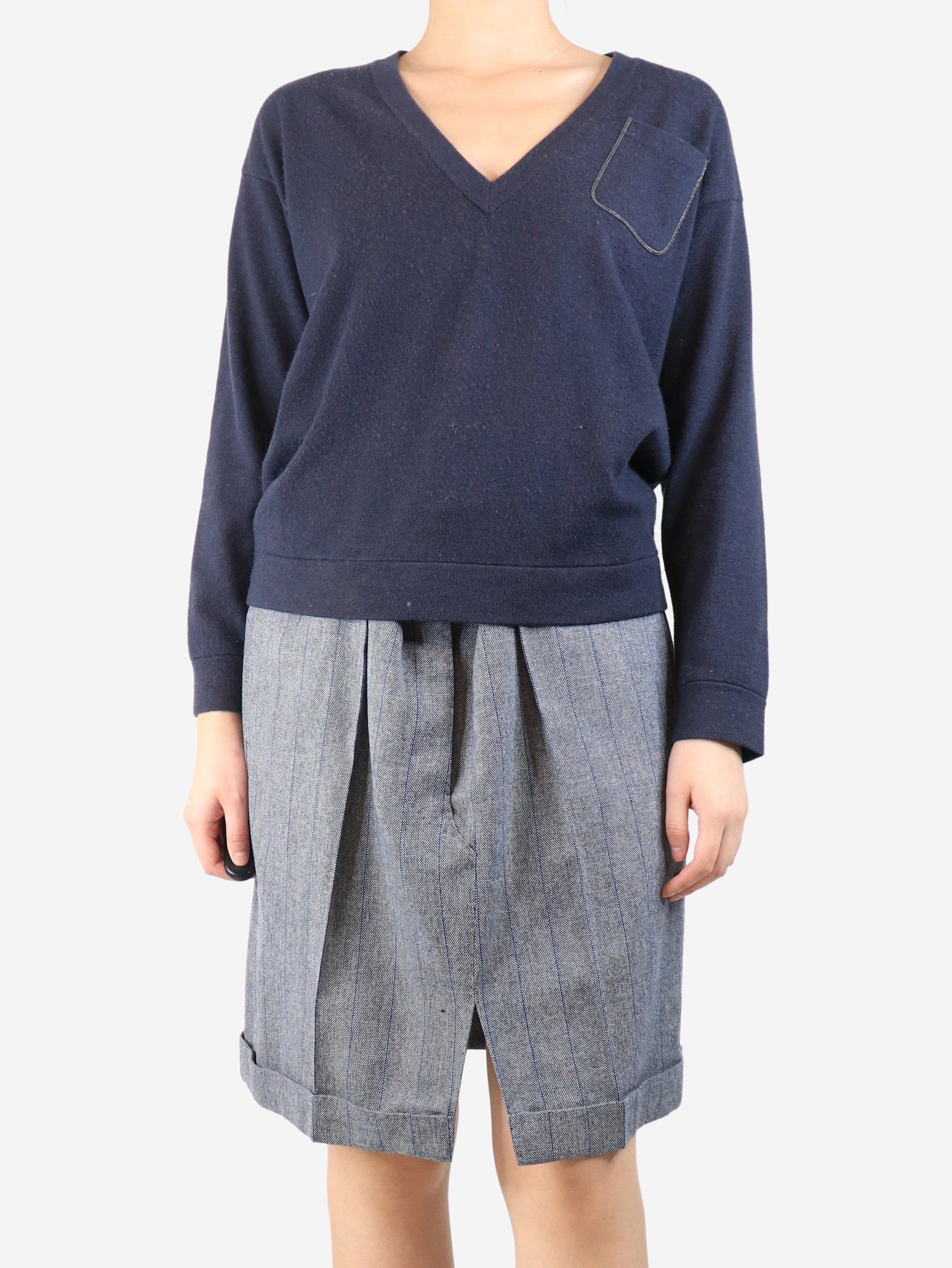 Dark blue cashmere v-neck pocket jumper - size M