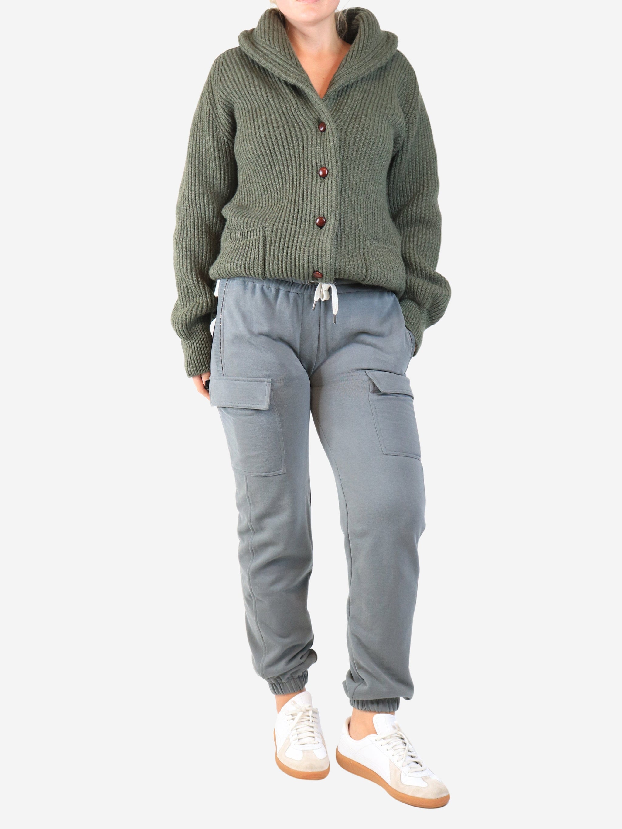 Grey cuffed cargo joggers - size S