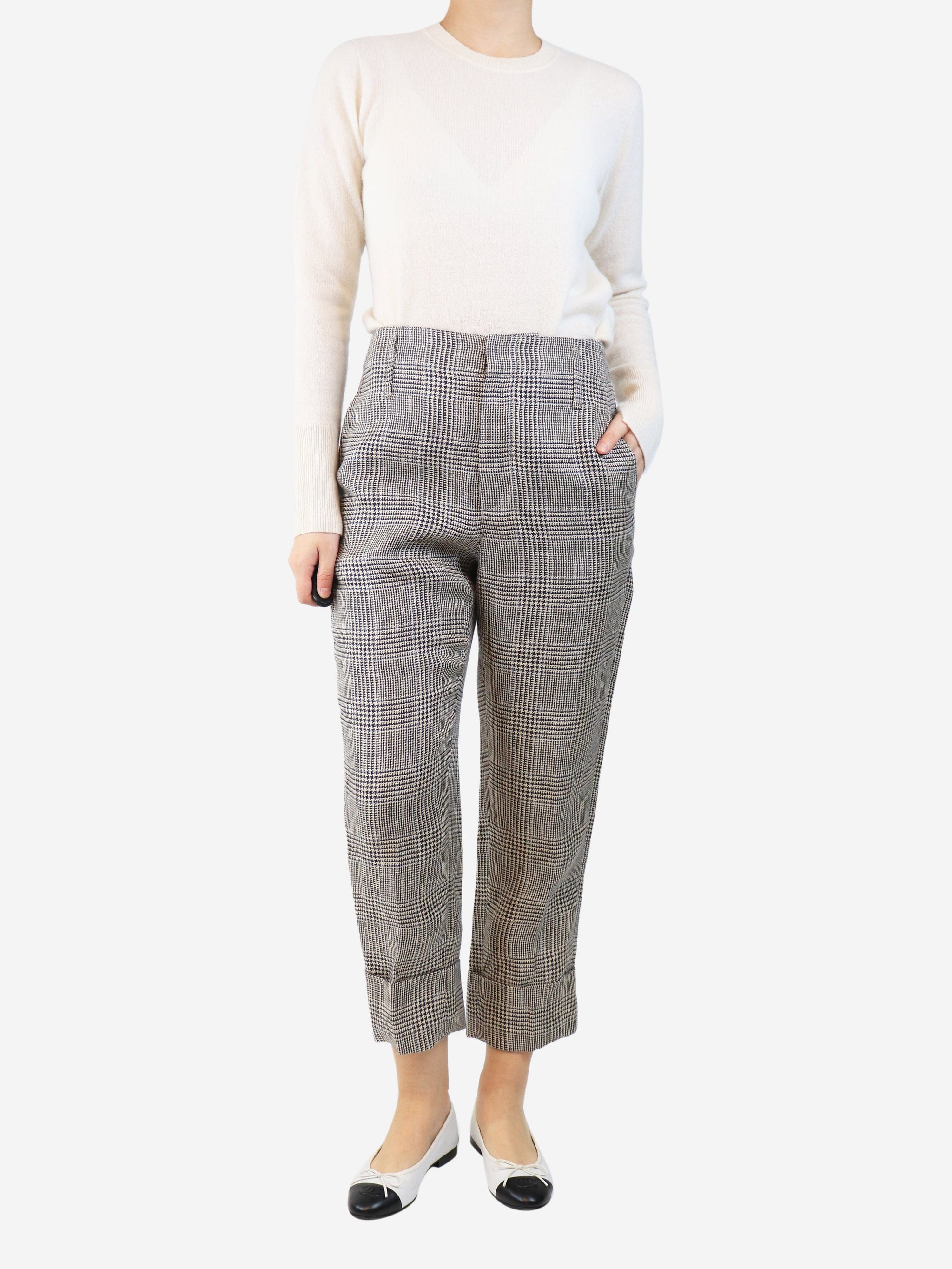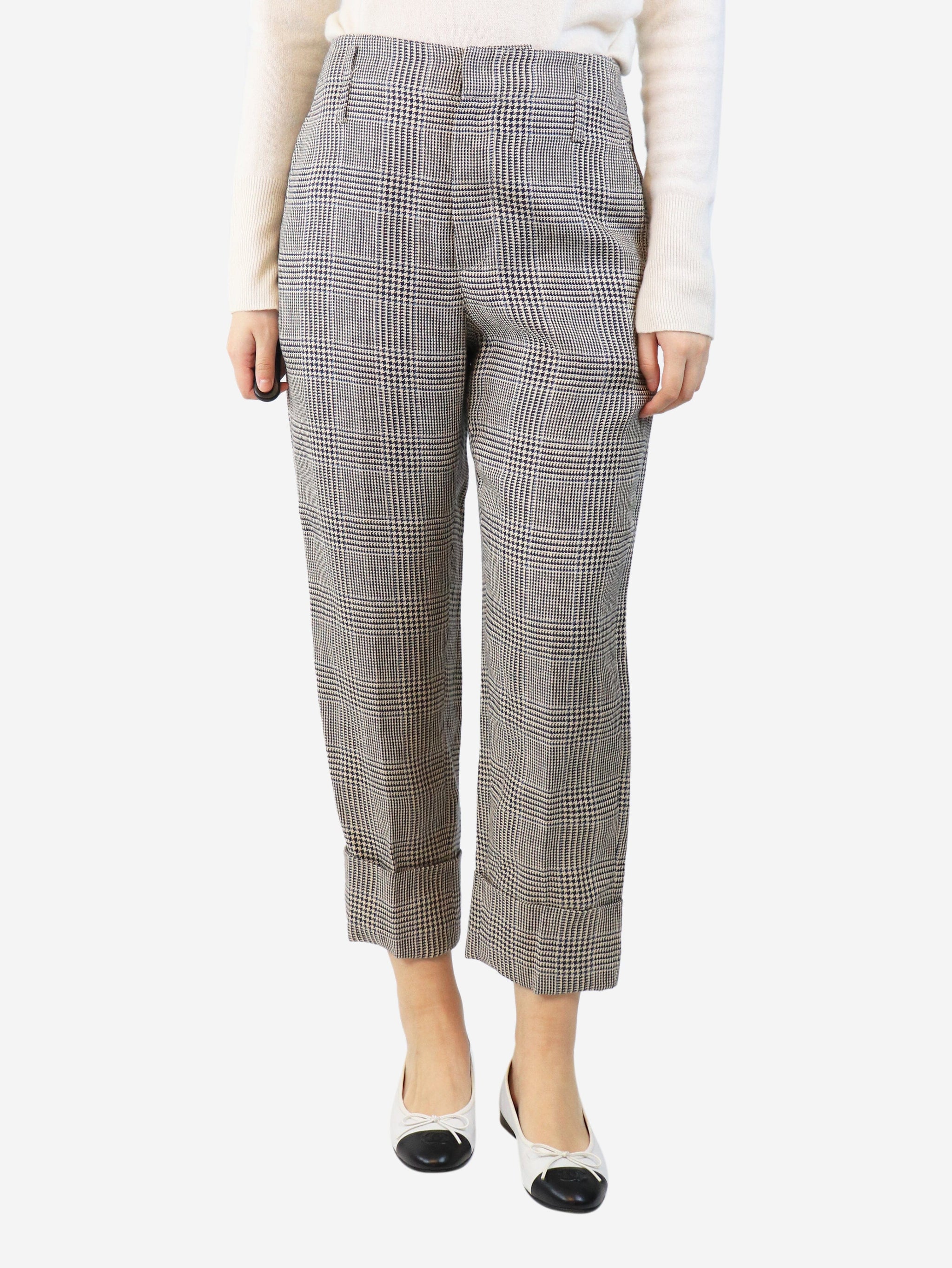 Neutral check wool trousers - size UK 10