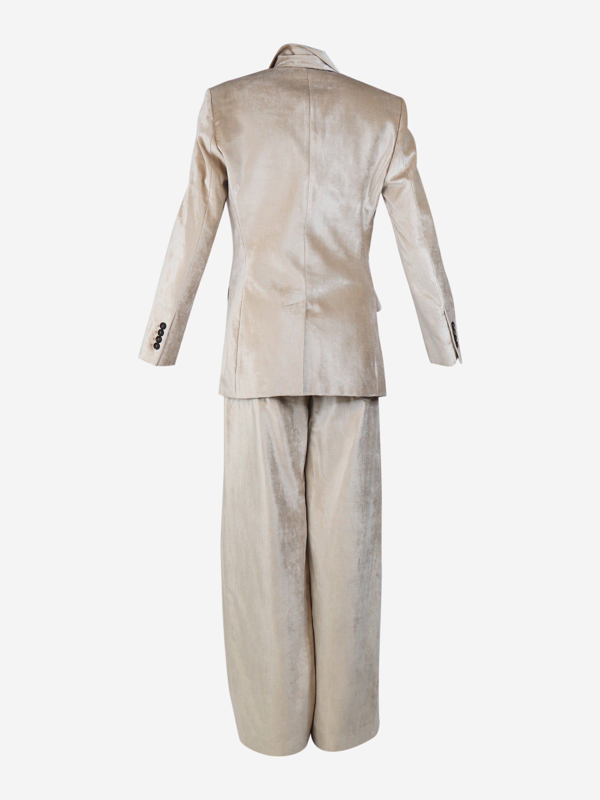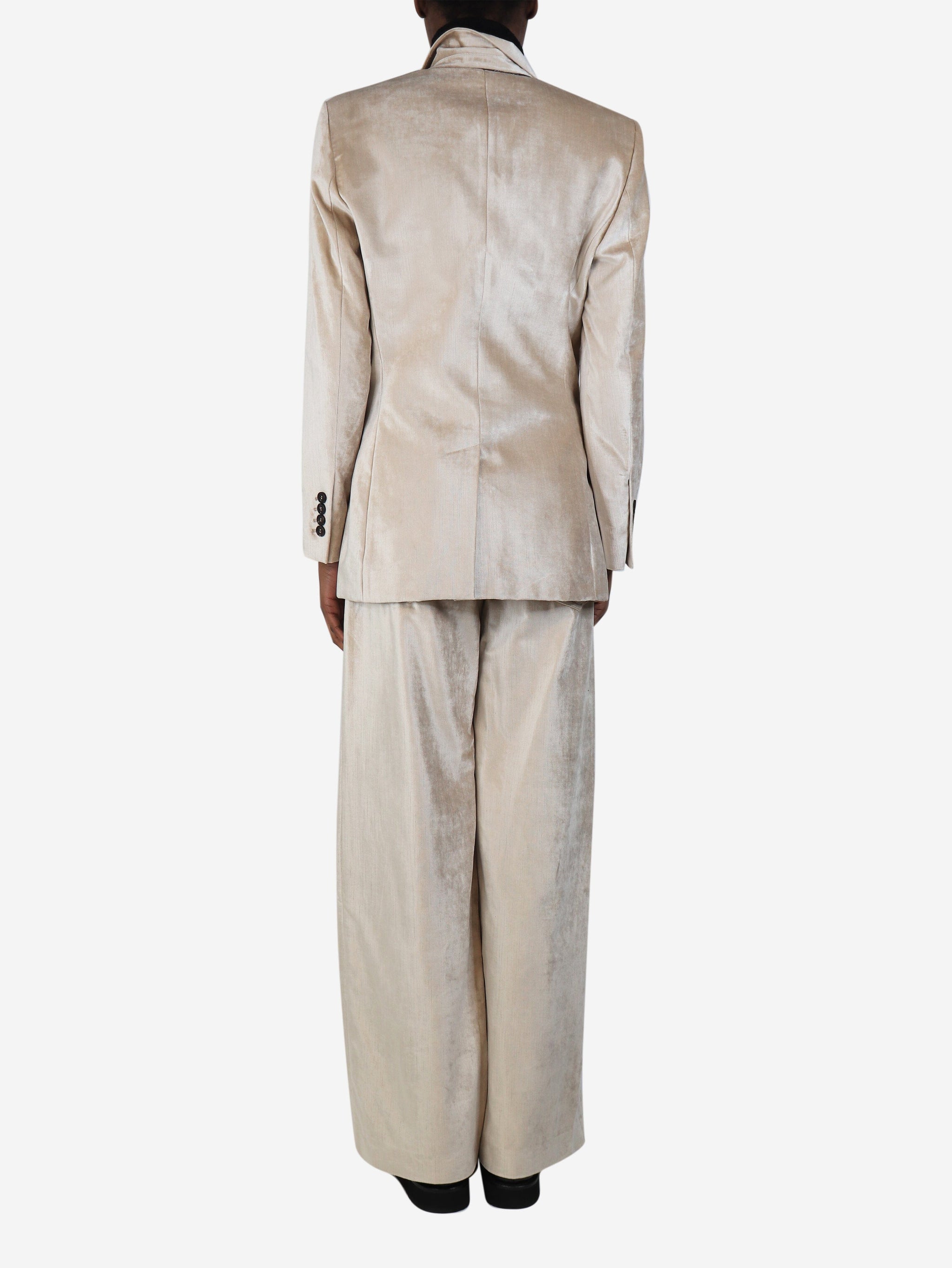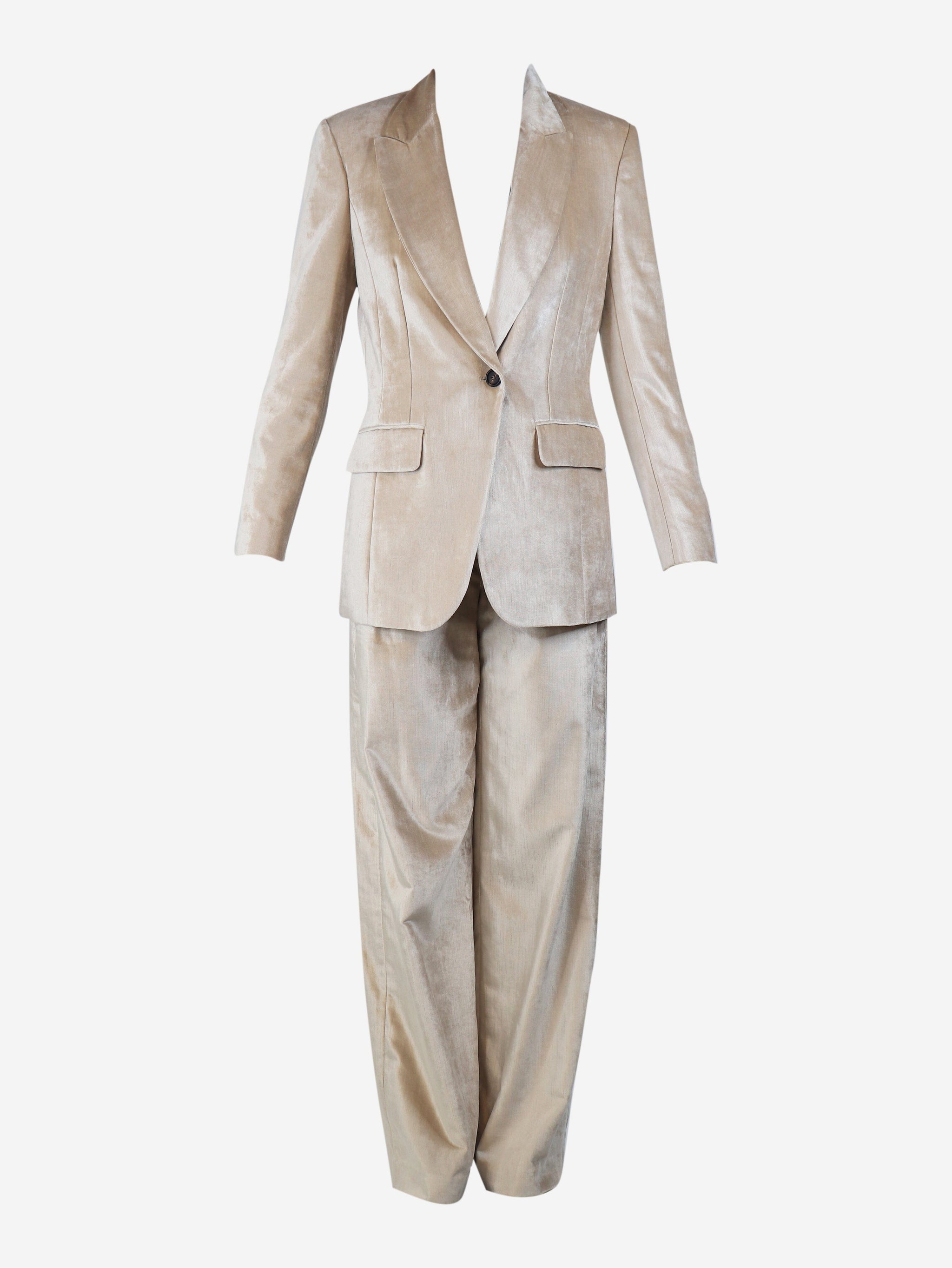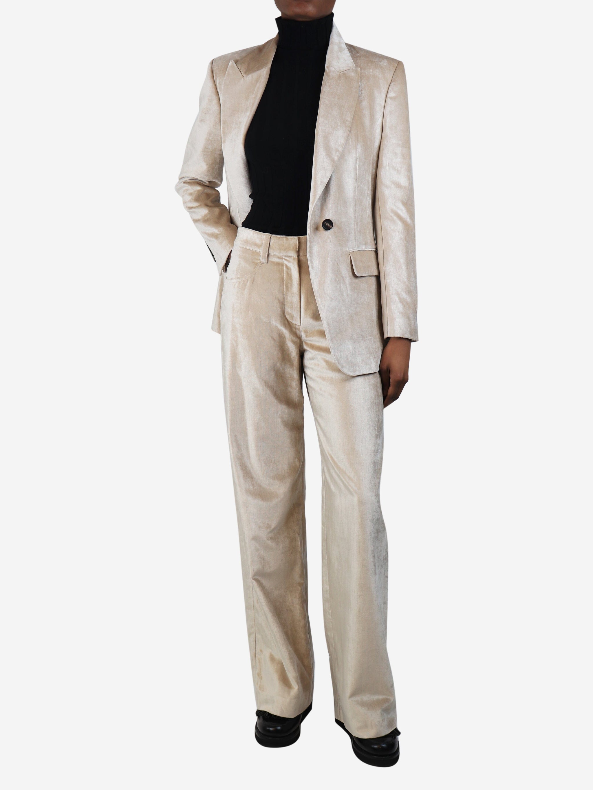 Neutral velvet two-piece suit set - size UK 6