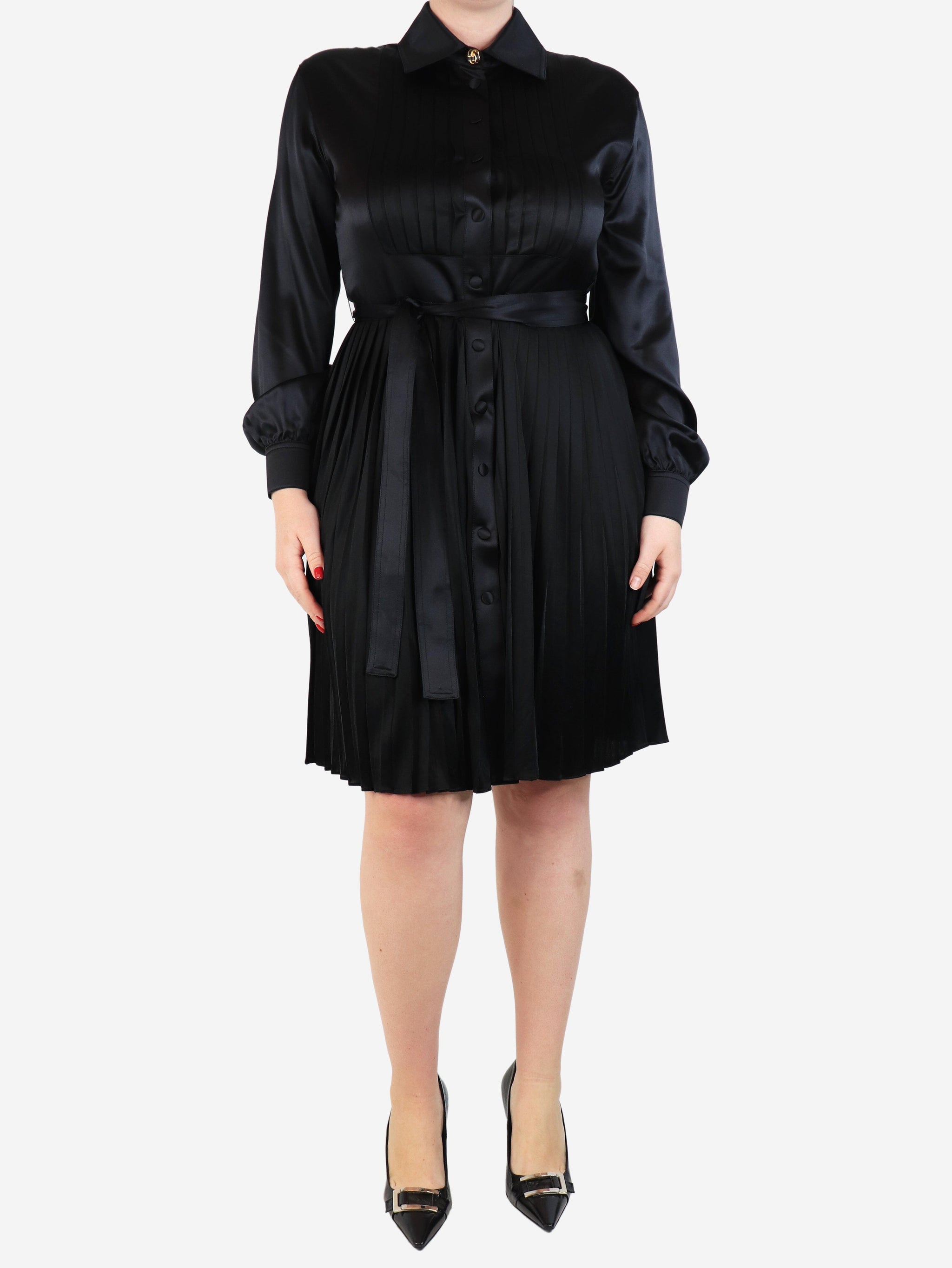 Black satin pleated dress - size UK 12