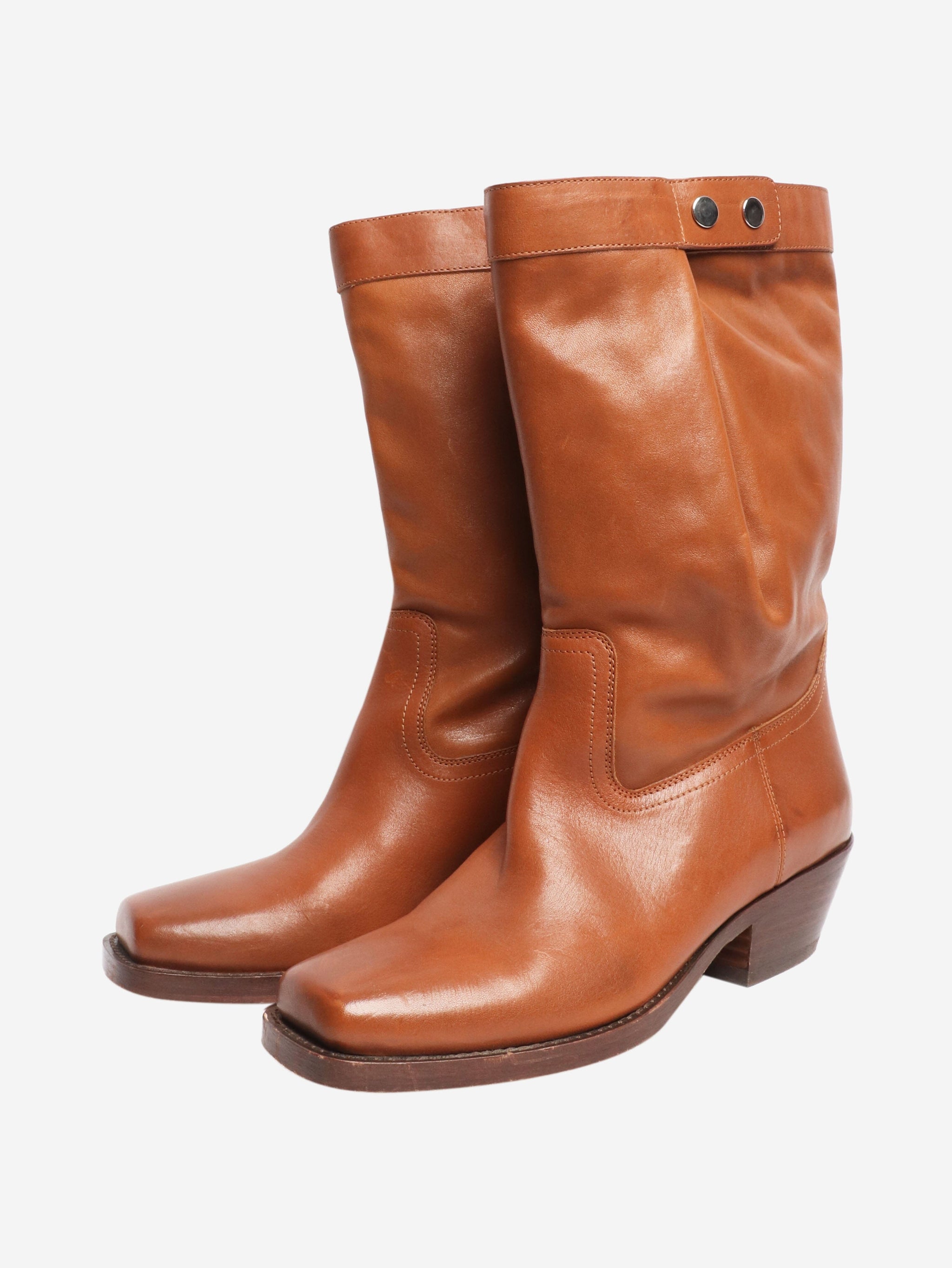 Burnt orange western style leather boots - size EU 40 (UK 7)
