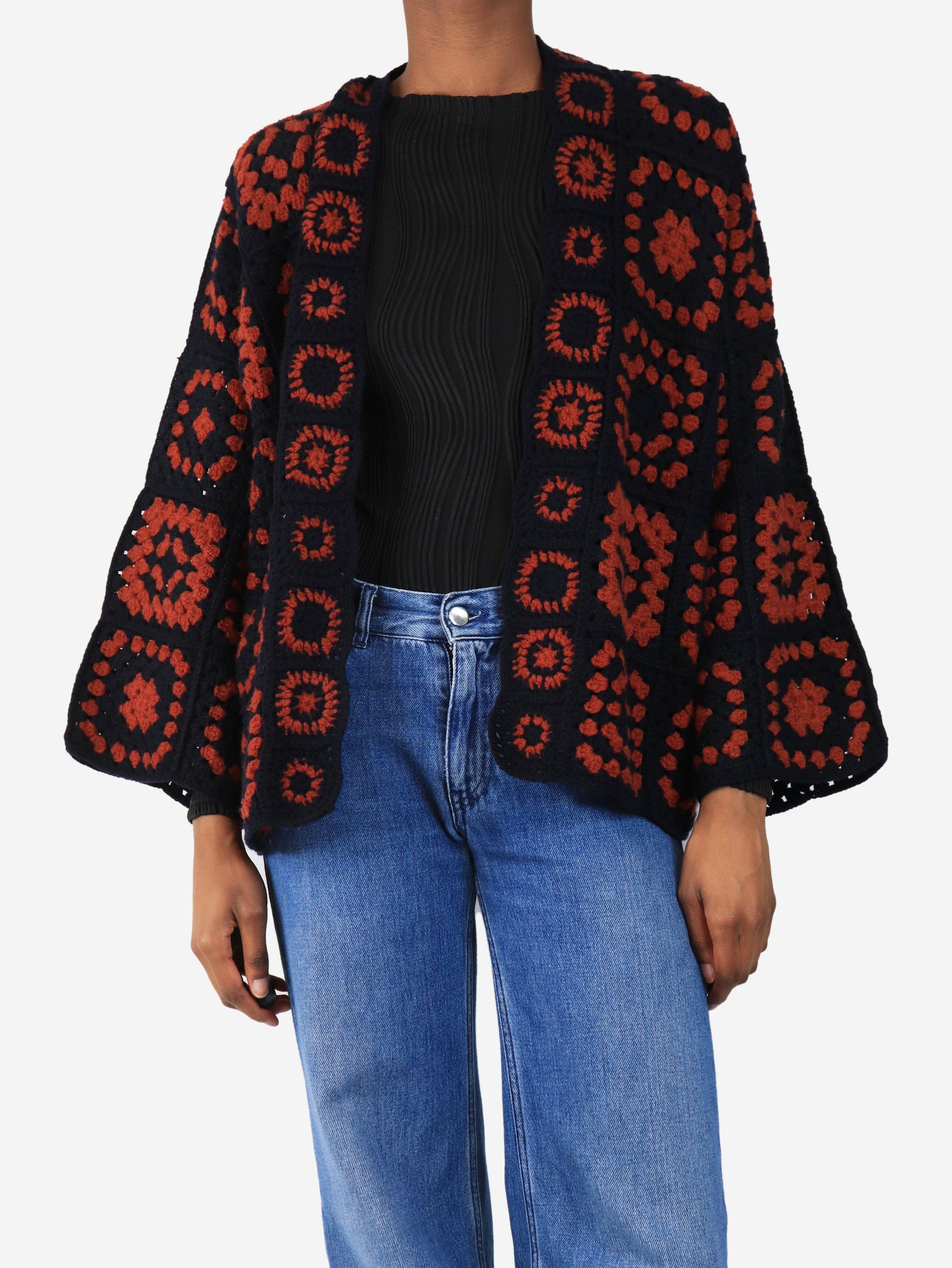 Navy blue crochet knit cardigan - One size