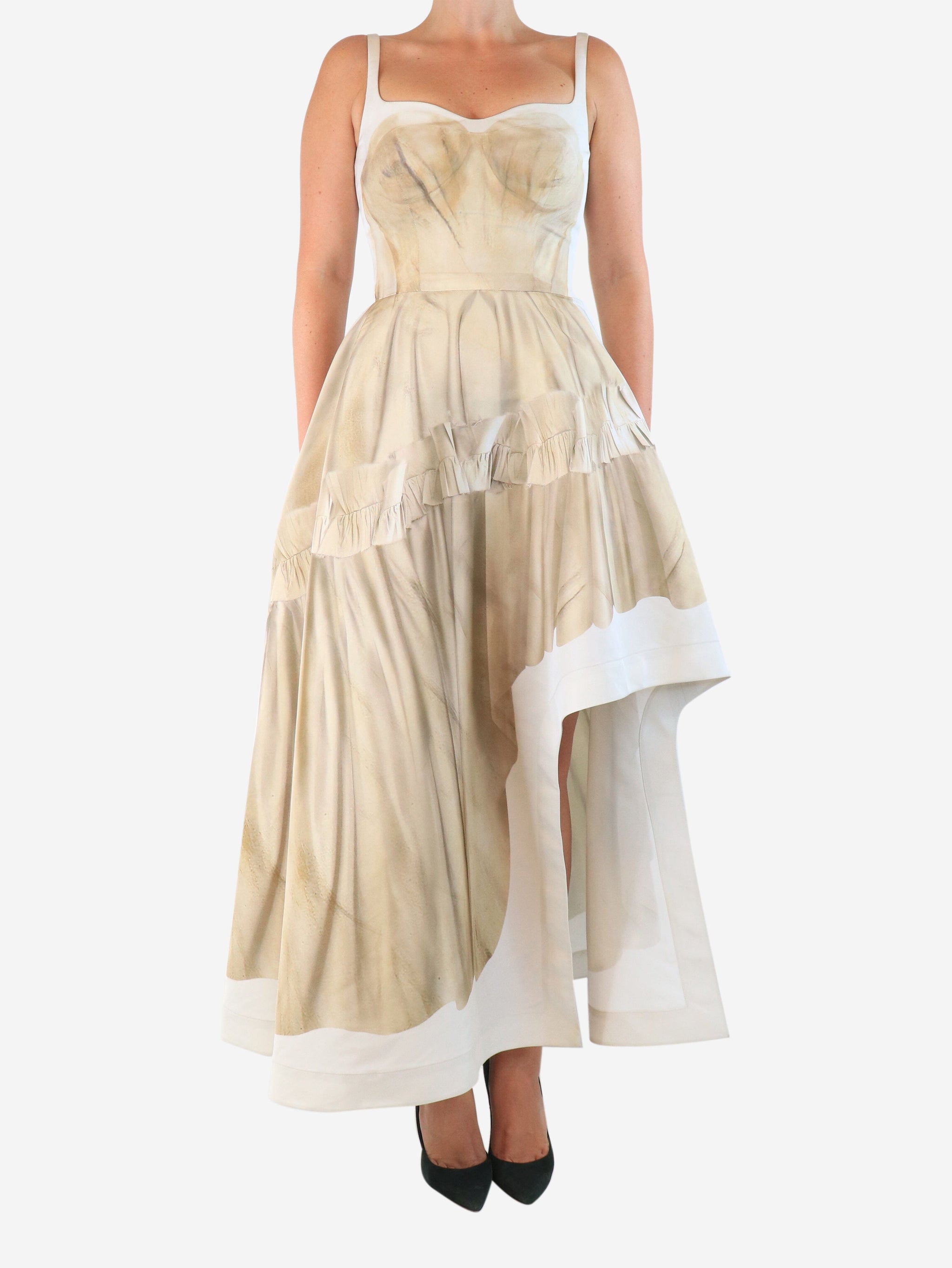 Calico Trompe L'oeil assymmmetric dress - size UK 10