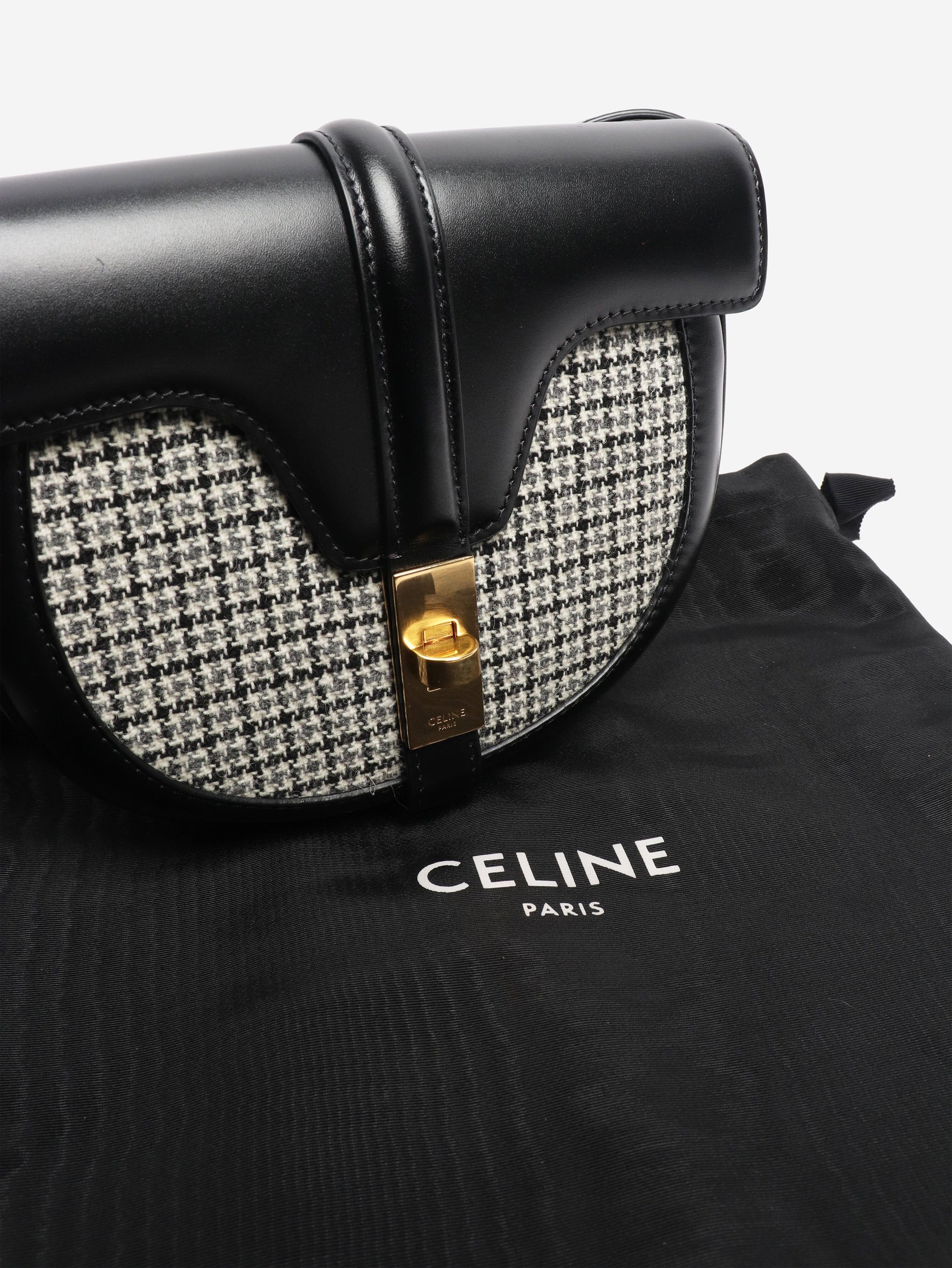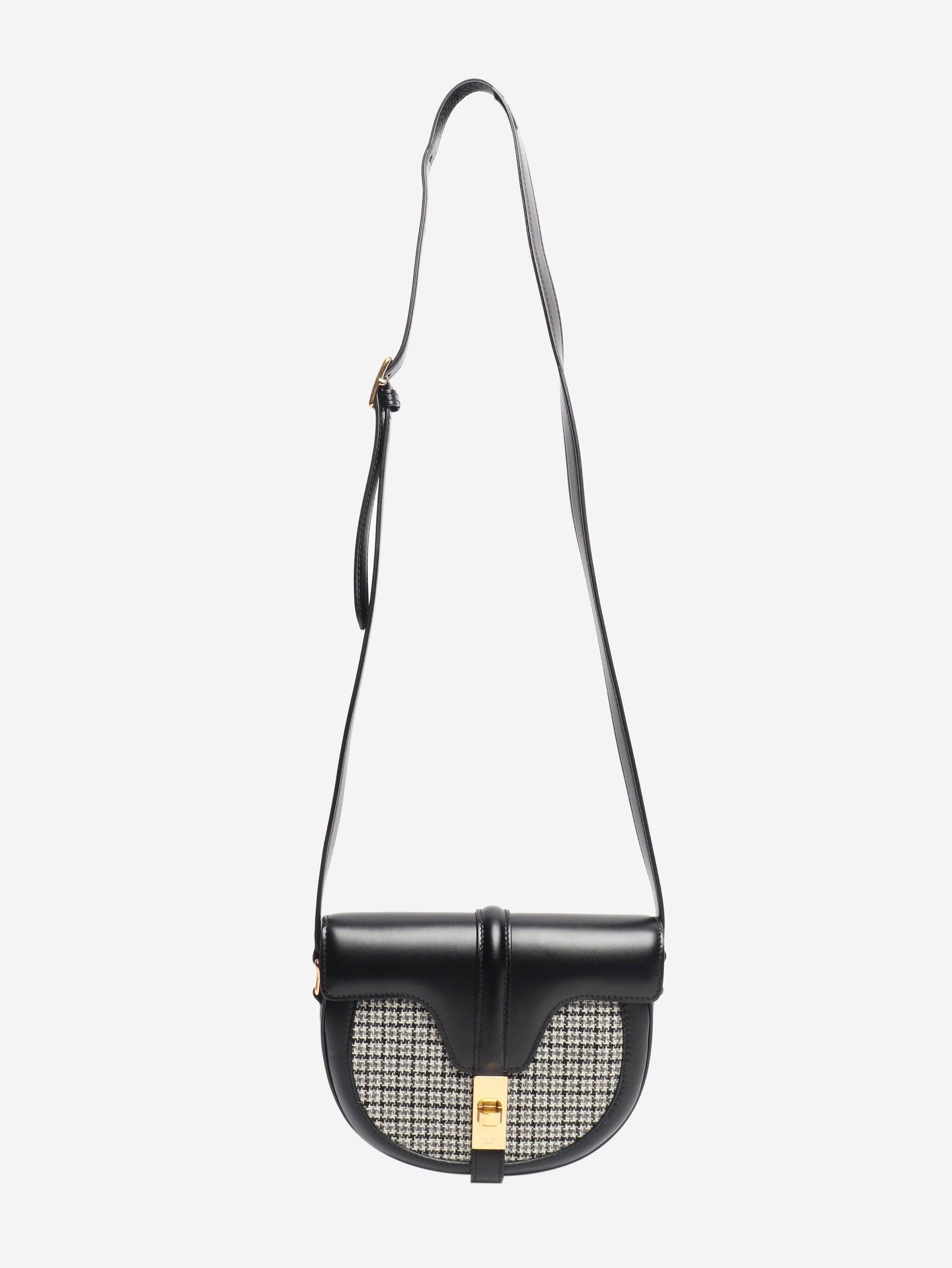 Black besace leather and wool cross-body bag