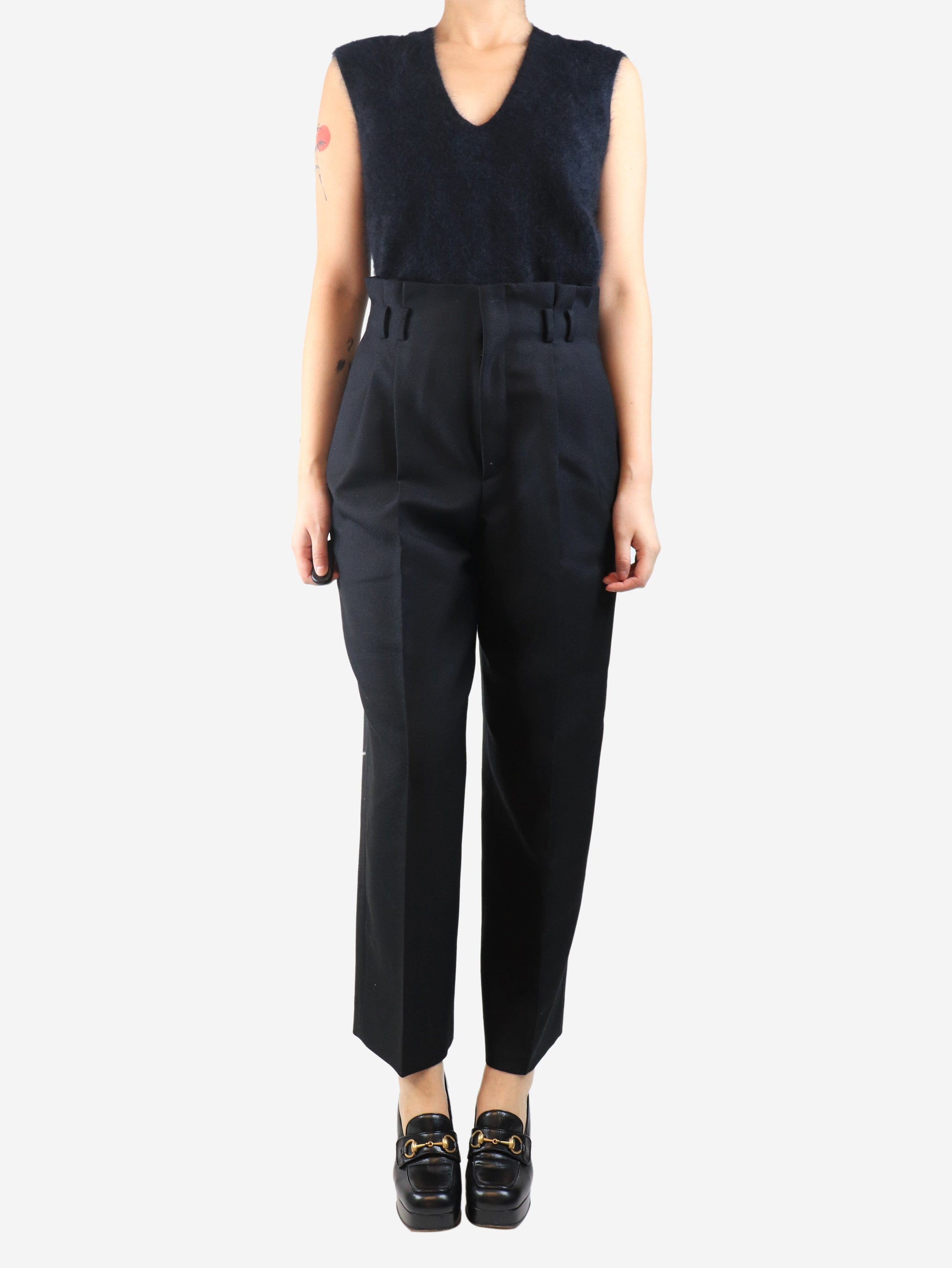 Black pleated wool and mohair-blend trousers - size UK 12