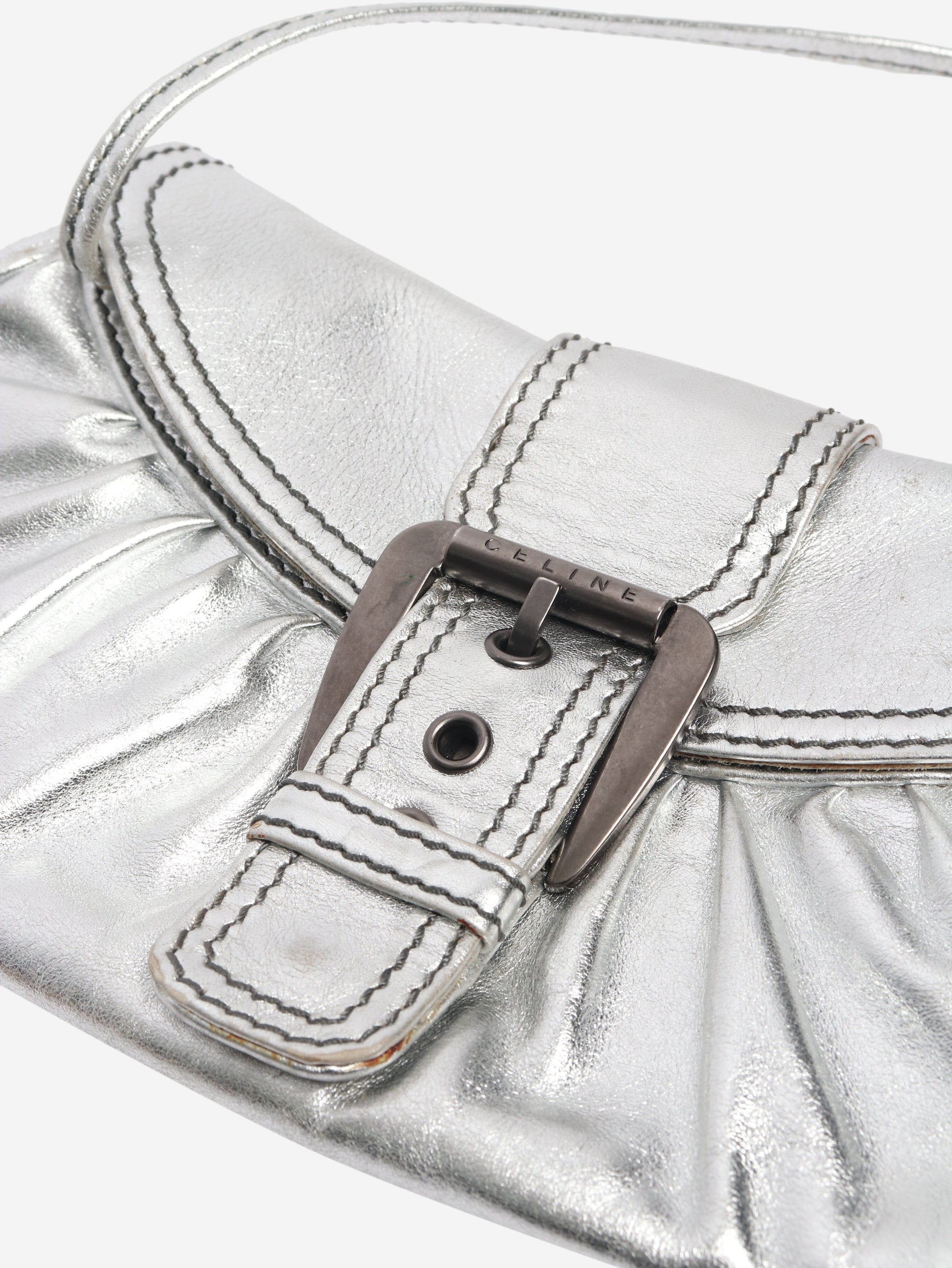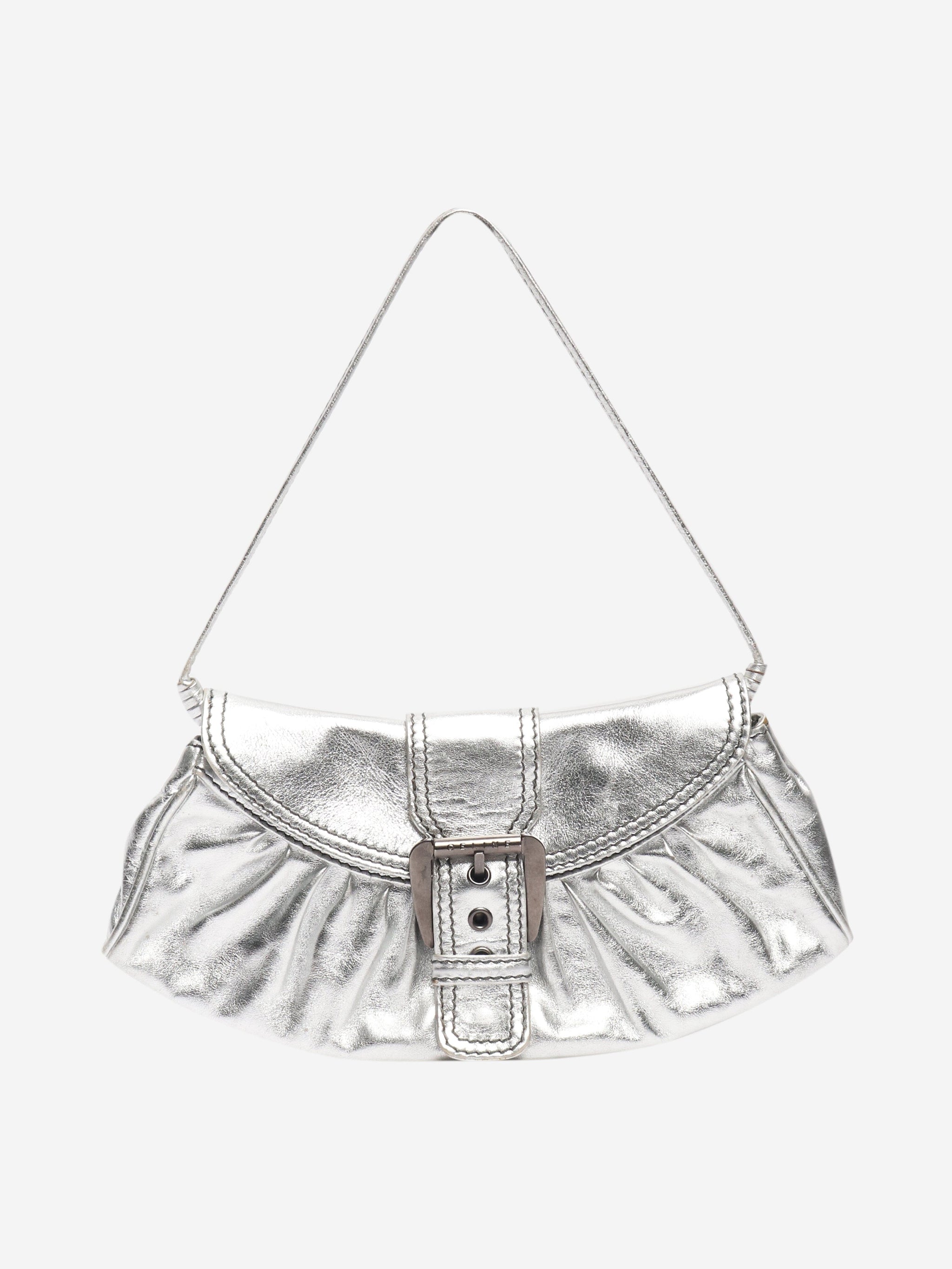 Silver metallic leather shoulder bag