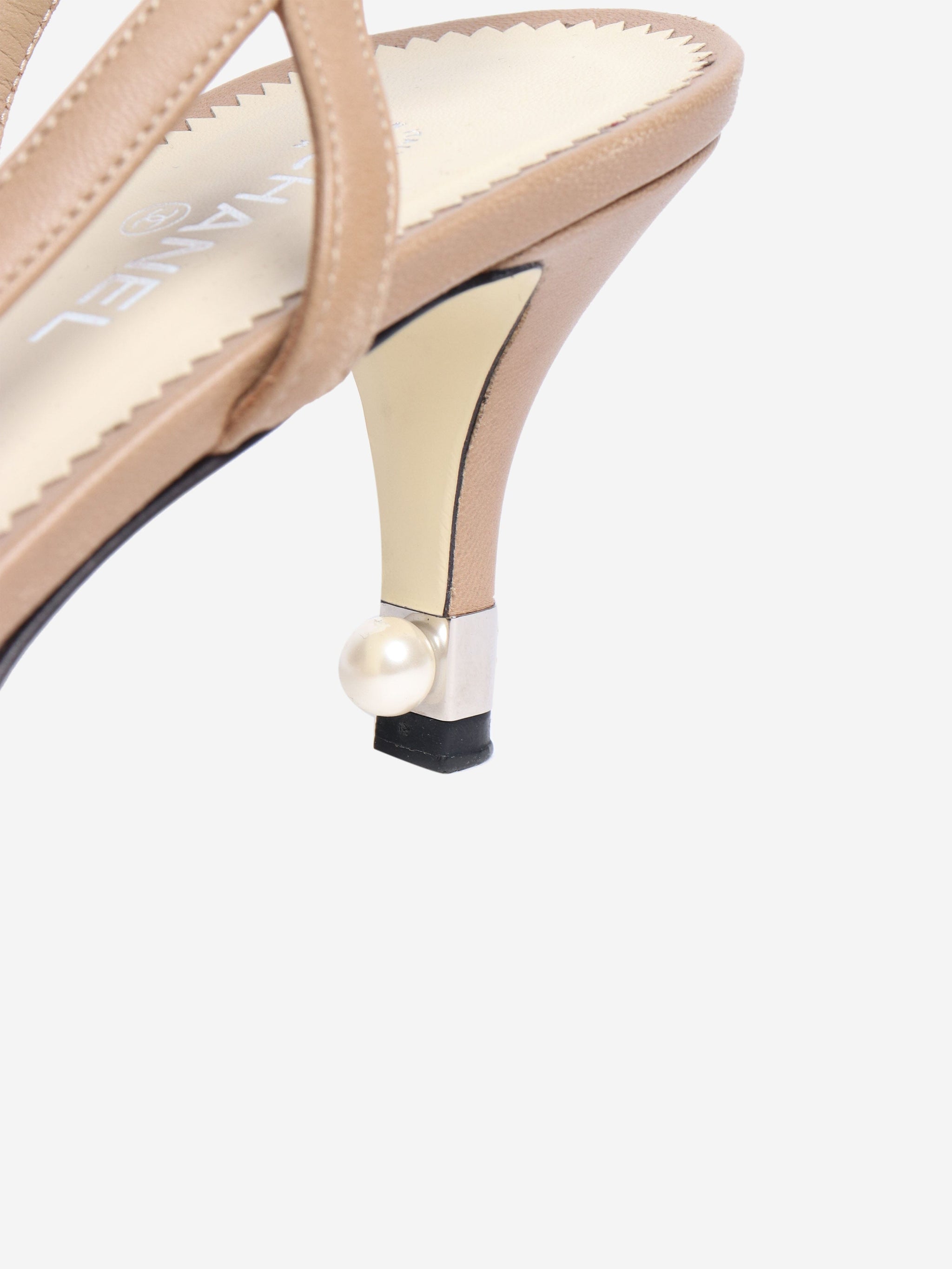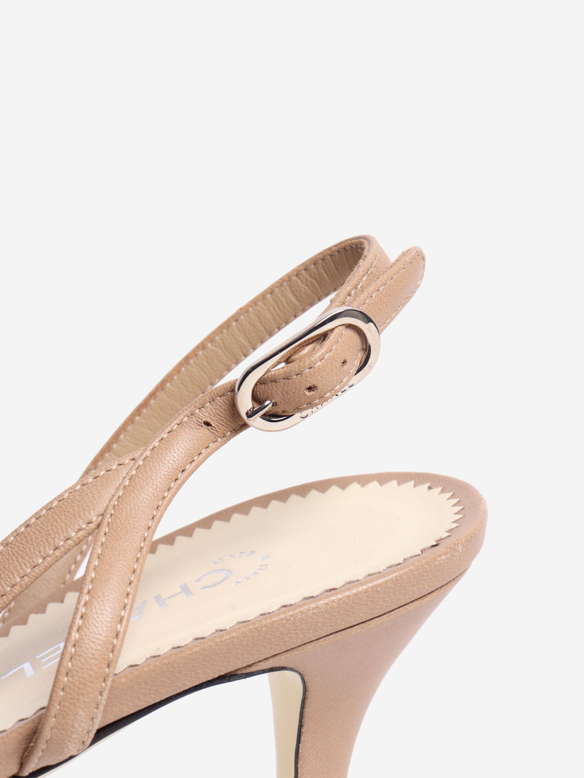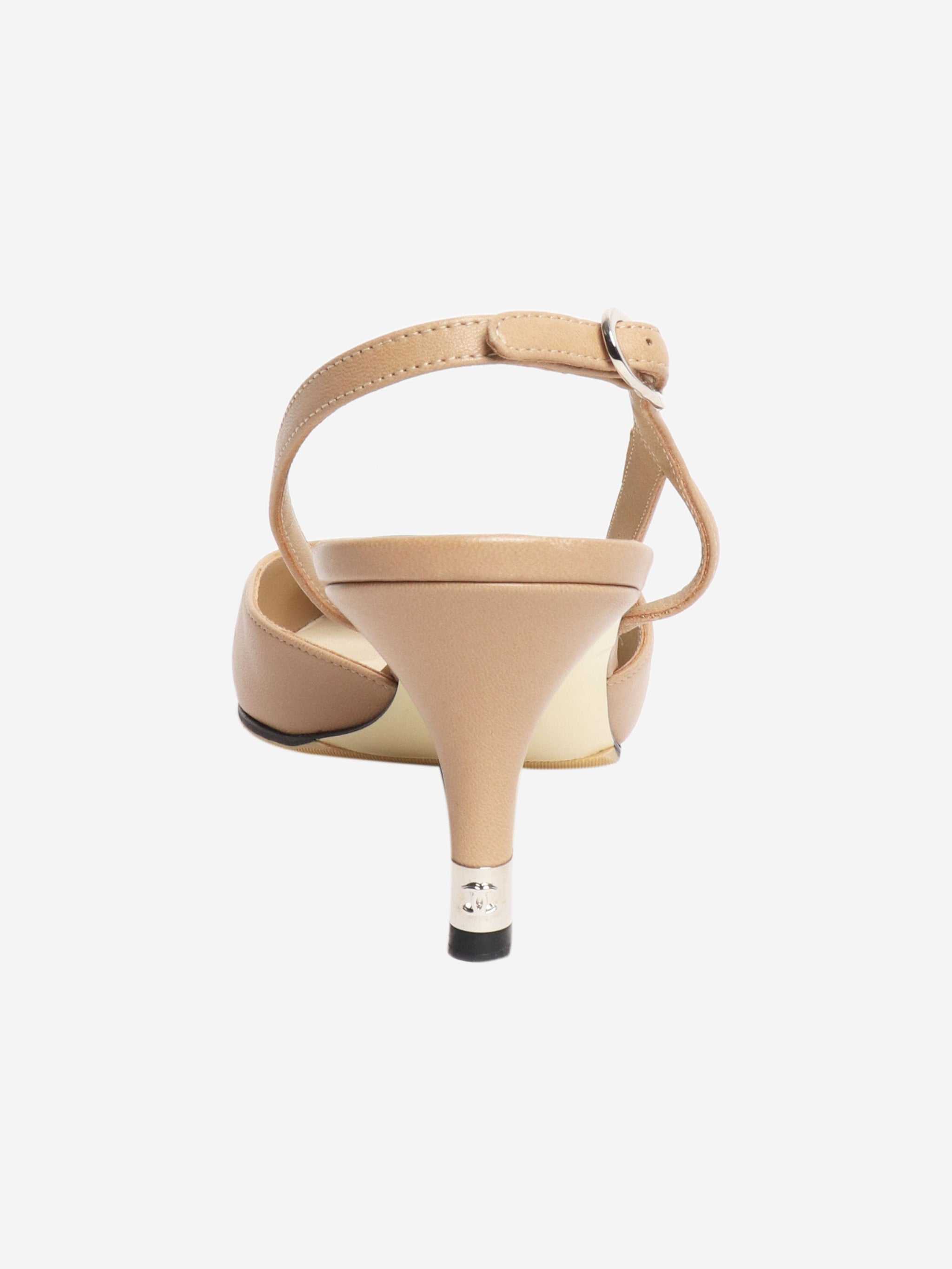 Beige leather kitten-heel slingbacks - size EU 39