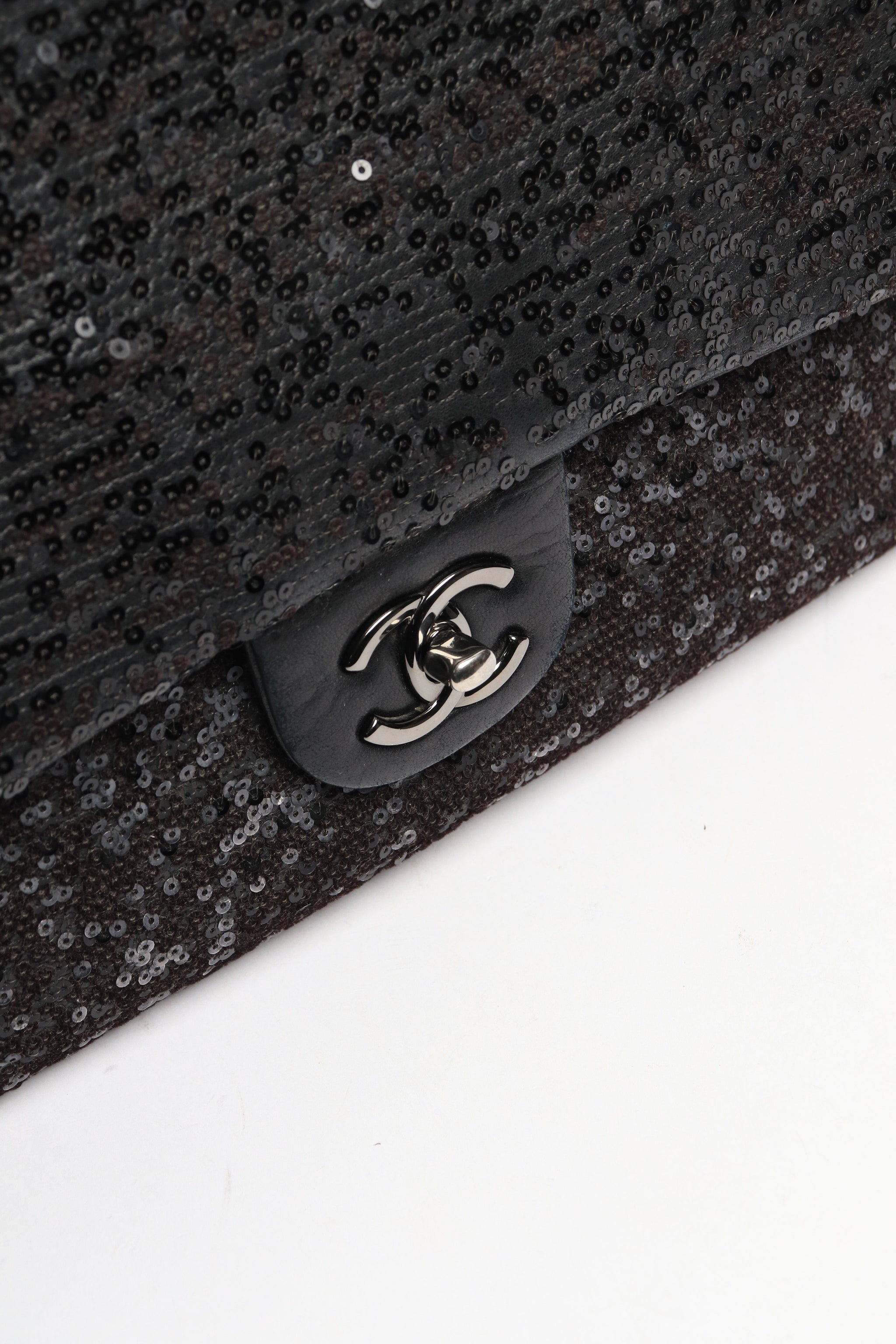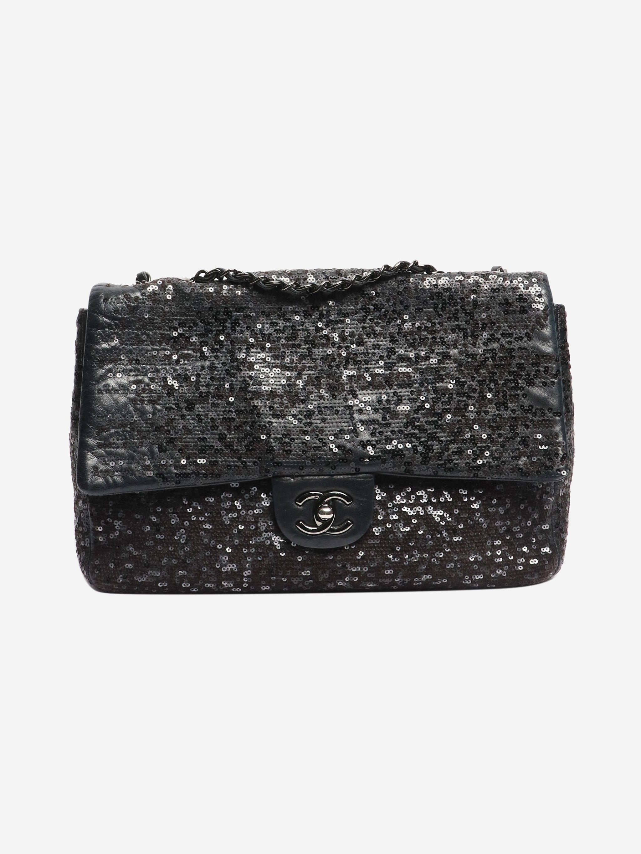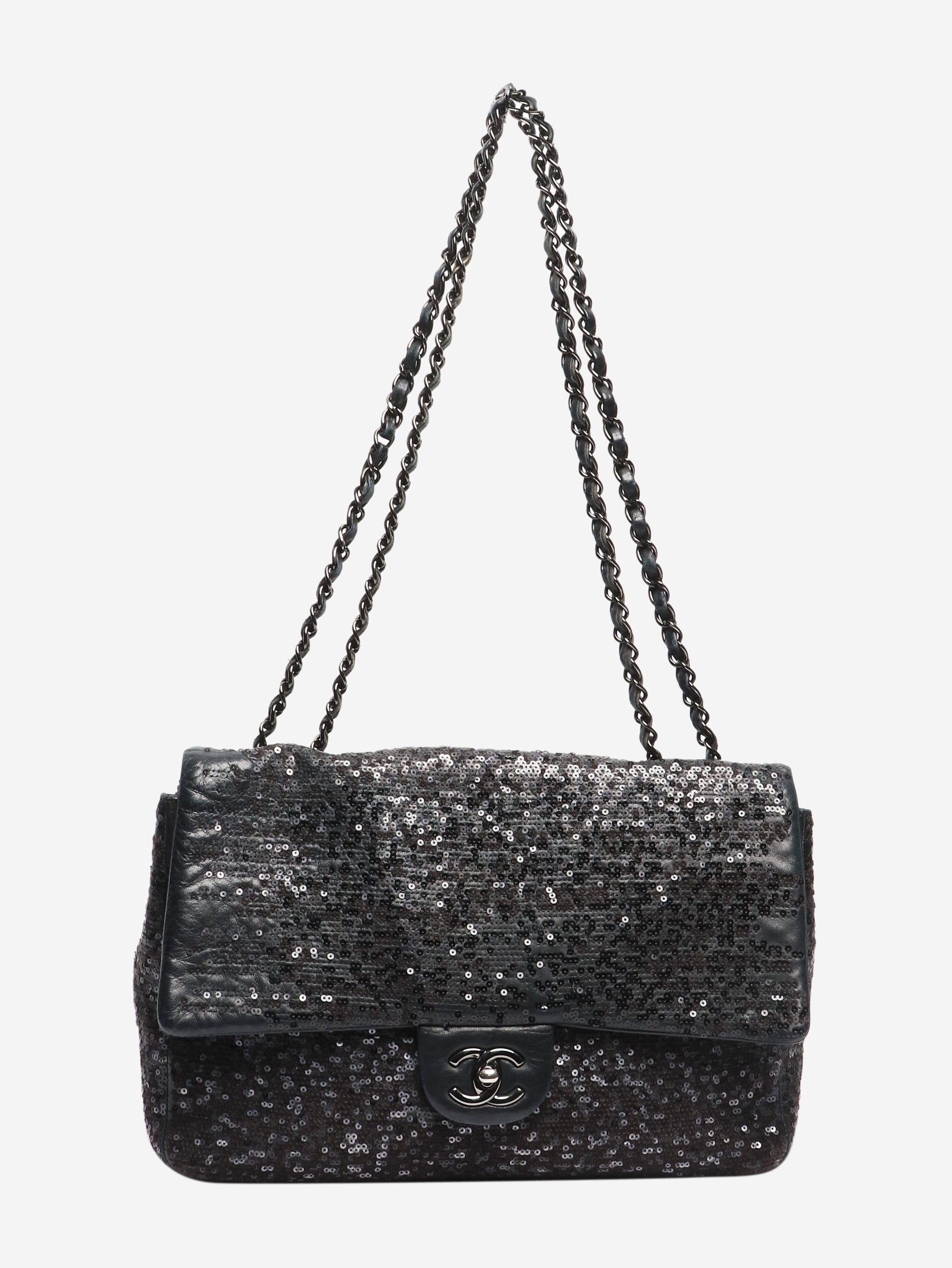 Black 2011 jumbo sequin-embellished Classic Single Flap bag