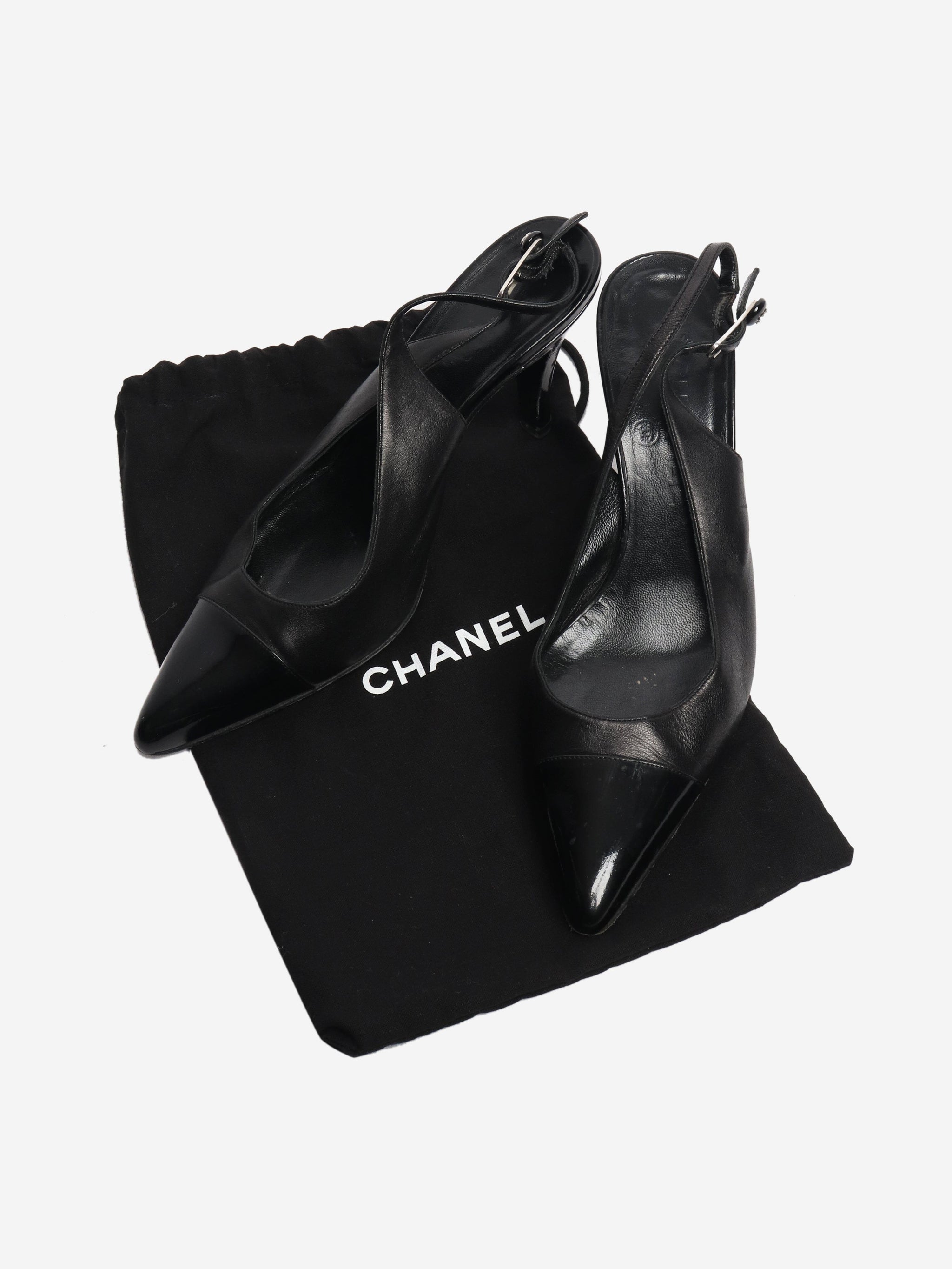 Black leather slingbacks - size EU 38 (UK 5)