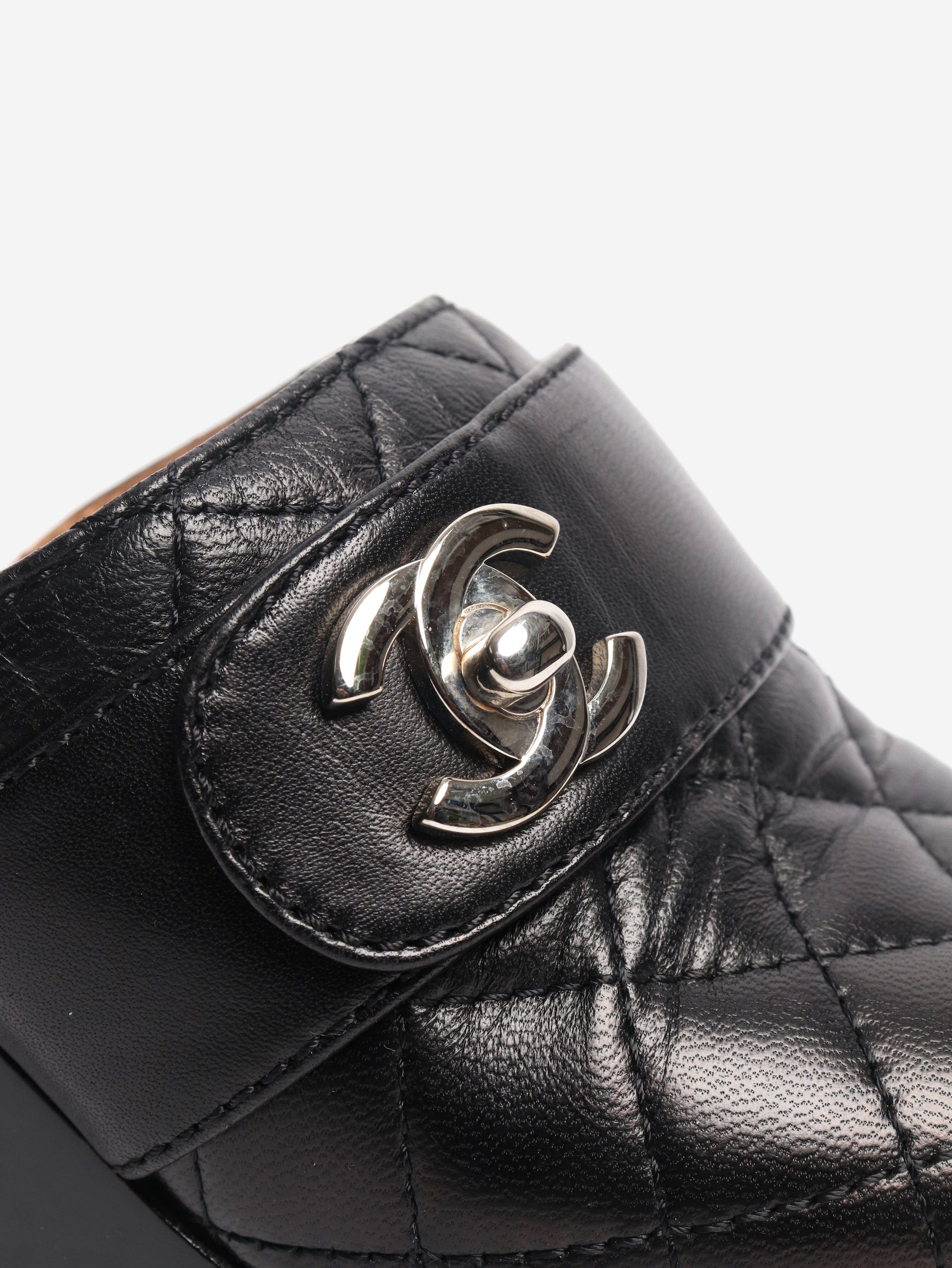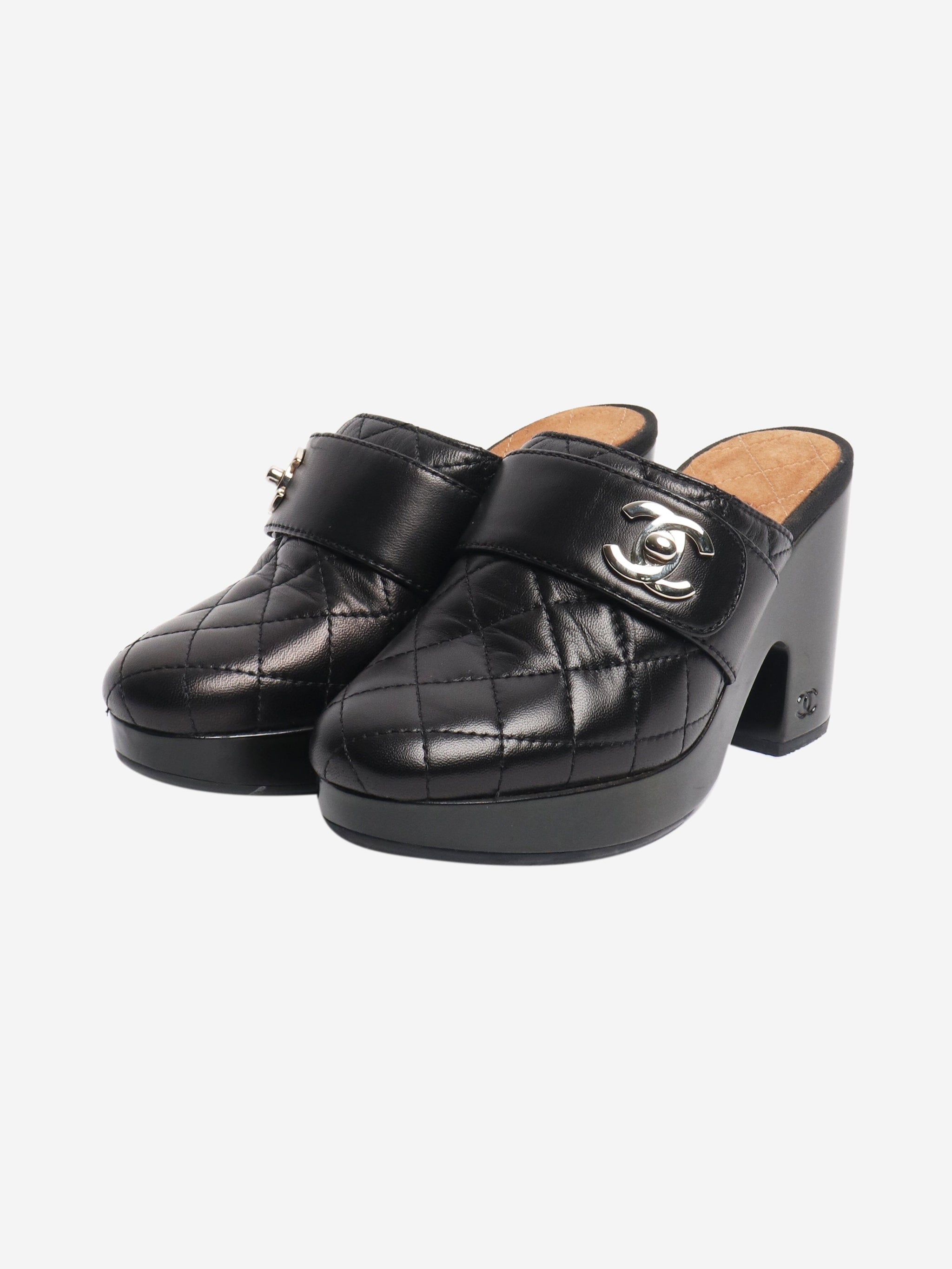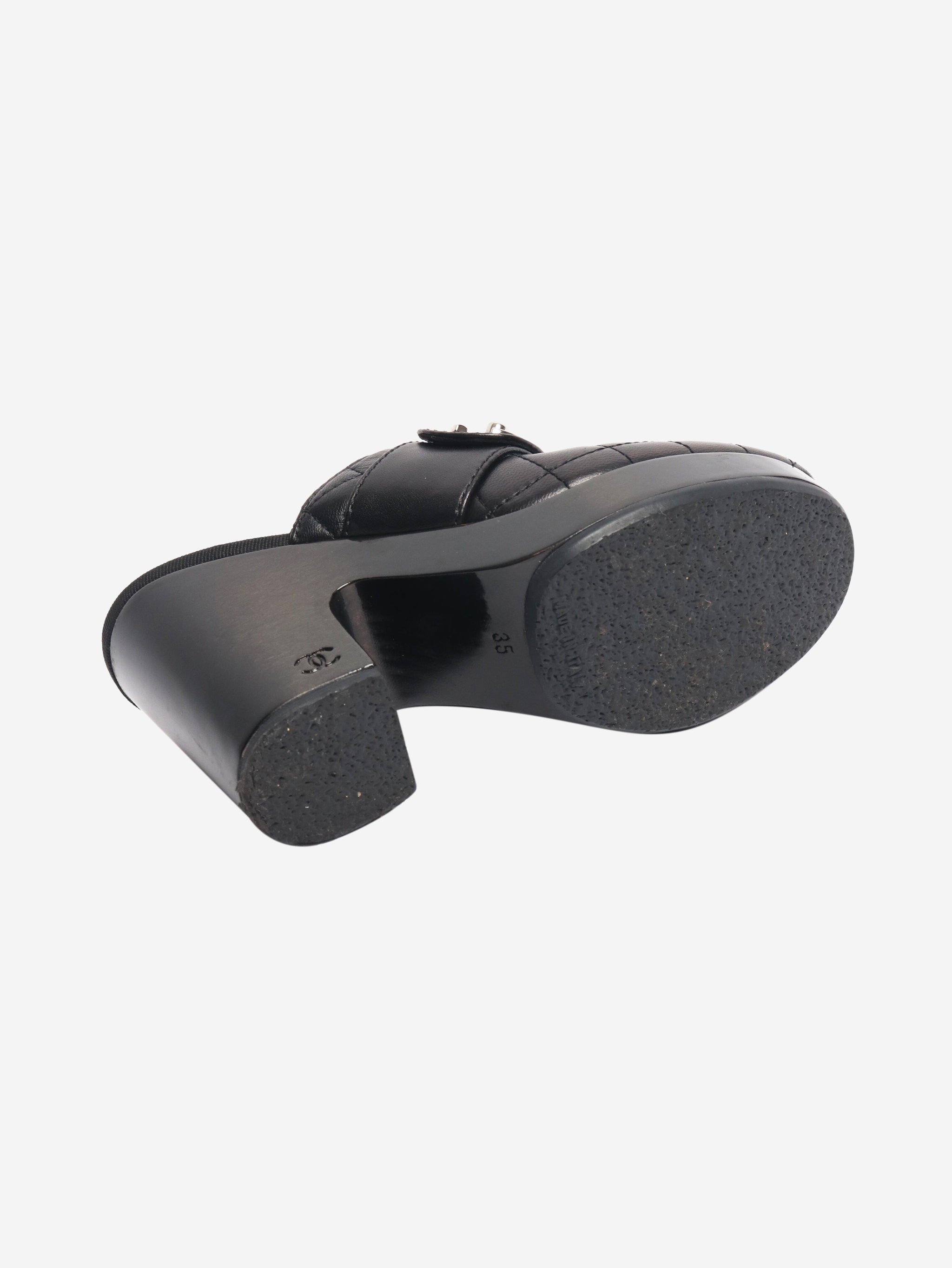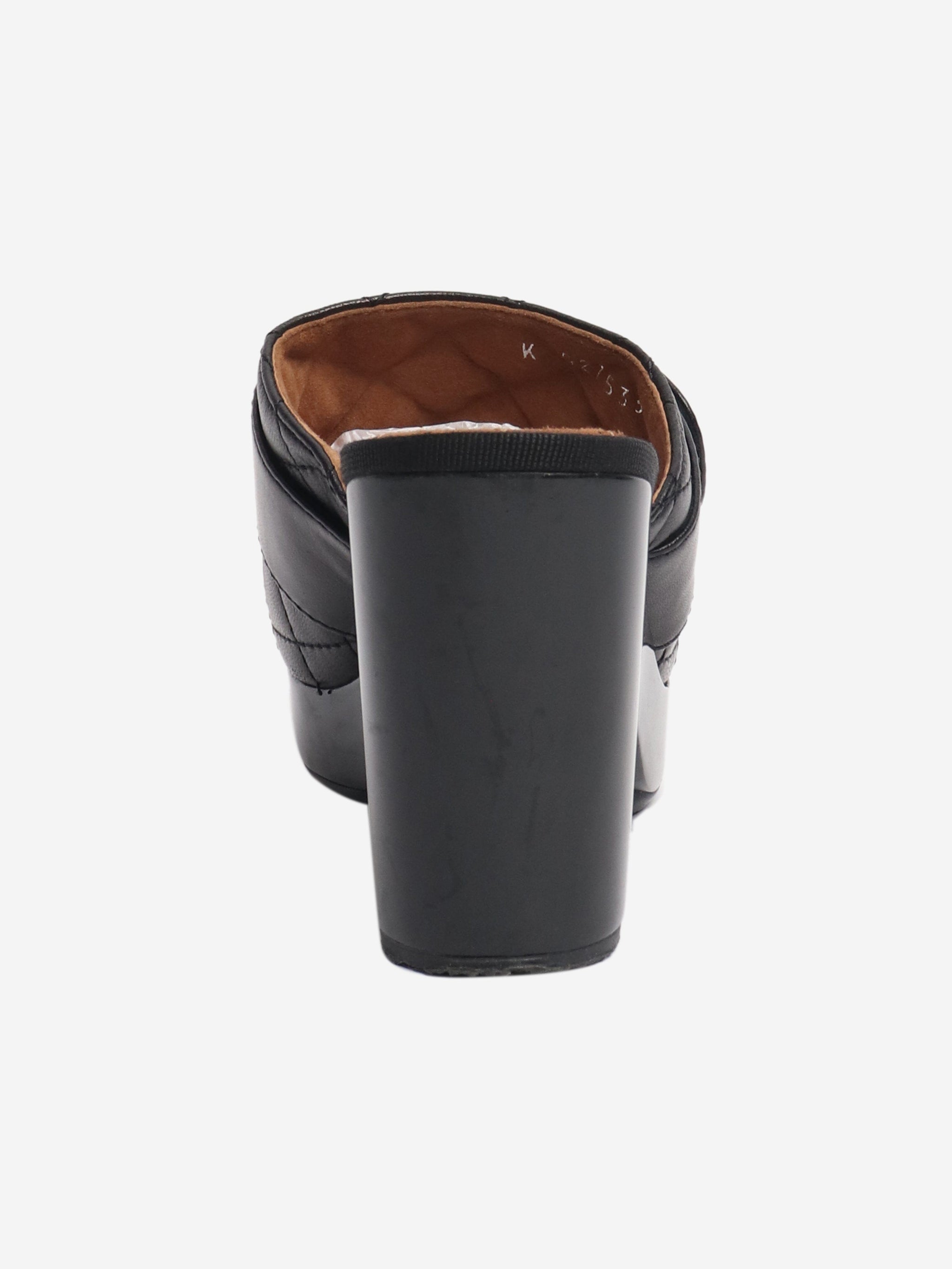 Black quilted leather wooden heels - size EU 35 (UK 2)