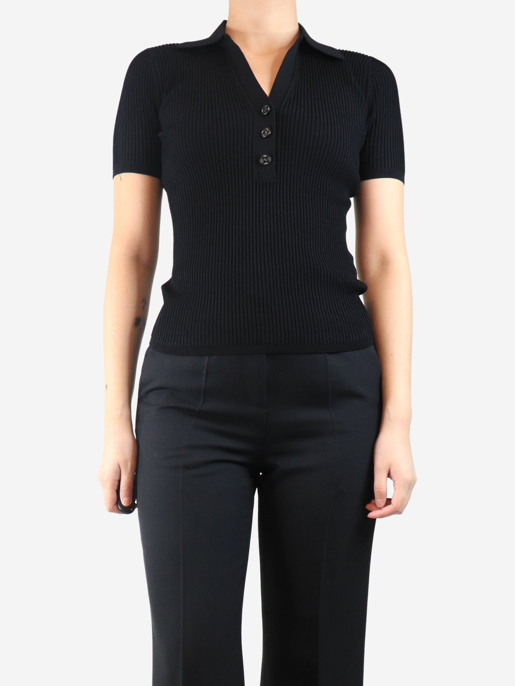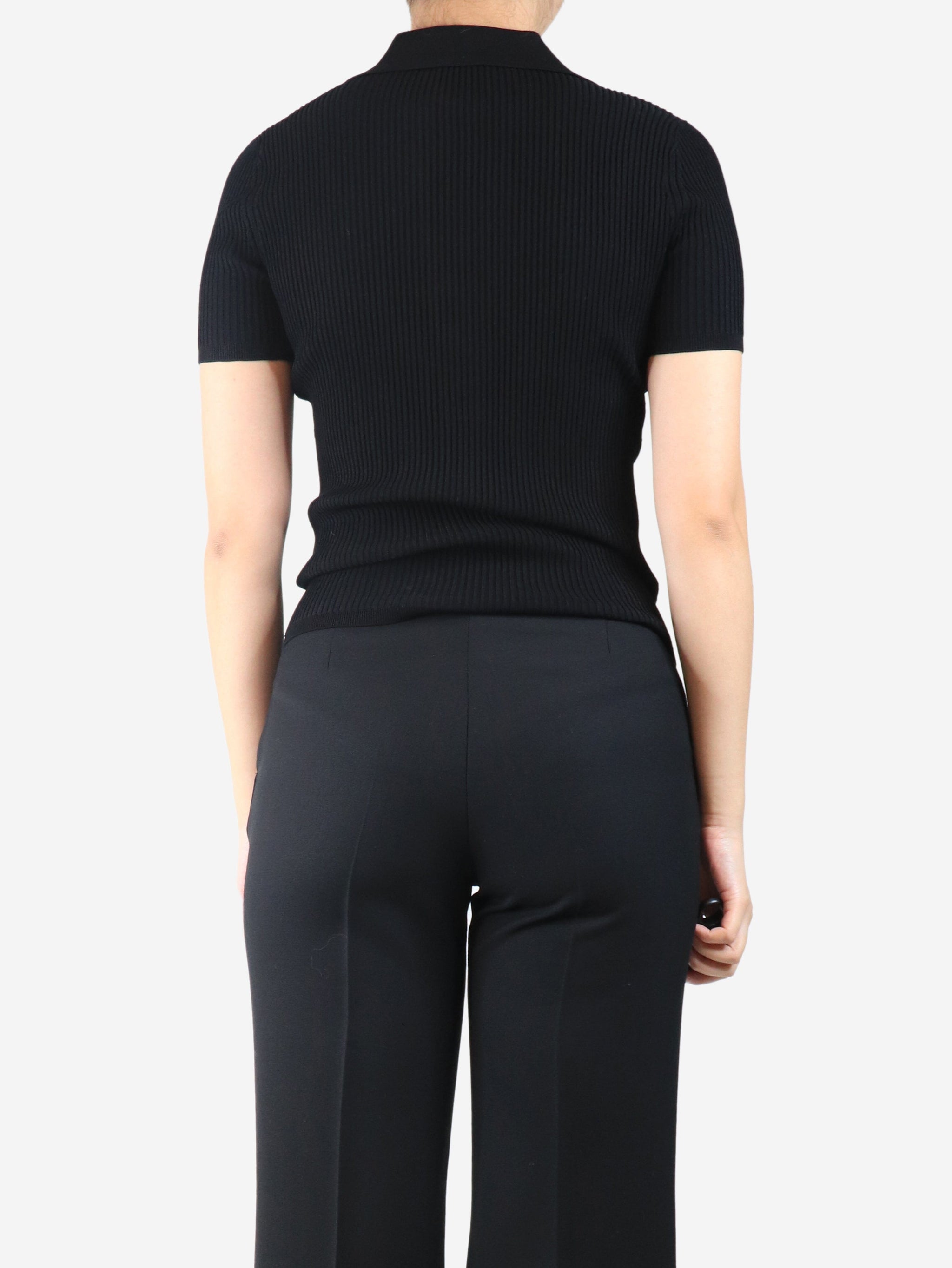 Black ribbed polo top - size UK 8