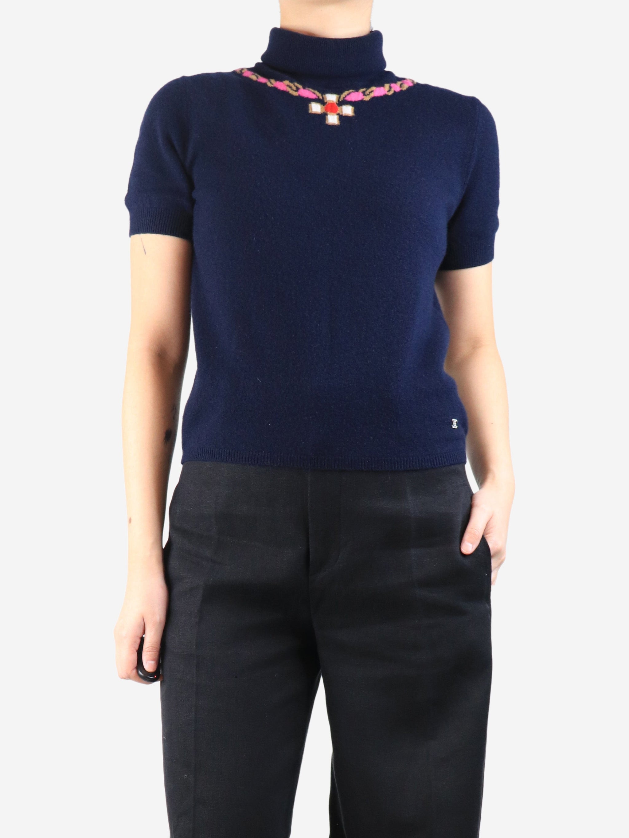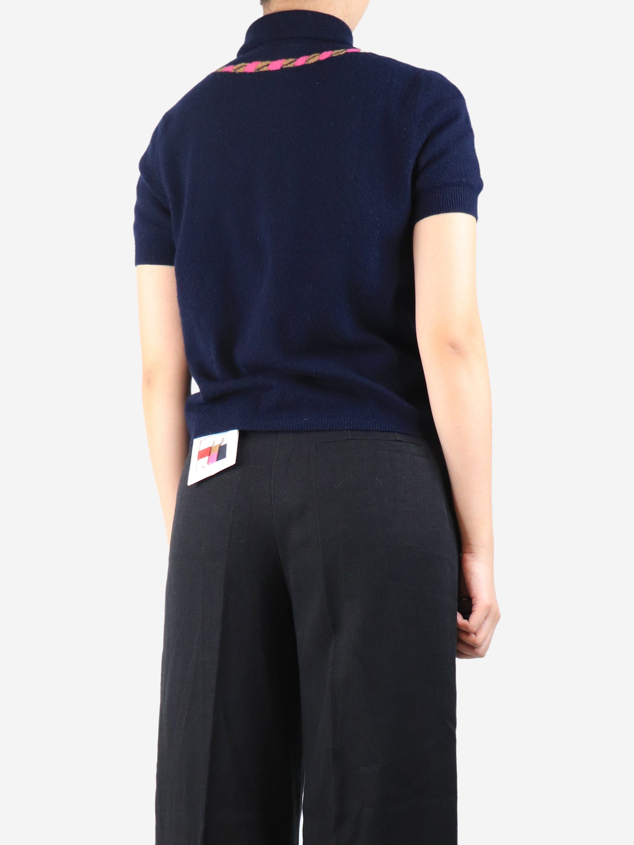 Navy cashmere short sleeved top - size UK 8