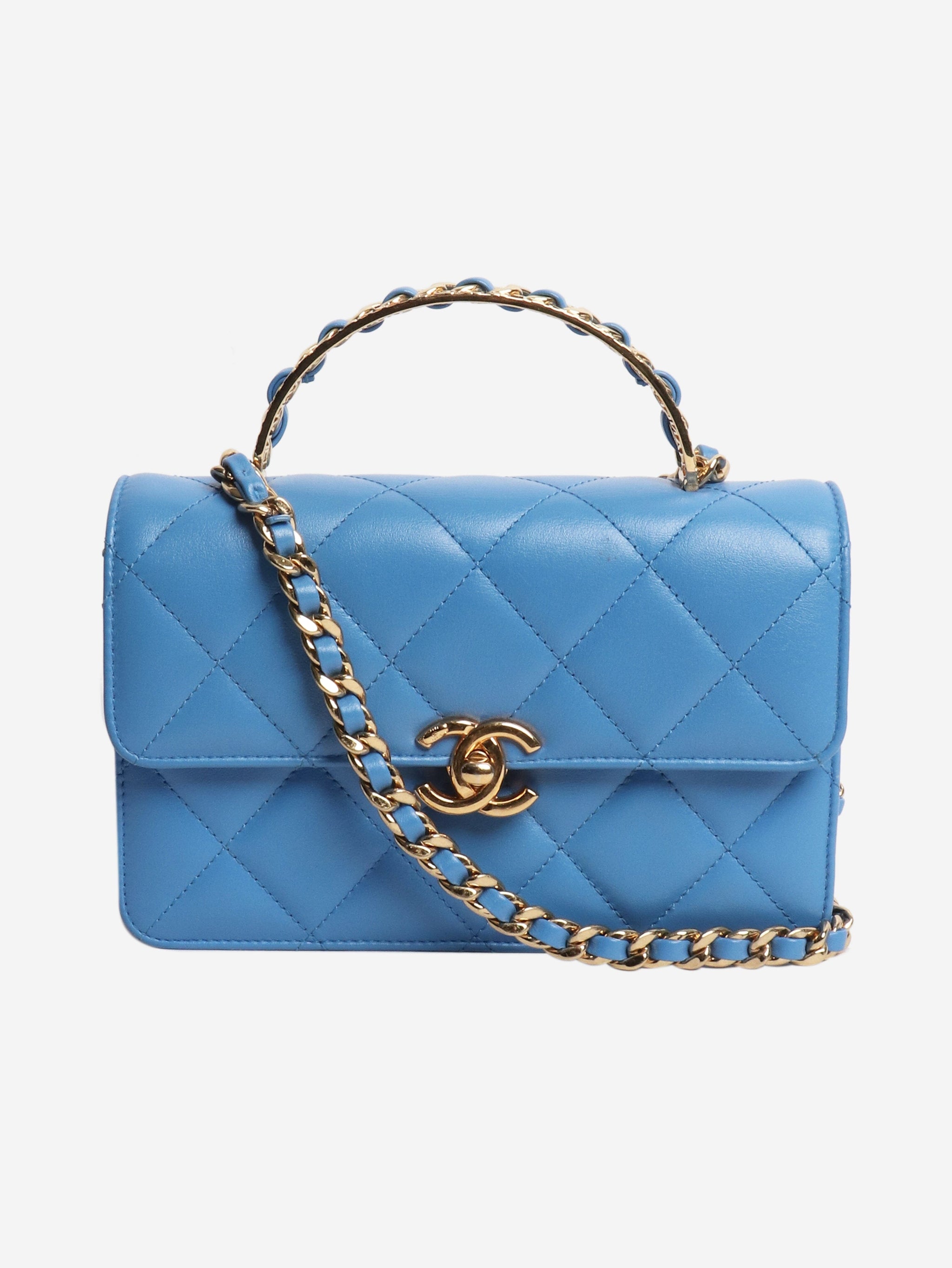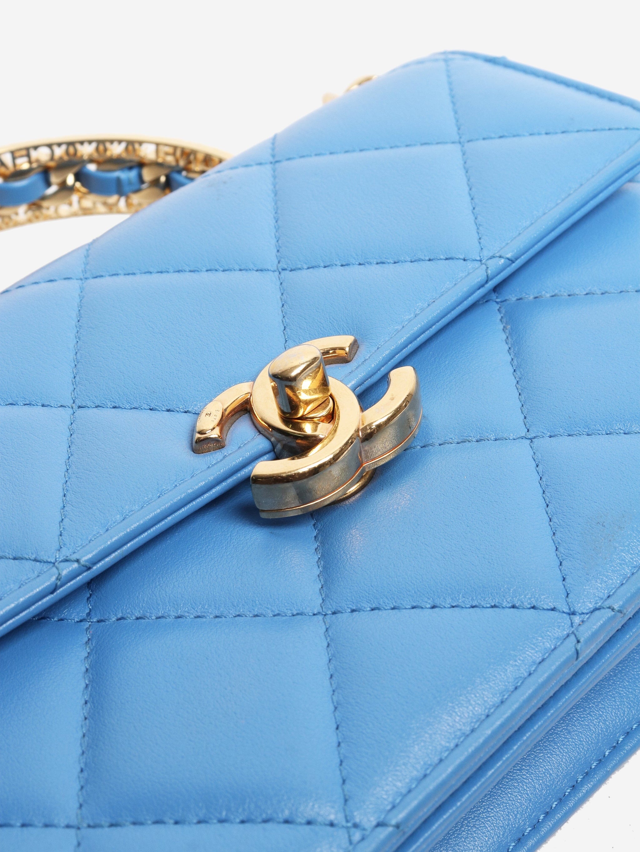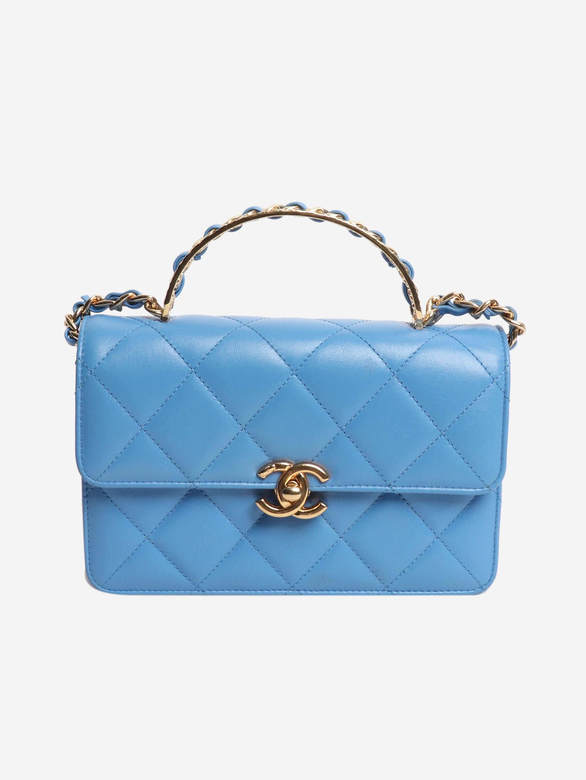 Blue small lambskin quilted crossbody bag