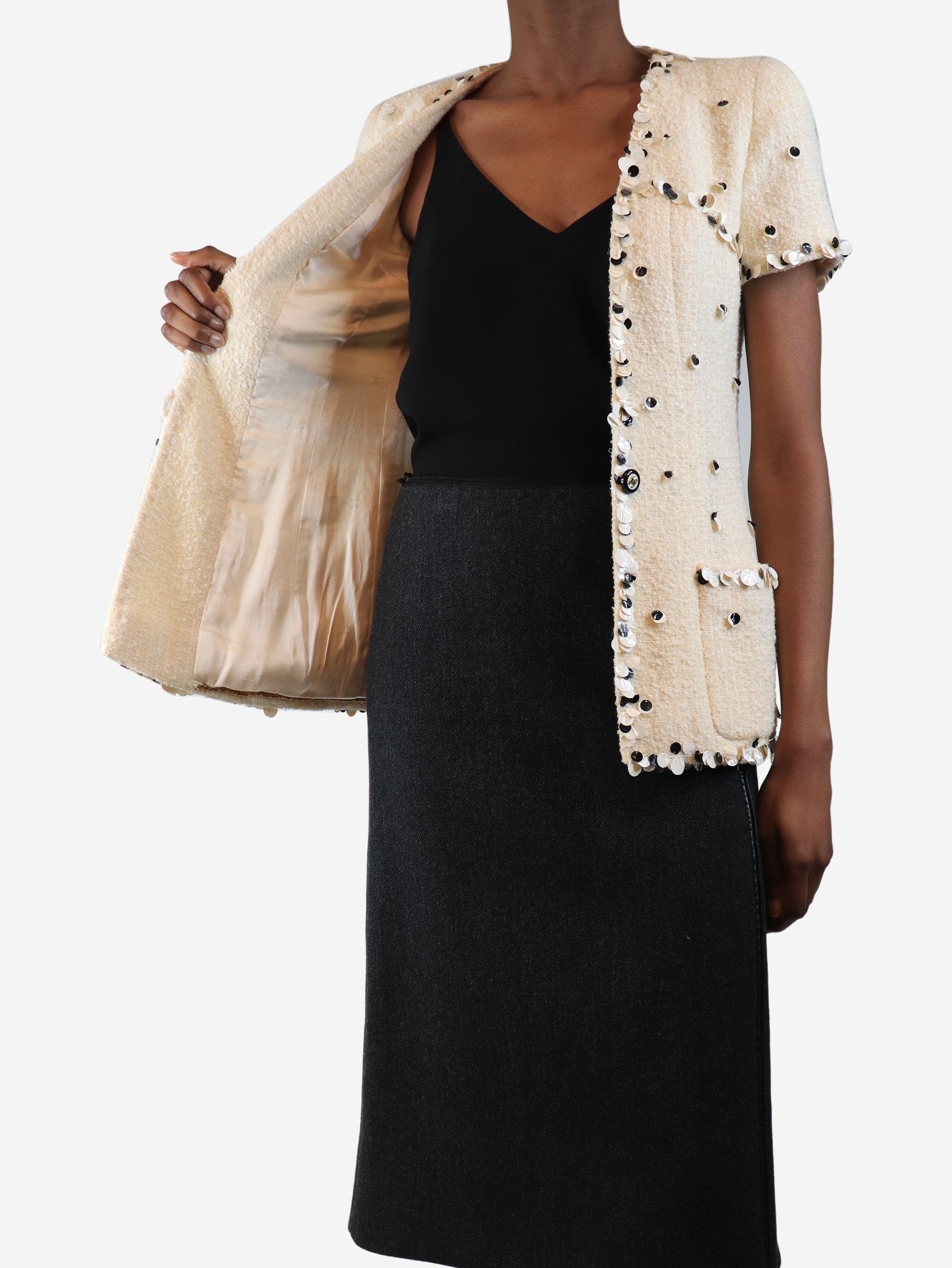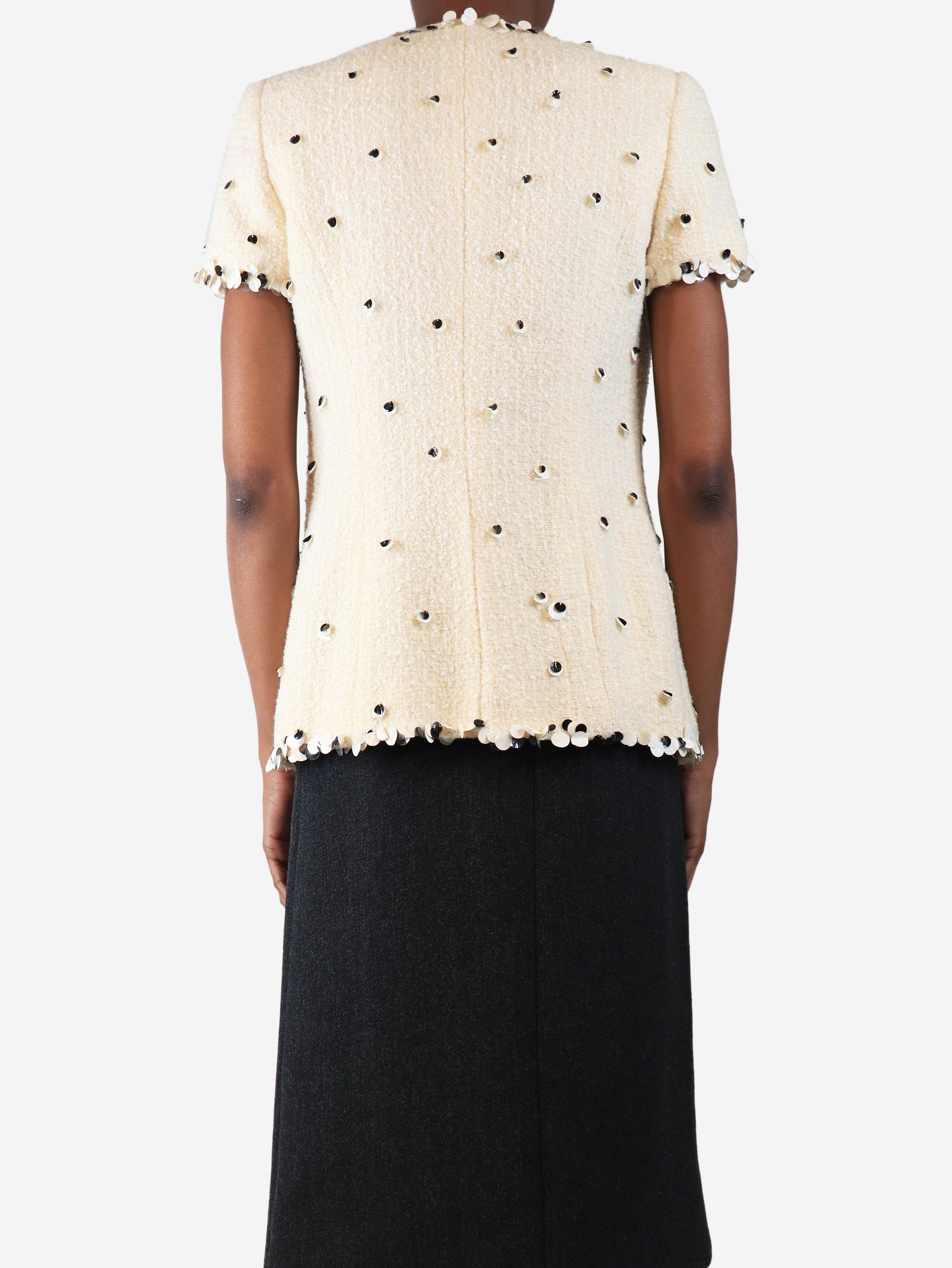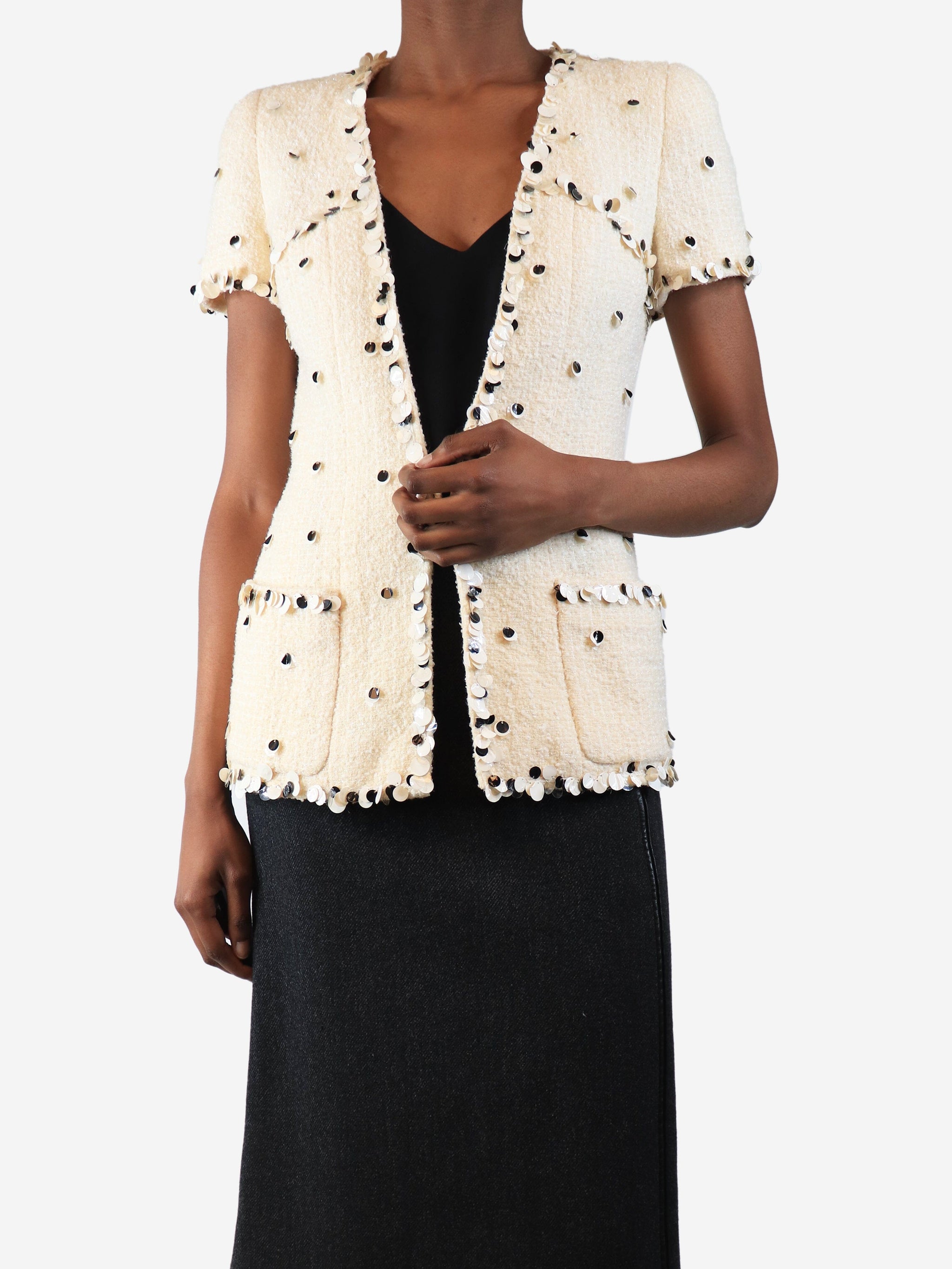 Cream tweed sequin-embellished jacket - size UK 8