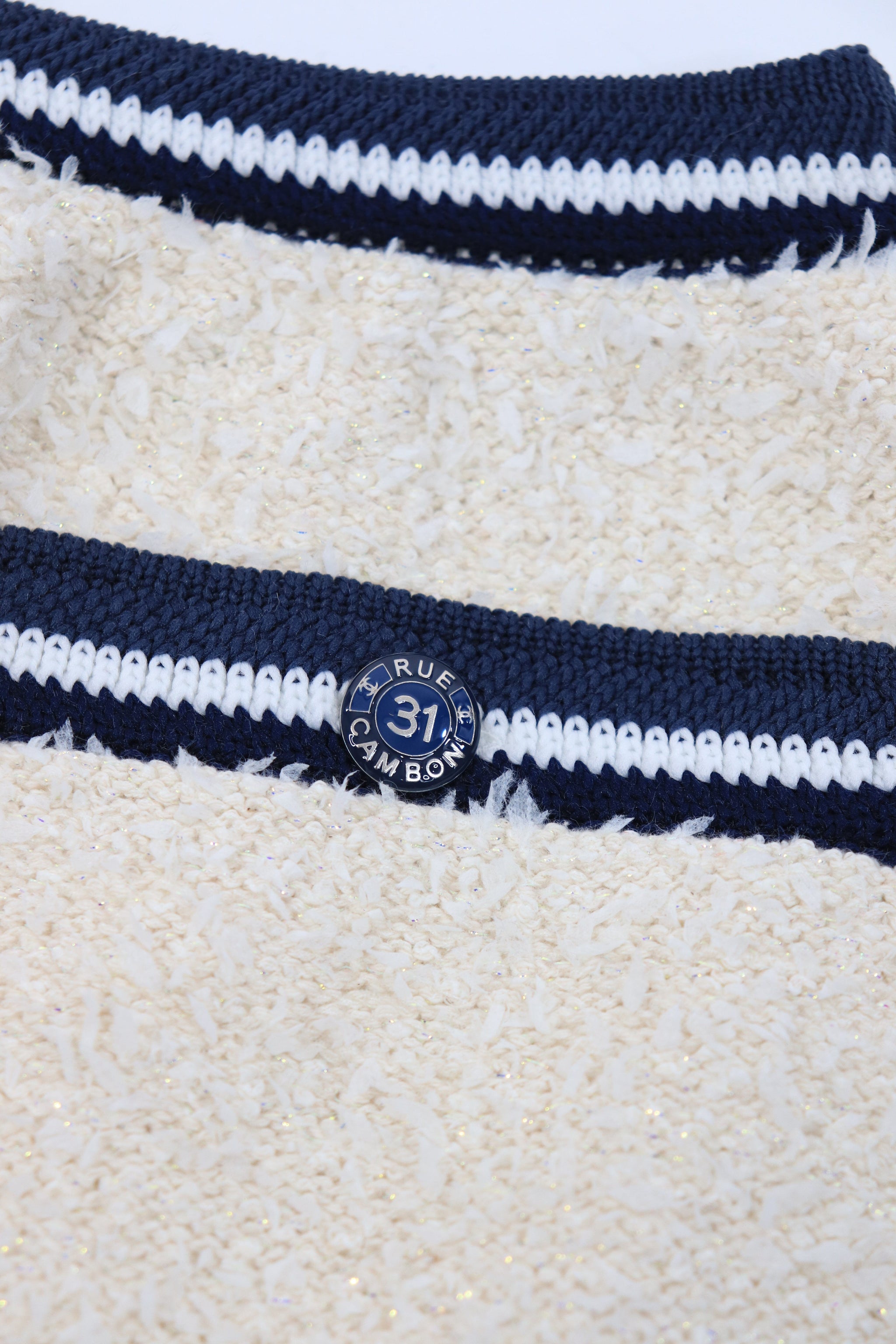Cream and navy tweed mini skirt Cambon 31 - size UK 8